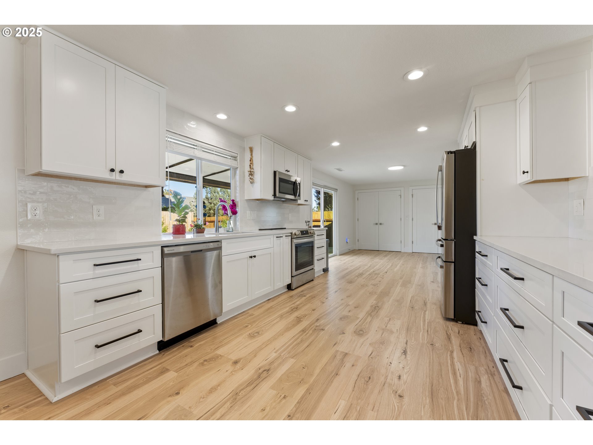 Completely remodeled and ready to roll, this West Hazel Dell home blends smart updates with everyday comfort. Step inside to an open layout with durable LVP flooring throughout, and a kitchen that’s a real highlight. It’s fully loaded with stainless steel appliances, quartz counters, an eating bar, and a step-in pantry that keeps things tidy and practical. The living and dining areas connect naturally, creating an inviting space for everyday living or when friends stop by.The primary suite sits privately at the back of the home with a walk-in shower and plenty of room to unwind. Two additional bedrooms and a fully remodeled hall bath round out the floor plan nicely, offering flexibility for guests, a home office, or hobbies.Outside, you’ll find even more to love. The brand-new roof and heat pump (both 2024) mean peace of mind for years to come, and the expanded RV-ready driveway with hookups makes it easy to take off on your next adventure or host friends who bring theirs. The covered patio, new wood fence, landscaped yard, and greenhouse set the scene for easy outdoor living. The garage adds the finishing touch with its clean epoxy floor that’s tough, functional, and ready for whatever you throw at it.All the big-ticket updates are done, and it shows. Great location close to shops, restaurants, and freeway access in an established, welcoming neighborhood. It’s the kind of home that’s easy to settle into and even easier to love.