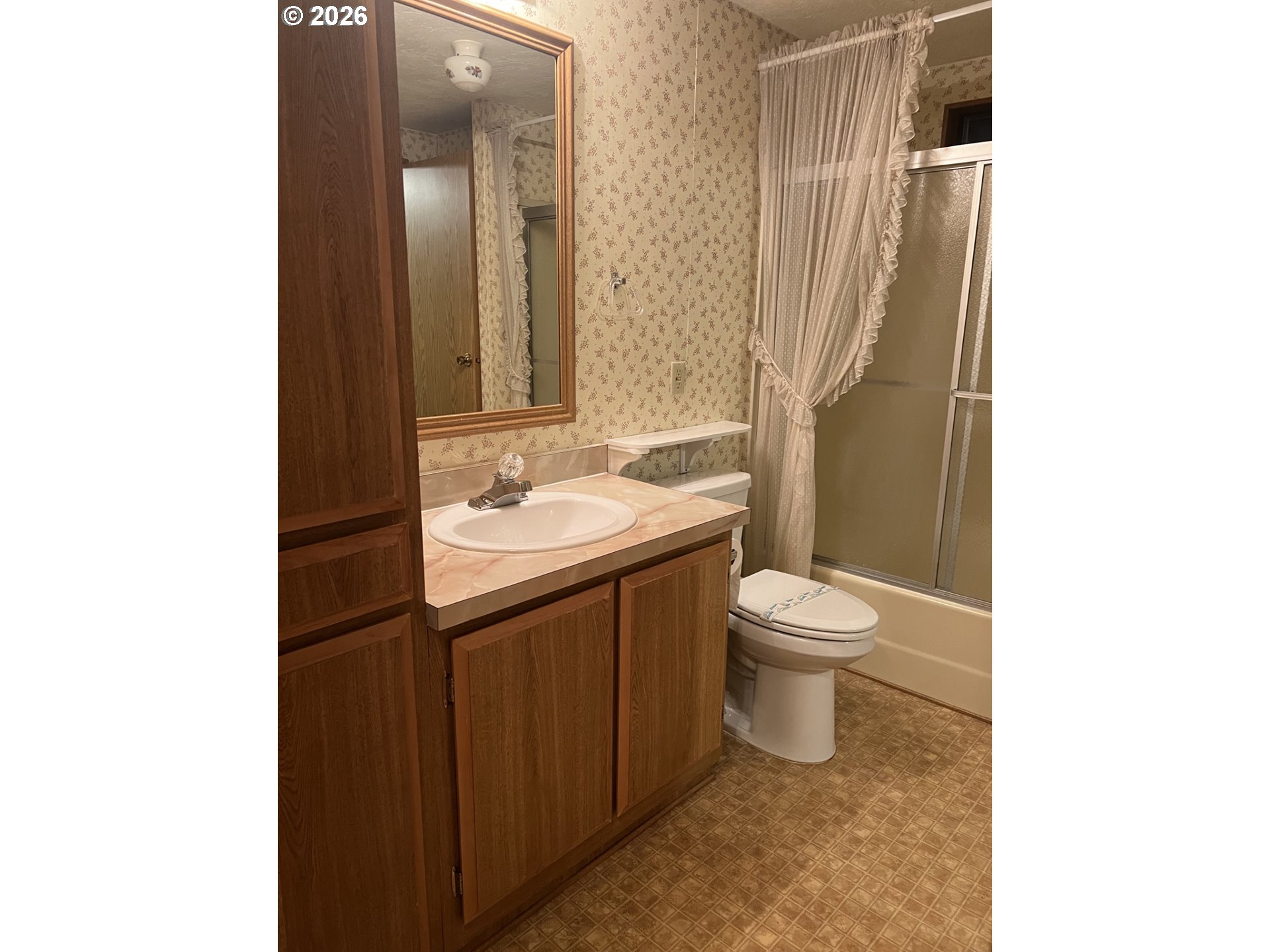 One-Level Living Made Easy! Set within a gated 55+ community, this 1,511 sq ft manufactured home offers an inviting blend of comfort, functionality, and low-maintenance living. The spacious, vaulted dining area flows seamlessly into the kitchen, where generous counter space including an eating bar, ample storage, and an included dishwasher and refrigerator make every day routines effortless. With two bedrooms and two bathrooms, the practical single-level layout is both comfortable and easy to live in. Outdoors, enjoy a large, covered porch and the convenience of an extra-deep carport, plus the well-maintained community features a large park for residents to enjoy. Located near shopping, dining, medical facilities, and with easy freeway access, this home combines comfortable living with everyday convenience in a well-established community. Buyer must be approved by the park.