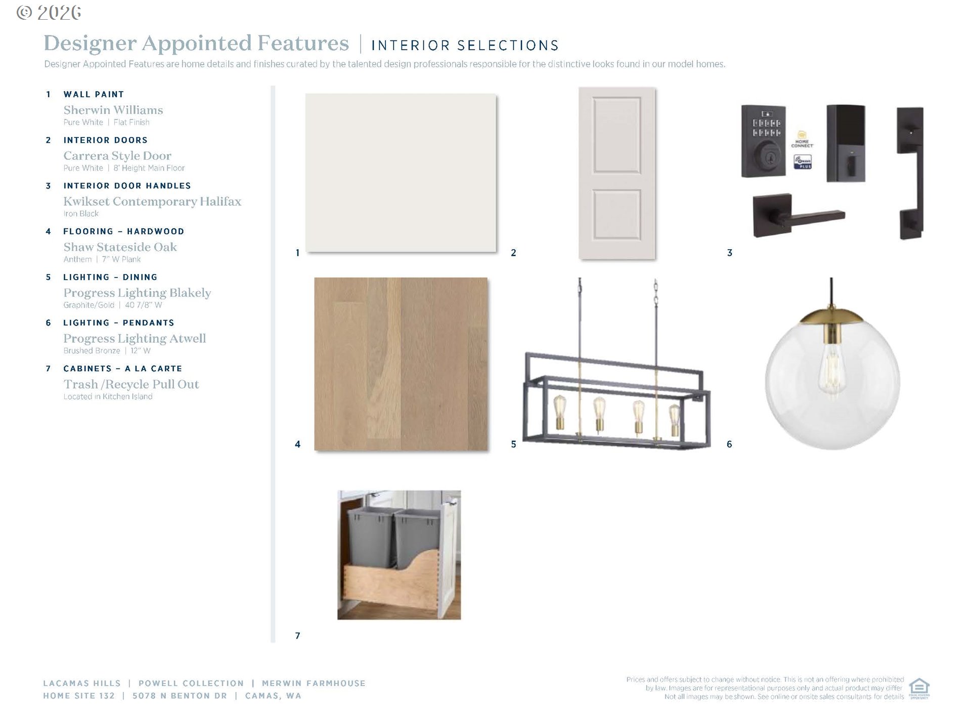 Only 3 remain of the popular and stunning Merwin plan! This small but mighty main floor living with 3 BR/2BA boasts a west-east orientation. This homesite is extra special on a flag lot lending to privacy and lots of usable front yard! An extra large multi-slide door at the great room welcomes you from first step through the front door by really bringing the outside in! The Merwin combines beautiful indoor and outdoor gathering spaces with private retreats. A welcoming foyer that flows into the heart of the home, featuring a spacious great room with a cozy fireplace, a casual dining area with access to a large beautiful covered patio, and a well-appointed kitchen complete with an island and a pantry. The tranquil primary bedroom is enhanced by a walk-in closet and a lovely bath offering a dual-sink vanity, a luxe shower, soaking tub and a private water closet. Two charming secondary bedrooms have access to a full hall bath. Additional highlights include centrally located laundry, and plentiful storage. Camas schools. Close to several parks, outdoor recreational opportunities, and downtown Camas. Photos are of model and not actual home. Exterior image an artist rendering, garage door will vary. Taxes are actual, based on vacant lot. Come see why home buyers are choosing Lacamas Hills before we are sold out!