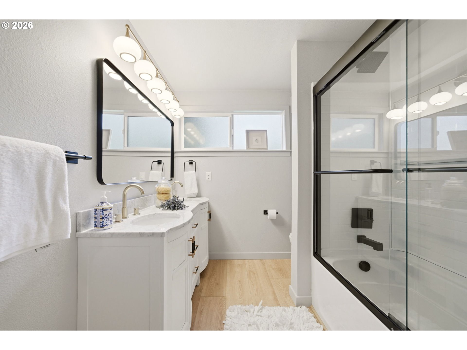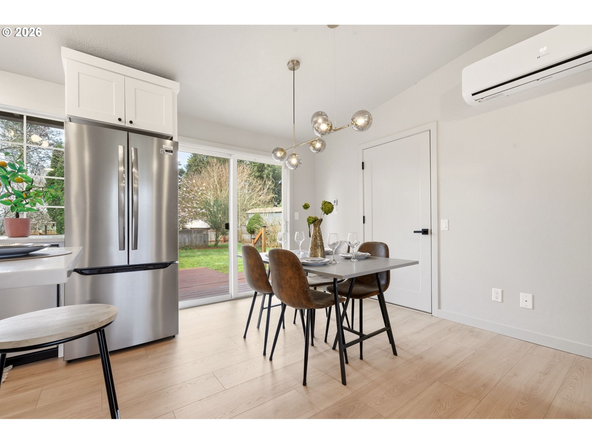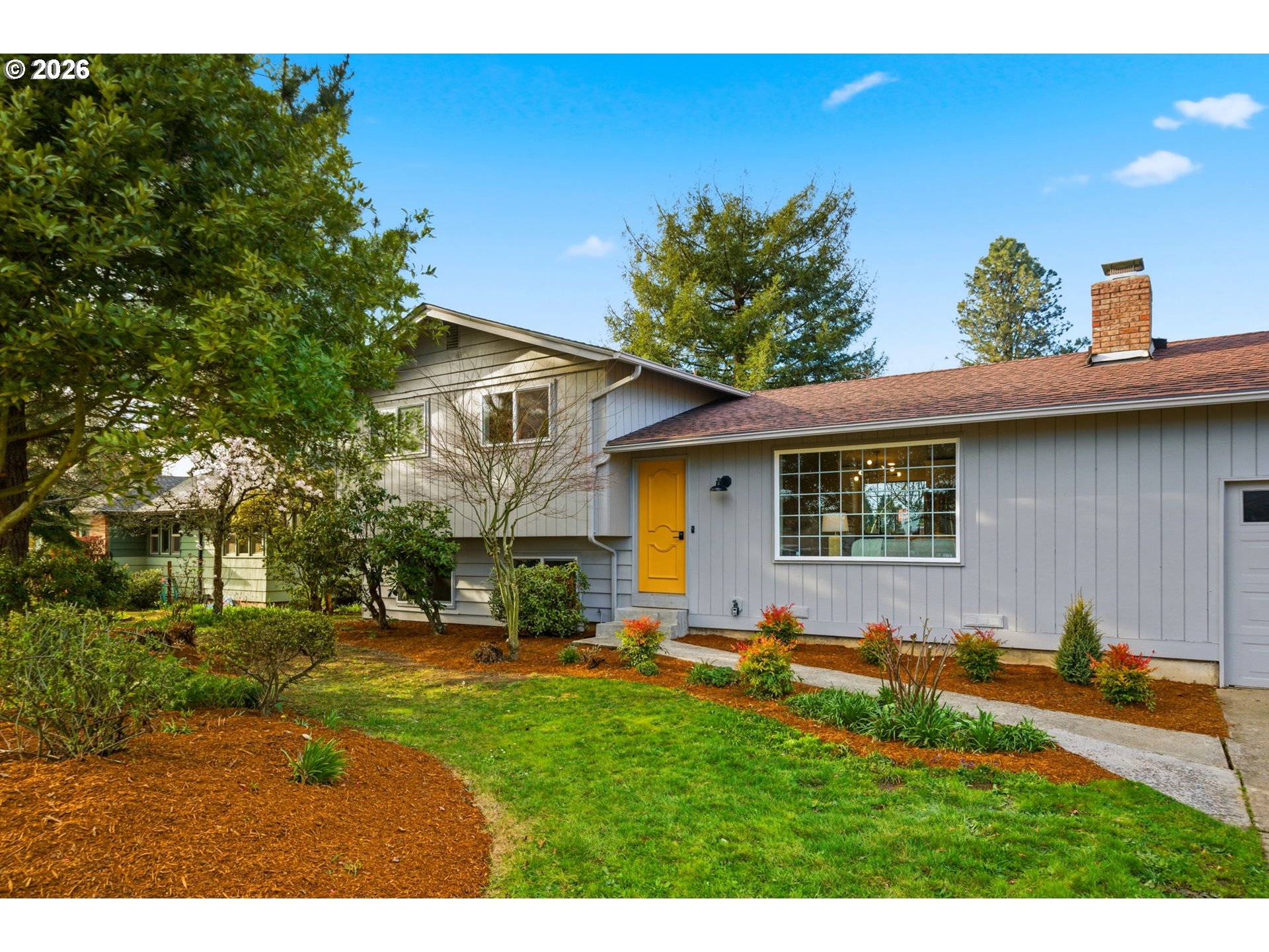 (503) 893-8874Welcome home to this fabulously remodeled and refreshed property, starting from the expansive six vehicle driveway, leading to a deep three-car garage featuring dual roll-up doors that provide rare pass-through access to the backyard and a private rear office. This bright, independent flex space with its own entrance is an ideal sanctuary for a home business, gym, or studio. Inside, the main level is defined by soaring vaulted ceilings and exceptional natural light, anchored by a custom fireplace surround of vertical wood slats and original brick. The open-concept layout flows over new laminate wood flooring into a chef’s kitchen that was fully reconfigured for maximum utility. It features solid wood shaker cabinetry with dovetail, soft-close drawers, quartz countertops, and a stunning full-height designer tile backsplash. The professional-grade Frigidaire Gallery appliance suite includes a range with Air Fry and Steam Bake capabilities, alongside an ultra-quiet sensor-technology dishwasher. This culinary hub connects seamlessly to a modern dining area and a large deck, perfect for effortless indoor-outdoor entertaining. The living quarters offer flexible, multi-generational potential. The upper-level primary suite is a true retreat, featuring a newly added ensuite bathroom with black and brass fixtures, a double vanity, and a private deck. The lower level, just six stairs down, hosts a spacious family room with a pellet stove and a newly created fourth bedroom with its own ensuite bathroom, providing a private wing for guests or long-term family. Comfort is maintained year-round via a newly added ductless HVAC system for A/C, radiant ceiling heat, and new wall heaters. Outside, the grounds are a landscaped oasis featuring a wisteria-draped pergola, raised garden beds, a versatile toolshed, chicken coop, and a flat lawn. Updated vinyl windows, a brand-new hot water tank, and a Blink doorbell camera complete this sophisticated, move-in-ready, remodeled masterpiece.