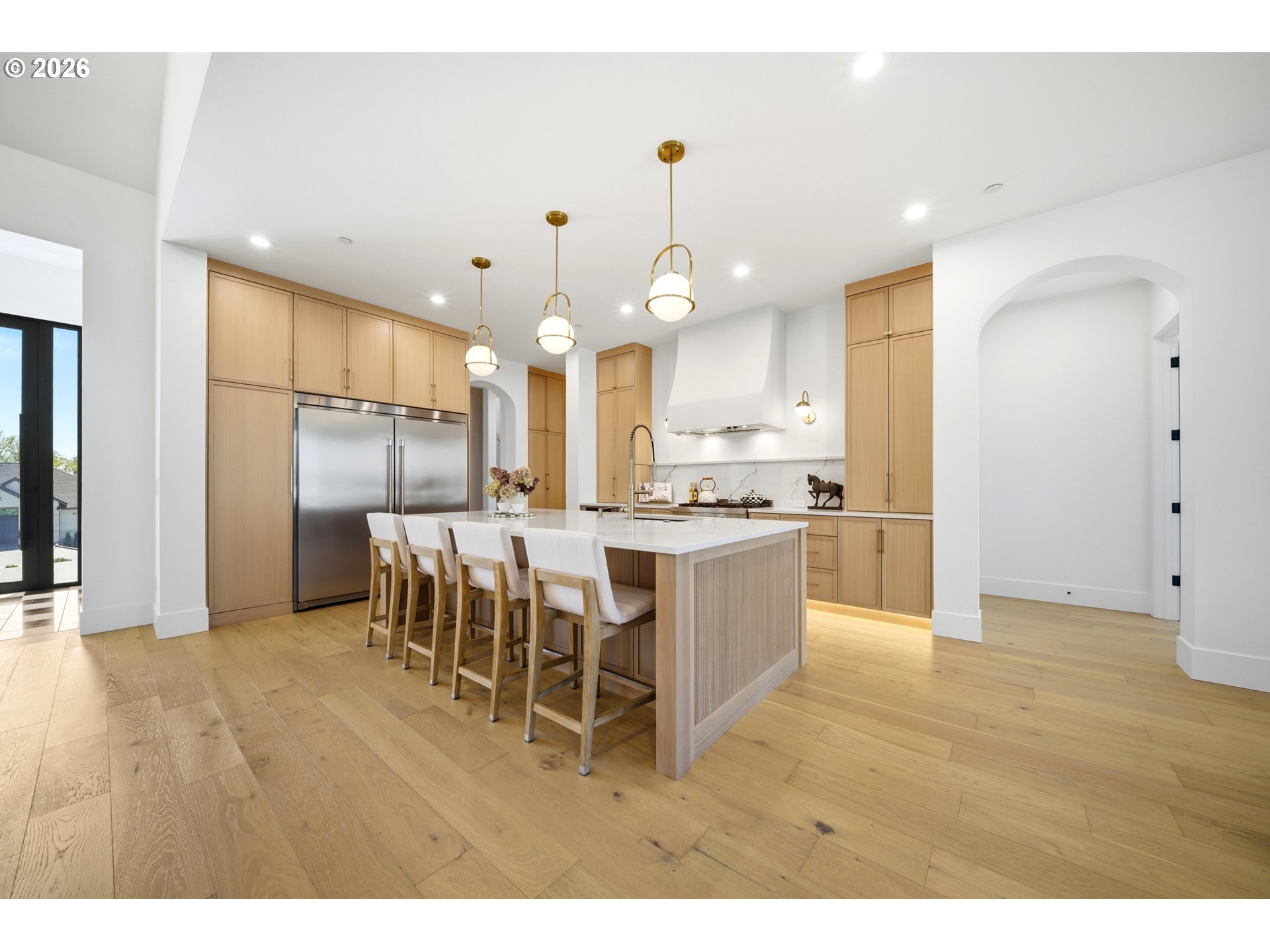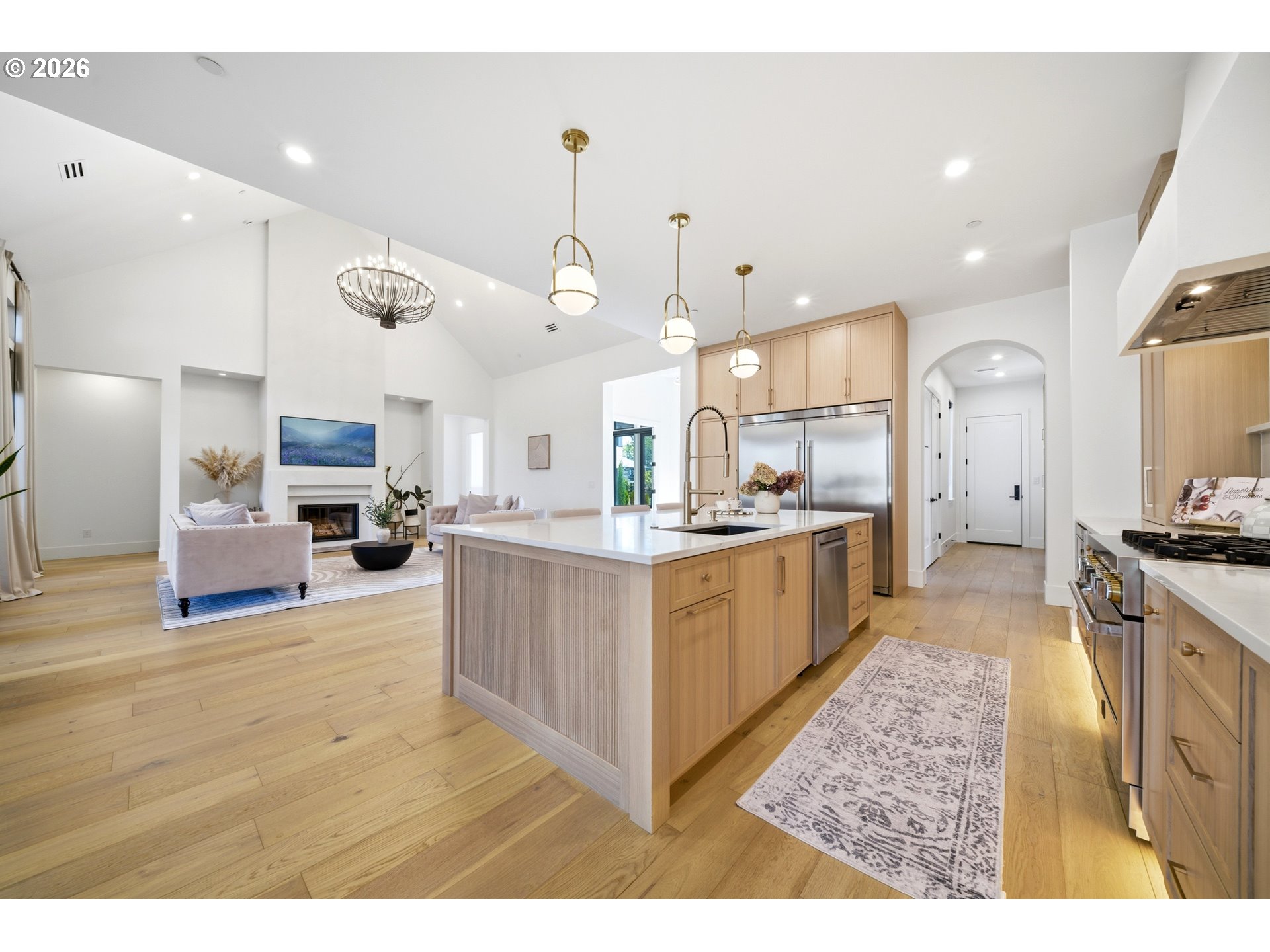 Indulge in the epitome of luxury living in this incredible custom-built home! This exclusive opportunity offers a lifestyle of true opulence and sophistication. The open-concept layout, soaring ceilings, exquisite craftsmanship, and high-end finishes throughout create an ambiance of grandeur. The spacious living room features vaulted ceilings and the charm of a rare wood-burning fireplace. The gourmet kitchen is a culinary dream, showcasing stained white oak cabinetry, a massive island, butler’s pantry, JennAir appliances, and more.The primary suite is a stunning spa-like retreat, complete with a large walk-in shower, soaking tub, and a spacious custom closet. Each additional bedroom offers its own walk-in closet and private en-suite, providing comfort and privacy throughout. Enjoy a main-level office, plus a versatile upstairs bonus room or fourth bedroom with a full bath and partial river views. A striking 10-foot entry door, expansive European triple-pane windows, premium engineered hardwood flooring, and heated tile floors elevate the home’s design. Step outside to a covered concrete patio with a built-in kitchen and heaters—perfect for year-round entertaining. Ideally located just minutes from Orchard Hills Golf & Country Club, with easy access to HWY-14 and less than 20 miles to PDX Airport