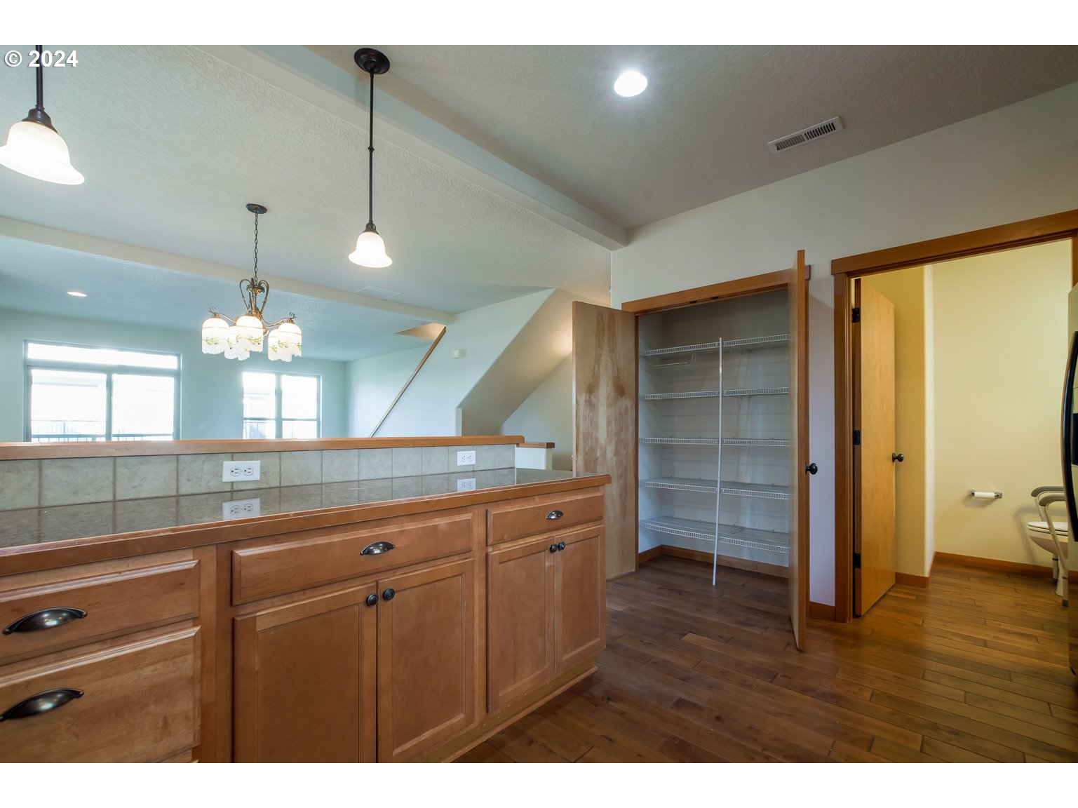 Beautiful End unit with extra windows and light. This stunning townhouse is located in a convenient location with 3 bedrooms & 3 1/2 bathrooms. One bedroom on the ground floor with its own bathroom and separate outside access. Two other bedrooms are upstairs with vaulted ceilings spacious closets and their own bathrooms. One upstairs primary has a gas fireplace, double vanity, and jetted tub. Gas furnace & AC. Open concept floor plan with high ceilings & gas fireplace with a reading or office nook. The kitchen has granite counters & hardwood floors. Best of all? This home has a central vacuum and an elevator!! Easy access for everyone in your family. The condo complex recently redid siding and decks.