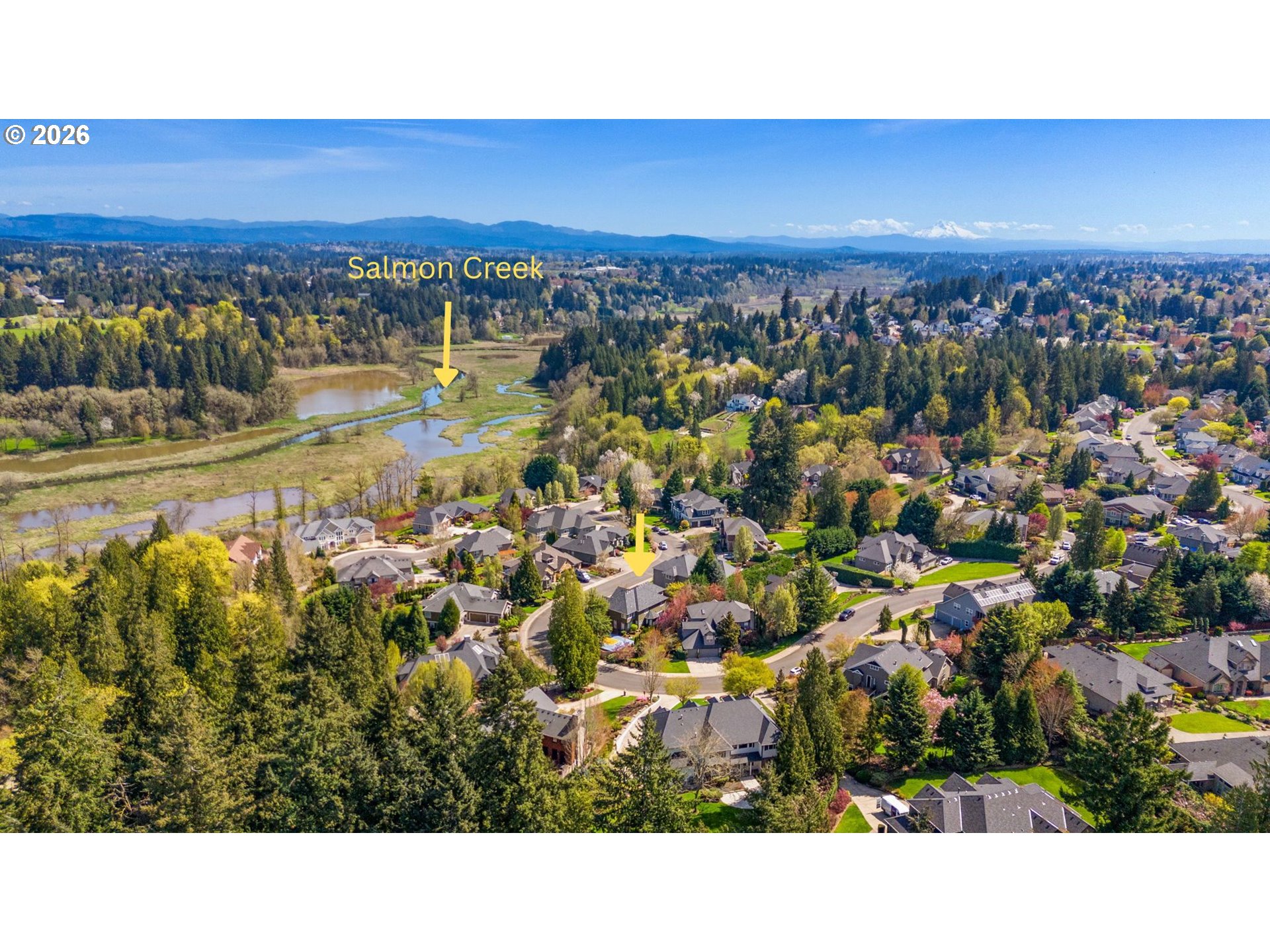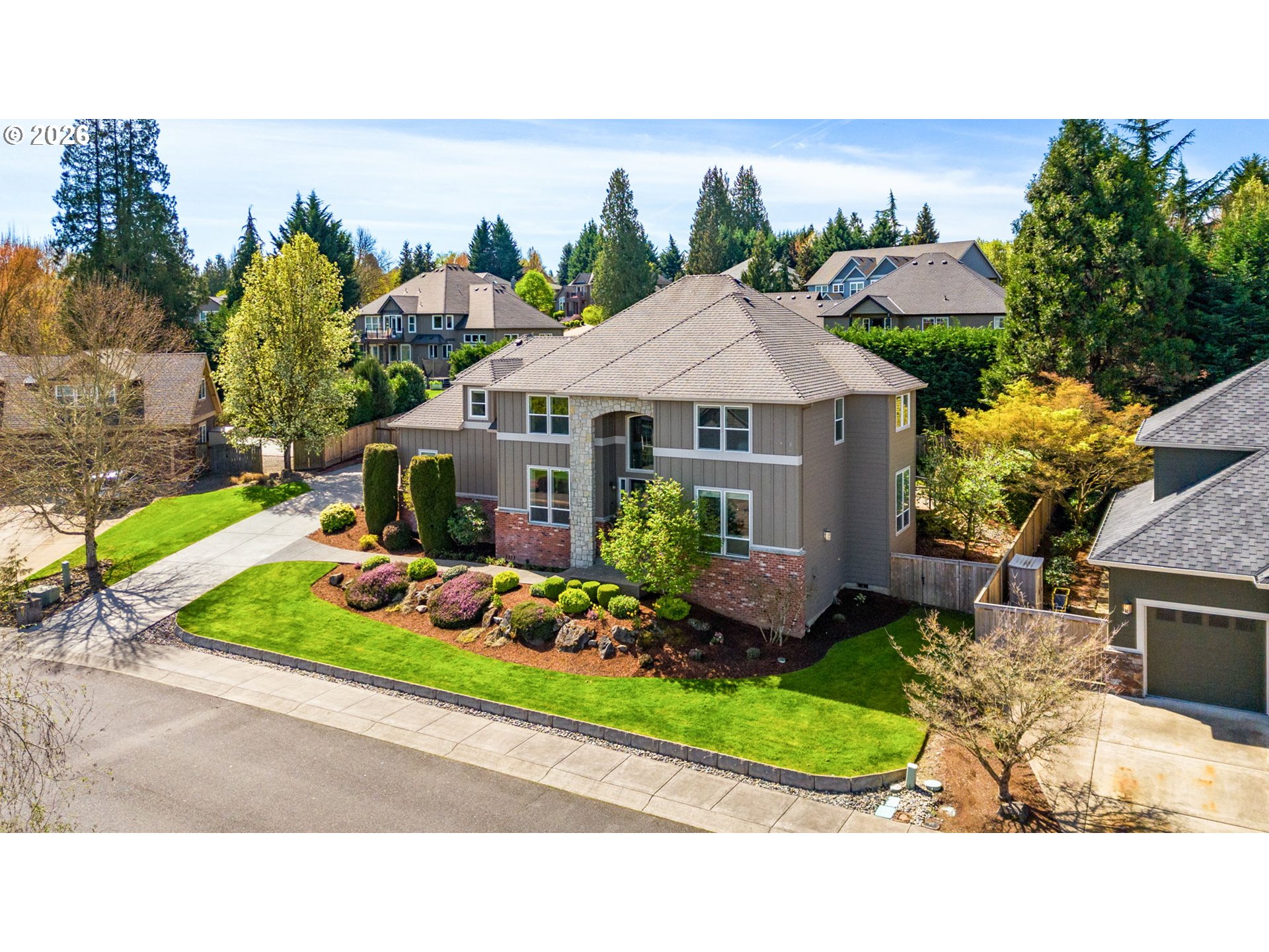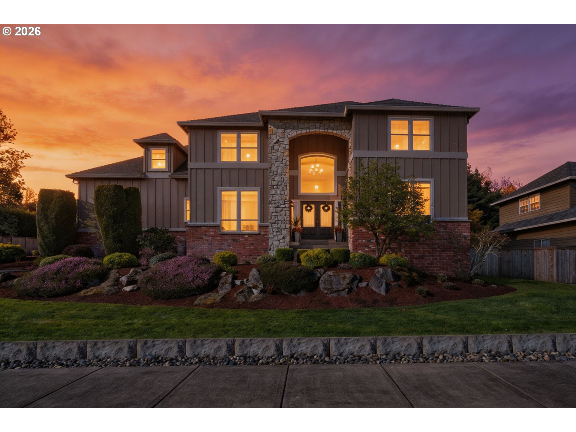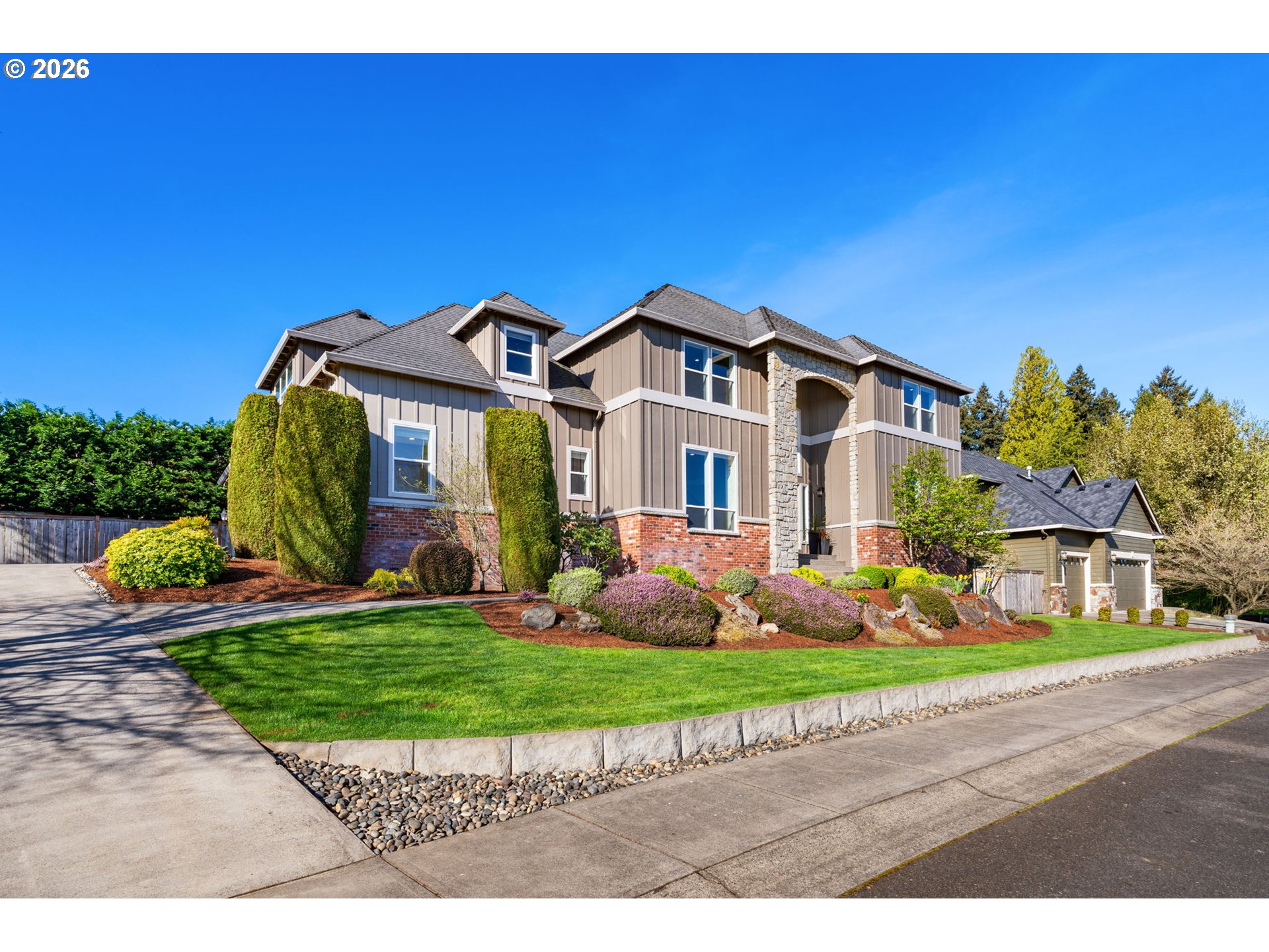 Experience the height of luxury with a rare opportunity to join Felida's prestigious Reserve section of Ashley Heights. This stunning 4,004-square-foot estate blends timeless elegance with modern, high-end finishes. At the heart of the home, a gourmet chef's kitchen awaits, featuring a professional-grade Wolf range, Sub-Zero refrigerator, beautiful tile backsplashes throughout, sleek quartz countertops, and a massive entertaining island. The versatile floor plan boasts a main-level office and a grand entryway with gleaming hardwood floors. Upstairs, discover four spacious bedrooms including the primary suite as well as a sprawling bonus suite complete with a kitchenette and full bath—ideal for a private guest wing, multi-generational living, or a premier media room. Step outside to a private backyard oasis, where you will find a magnificent waterfall cascading into a tranquil pond. This striking water feature creates a soothing, melodic ambiance that fills the outdoor living space with a sense of peace and serenity. Surrounded by multiple patios and a lush lawn area, it is the ultimate setting for seamless indoor-outdoor living. Valuable extras include an oversized three-car garage which opens to a versatile laundry-mudroom and a full bath—perfect for active lifestyles—while a Generac whole-home generator ensures year-round peace of mind. Luxury meets location. Ideally situated near Salmon Creek Regional Park and top-tier schools, this home defines elevated Pacific Northwest living.