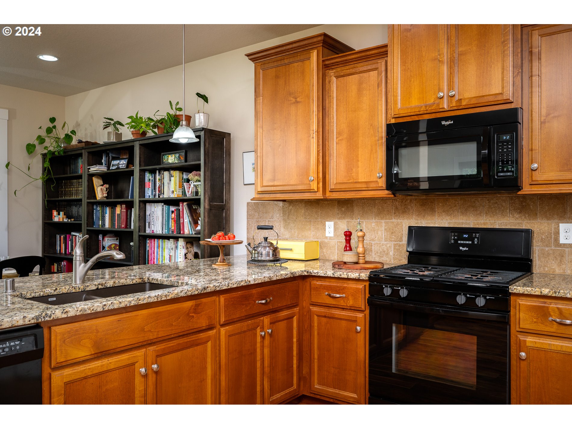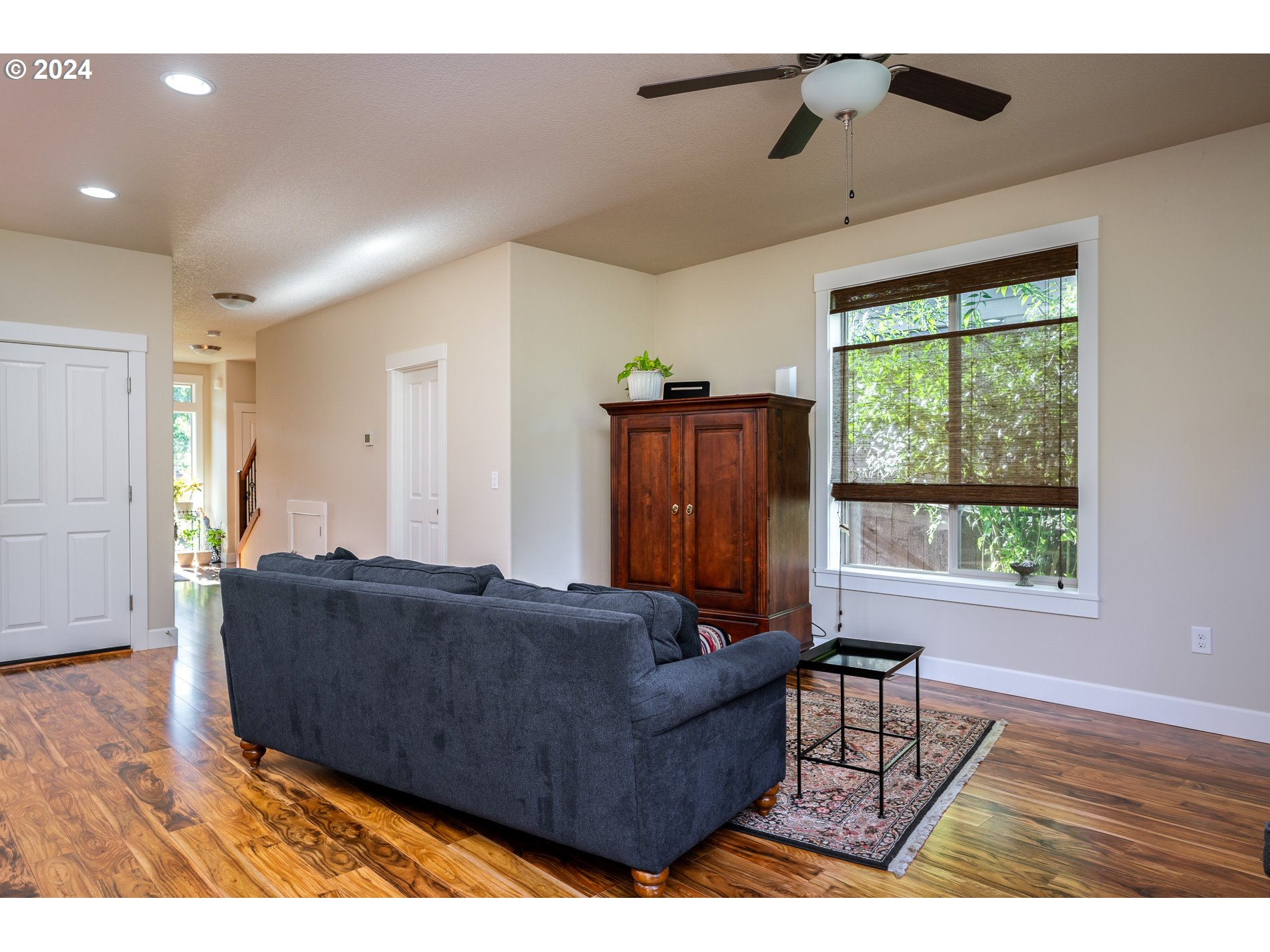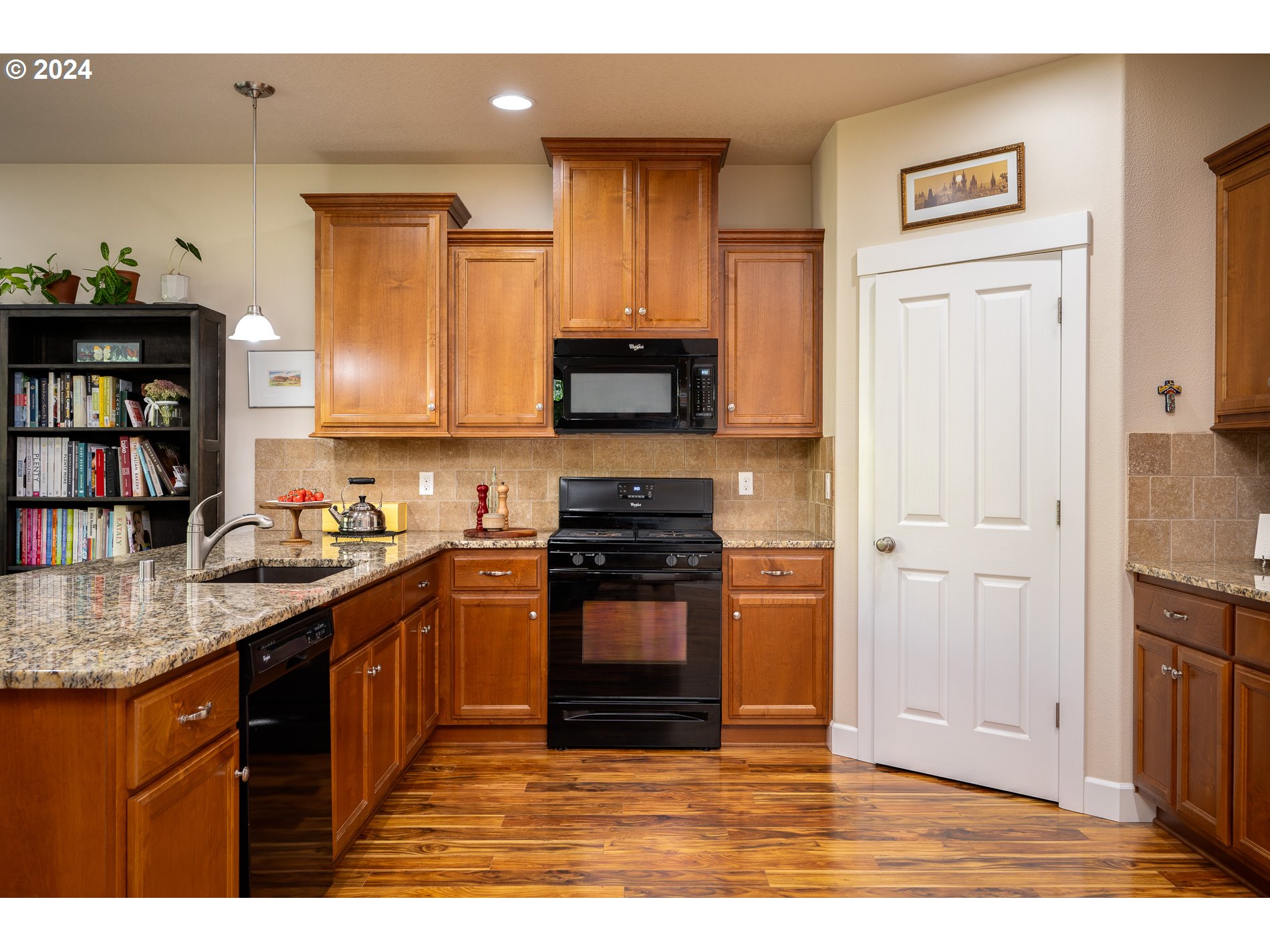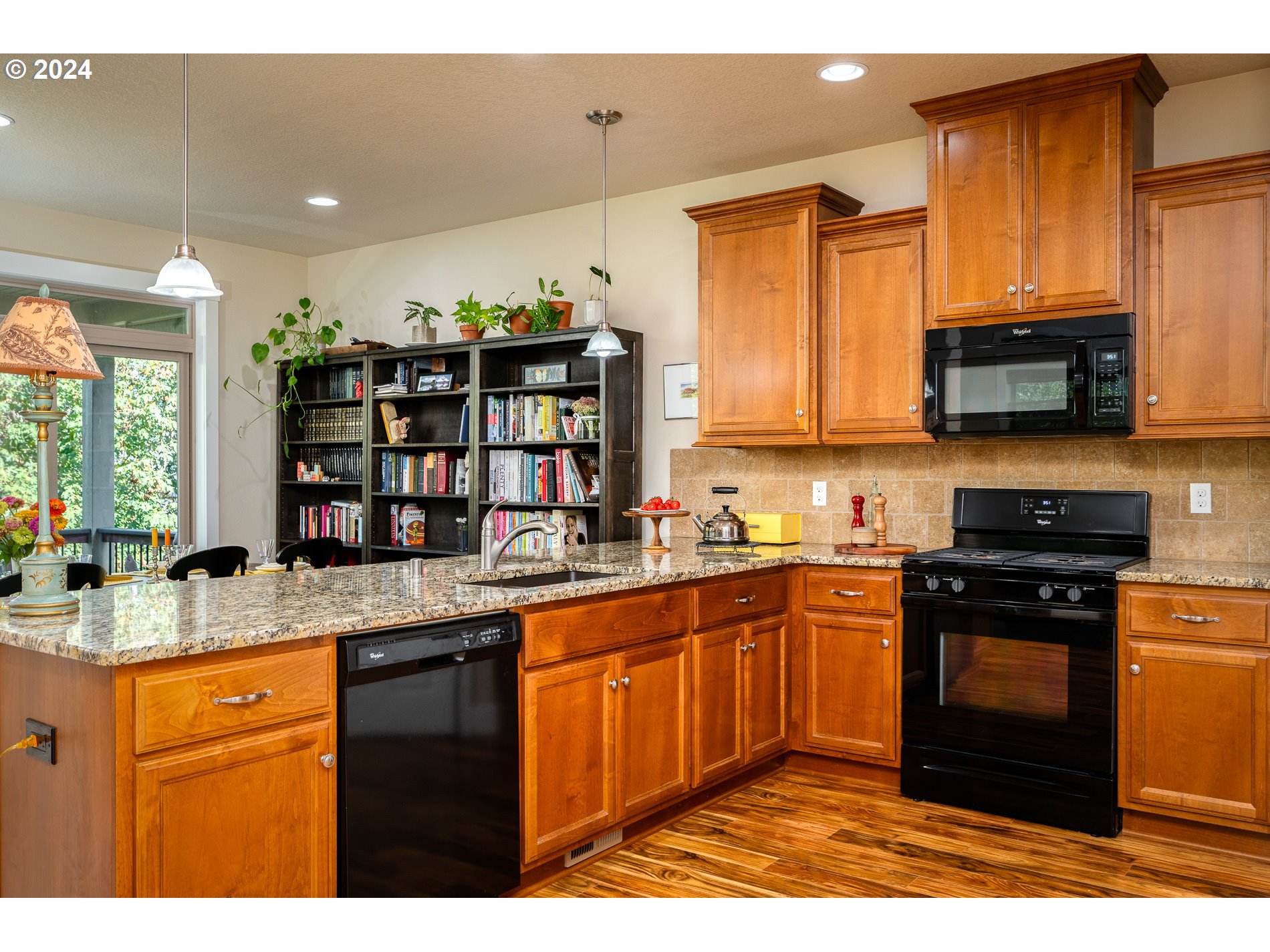 Welcome to this beautifully maintained 2,131 sq ft home, built in 2015 by Karlsen Homes and offering the perfect balance of modern comfort and privacy. Why wait or pay more for new construction when you can have this move-in-ready gem that backs up to a serene, private greenbelt with no rear neighbors? Nestled in a sought-after Ridgefield community, this home has everything you’ve been looking for.The main level is designed for both style and function, featuring rich engineered hardwood floors and an open-concept kitchen with granite countertops, stainless steel appliances, and a large island that seamlessly flows into the great room. Whether you’re hosting gatherings or enjoying a quiet evening by the cozy gas fireplace, the space is versatile and inviting. The adjacent dining area is drenched in natural light and opens to a covered ceda