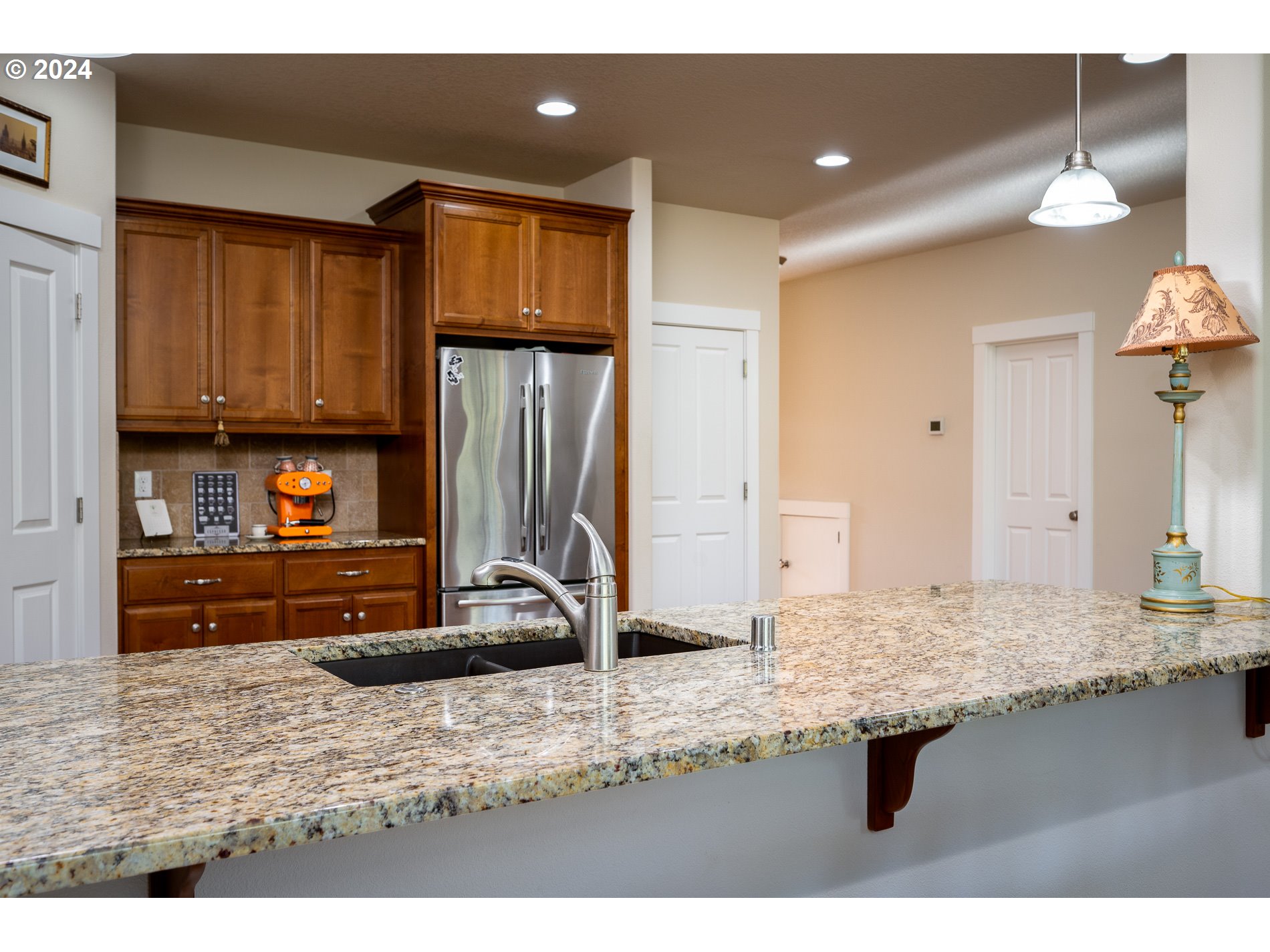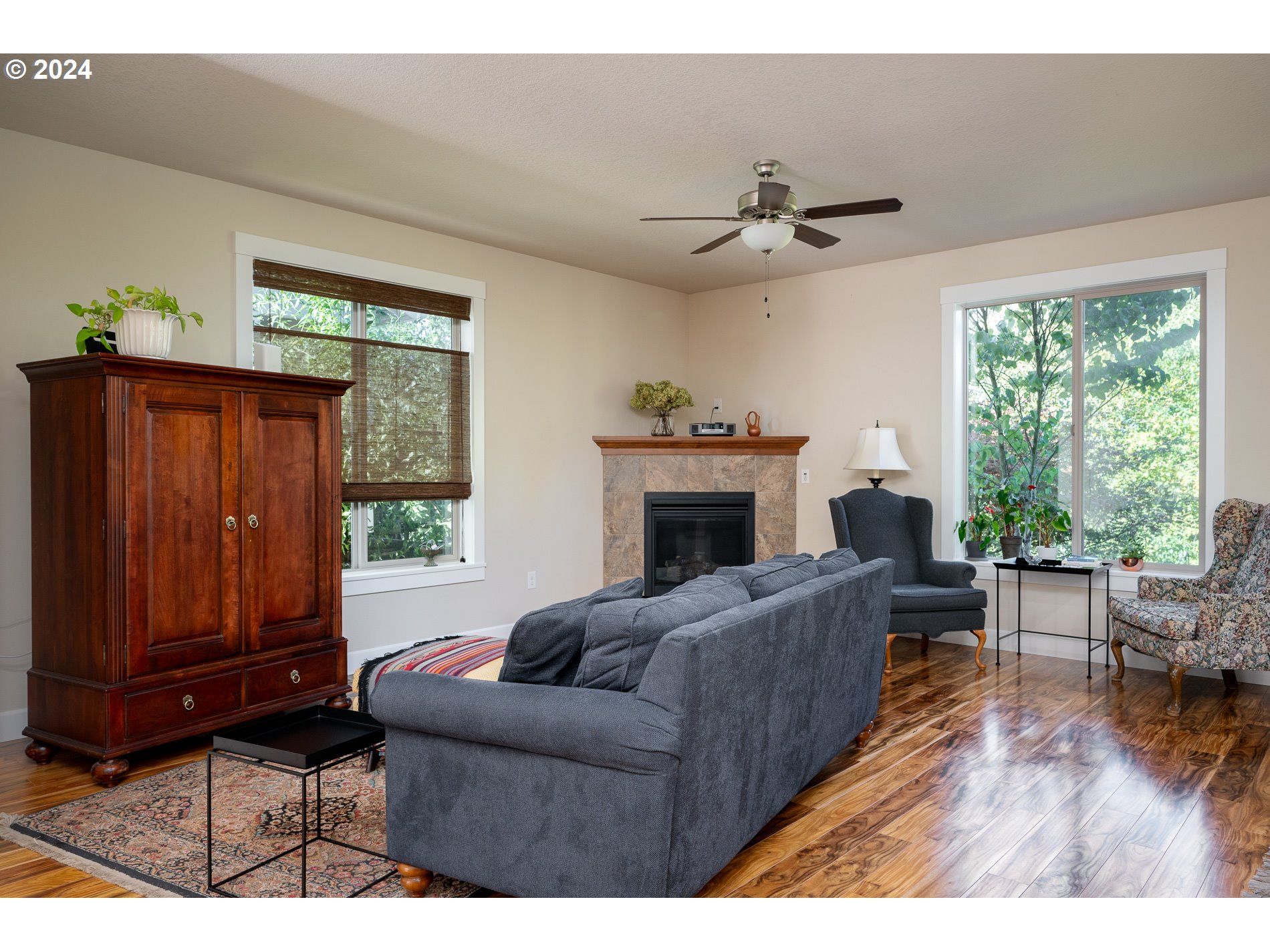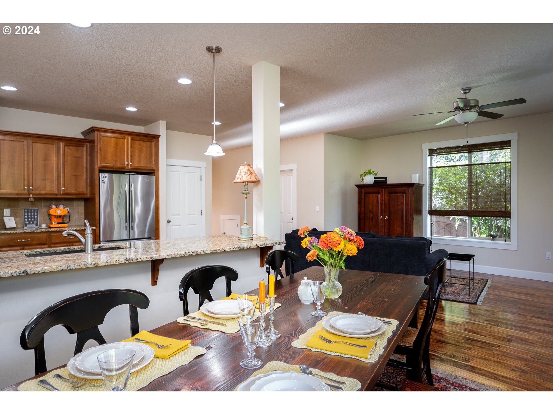 Welcome to this beautifully maintained 2,131 sq ft home, built in 2015 by Karlsen Homes and offering the perfect balance of modern comfort and privacy. Why wait or pay more for new construction when you can have this move-in-ready gem that backs up to a serene, private greenbelt with no rear neighbors? Nestled in a sought-after Ridgefield community, this home has everything you’ve been looking for.The main level is designed for both style and function, featuring rich engineered hardwood floors and an open-concept kitchen with granite countertops, stainless steel appliances, and a large island that seamlessly flows into the great room. Whether you’re hosting gatherings or enjoying a quiet evening by the cozy gas fireplace, the space is versatile and inviting. The adjacent dining area is drenched in natural light and opens to a covered ceda