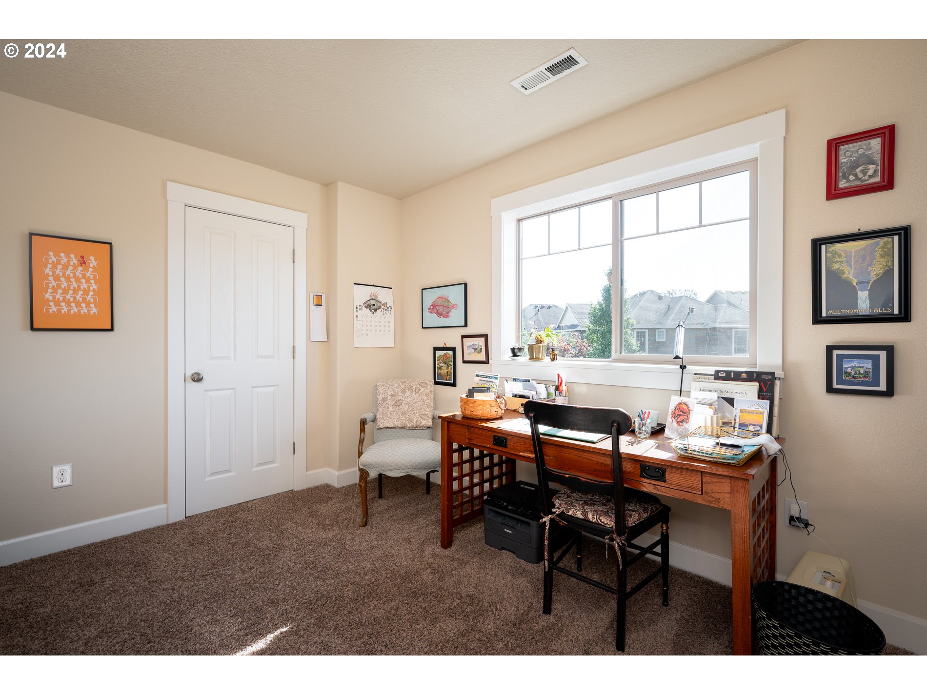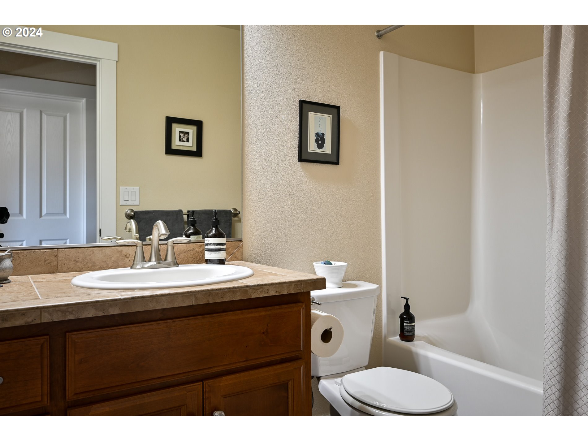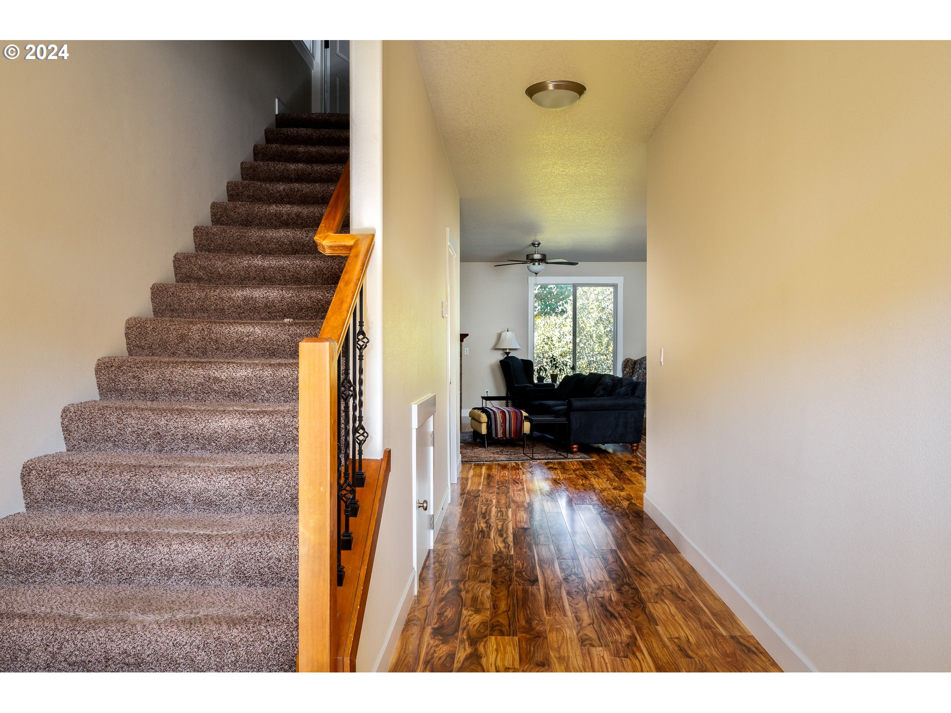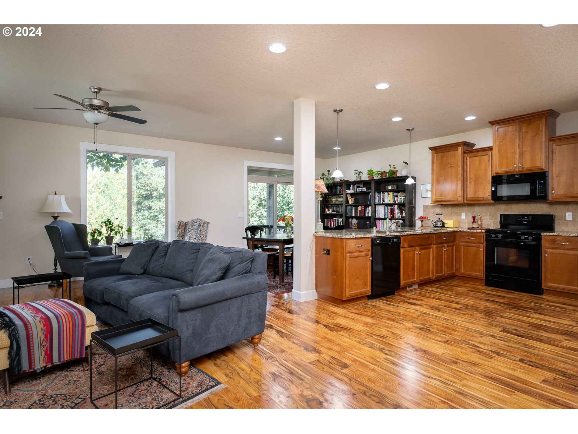 Welcome to this beautifully maintained 2,131 sq ft home, built in 2015 by Karlsen Homes and offering the perfect balance of modern comfort and privacy. Why wait or pay more for new construction when you can have this move-in-ready gem that backs up to a serene, private greenbelt with no rear neighbors? Nestled in a sought-after Ridgefield community, this home has everything you’ve been looking for.The main level is designed for both style and function, featuring rich engineered hardwood floors and an open-concept kitchen with granite countertops, stainless steel appliances, and a large island that seamlessly flows into the great room. Whether you’re hosting gatherings or enjoying a quiet evening by the cozy gas fireplace, the space is versatile and inviting. The adjacent dining area is drenched in natural light and opens to a covered ceda