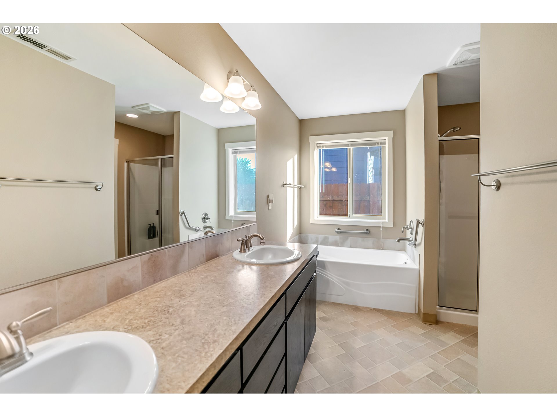Wonderful single-level home built in 2012. X-large living/dining area with double closet wall & engineered hardwood floors. Large primary bedroom with Luxury Vinyl Tile & ensuite with double sink, soaking tub & separate shower. Kitchen features granite counters, large island, gas stove, included refrigerator and double pantry closet wall. Tankless gas hot water heater, 95% efficiency gas furnace and central AC. Fenced backyard with 13x10 covered patio with gas hookup for grill. Included washer/dryer and convenient central vacuum system with x-long hose.