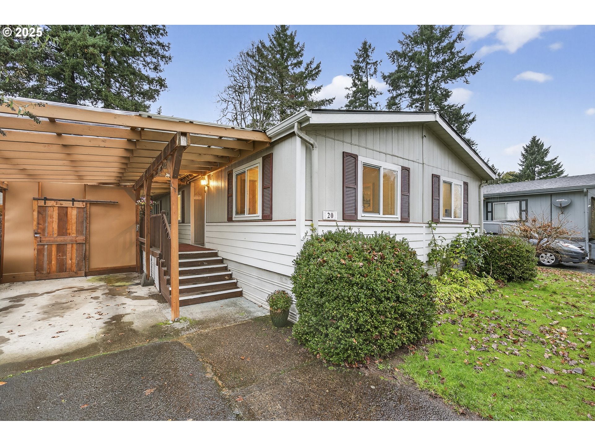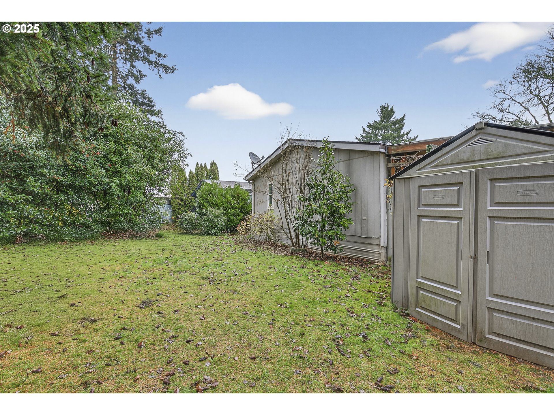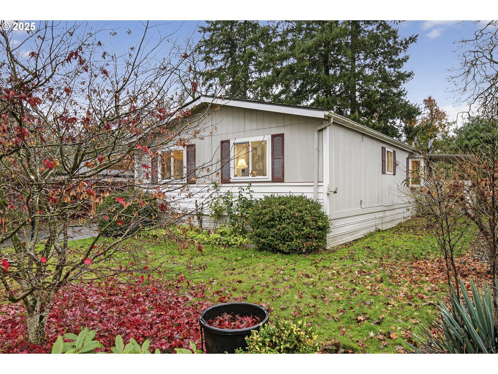 Discover comfortable living in this 1,147 sq ft double-wide manufactured home, built in 1982. The bright, functional floor plan offers 3 bedrooms and 2 full bathrooms, including a primary bedroom with an in-suite bath. The interior features a spacious living area with vaulted ceilings and a defined, bright dining area complete with a lovely bay window. The kitchen is easily accessible and ready for your personal touch. Exterior features are a major highlight: the home sits on a corner lot and boasts an expansive, fully covered porch perfect for outside relaxation. Storage is plentiful with both outside tool storage and an additional storage shed in the backyard. This home is ideally situated right next to the community clubhouse, providing easy access to all park amenities.