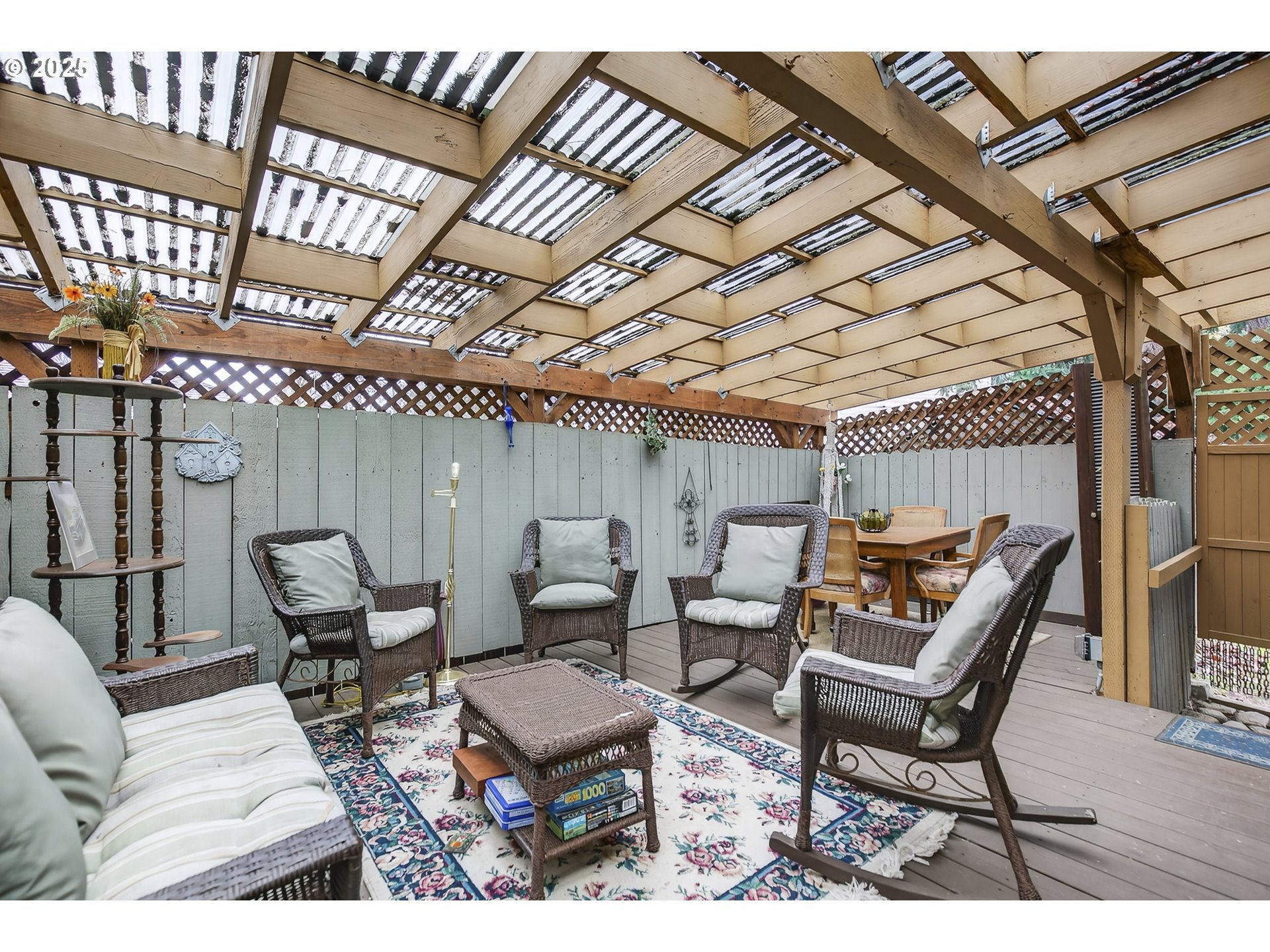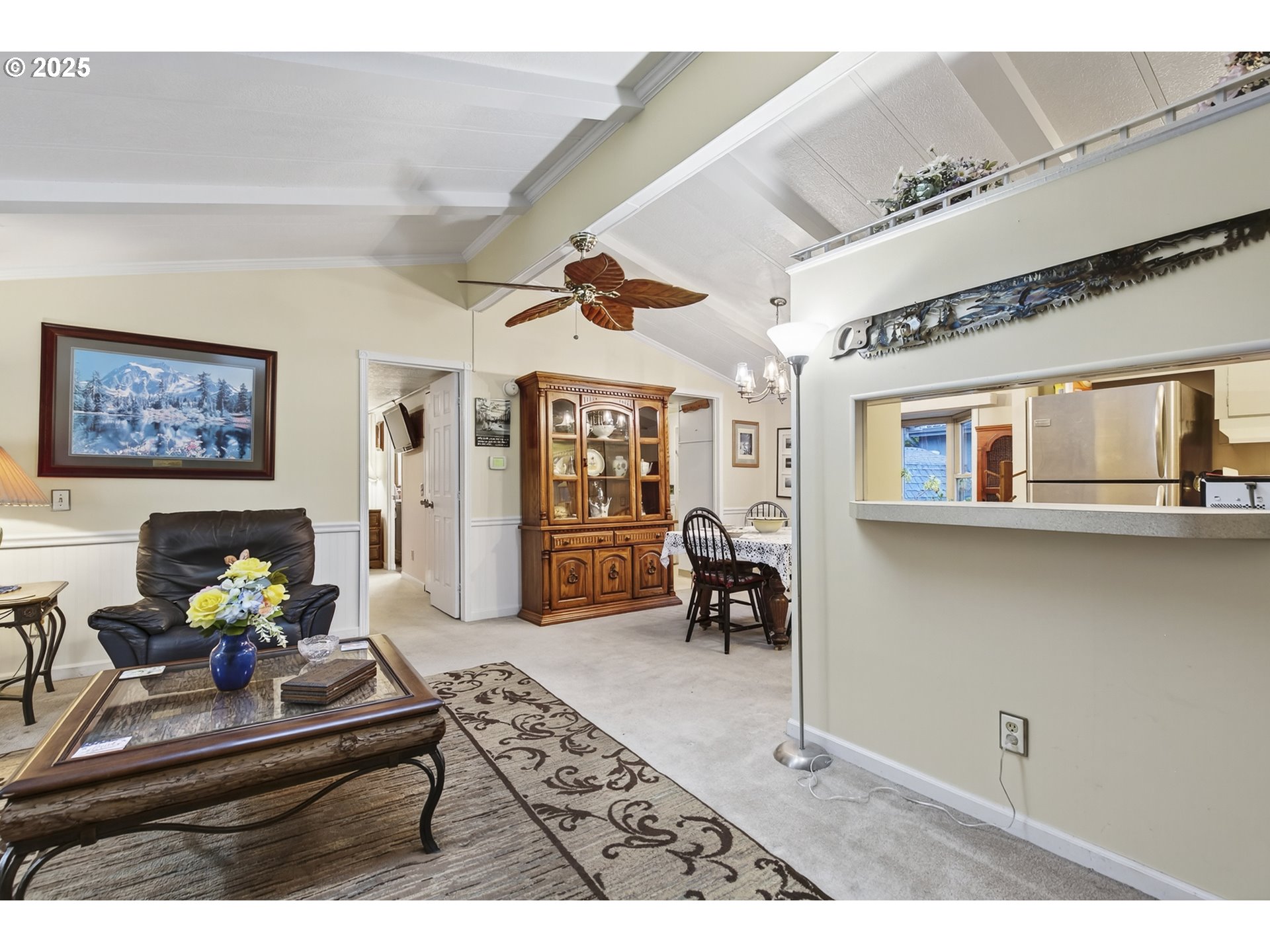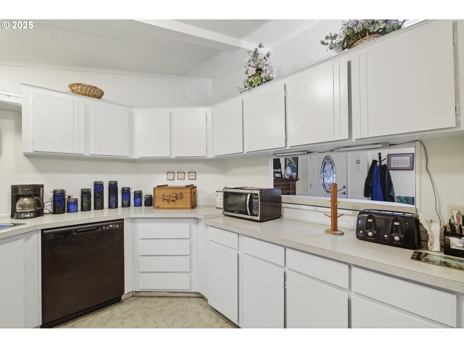 Discover comfortable living in this 1,147 sq ft double-wide manufactured home, built in 1982. The bright, functional floor plan offers 3 bedrooms and 2 full bathrooms, including a primary bedroom with an in-suite bath. The interior features a spacious living area with vaulted ceilings and a defined, bright dining area complete with a lovely bay window. The kitchen is easily accessible and ready for your personal touch. Exterior features are a major highlight: the home sits on a corner lot and boasts an expansive, fully covered porch perfect for outside relaxation. Storage is plentiful with both outside tool storage and an additional storage shed in the backyard. This home is ideally situated right next to the community clubhouse, providing easy access to all park amenities.