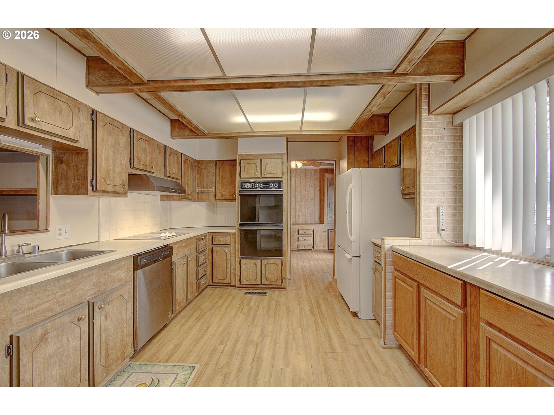 Spacious 3-bedroom, 2-bath manufactured home in Fair Oaks Estates, a 55+ community in Vancouver. Offering 1,436 square feet of living space plus a large enclosed patio. Features include laminate flooring, accessible ramp, and a roll-in shower in the primary bathroom. The living room includes a cozy gas portable stove. Community amenities include a clubhouse with recreational and gathering space. Lot rent is $970/month, with park-approval. Move-in ready and available now.