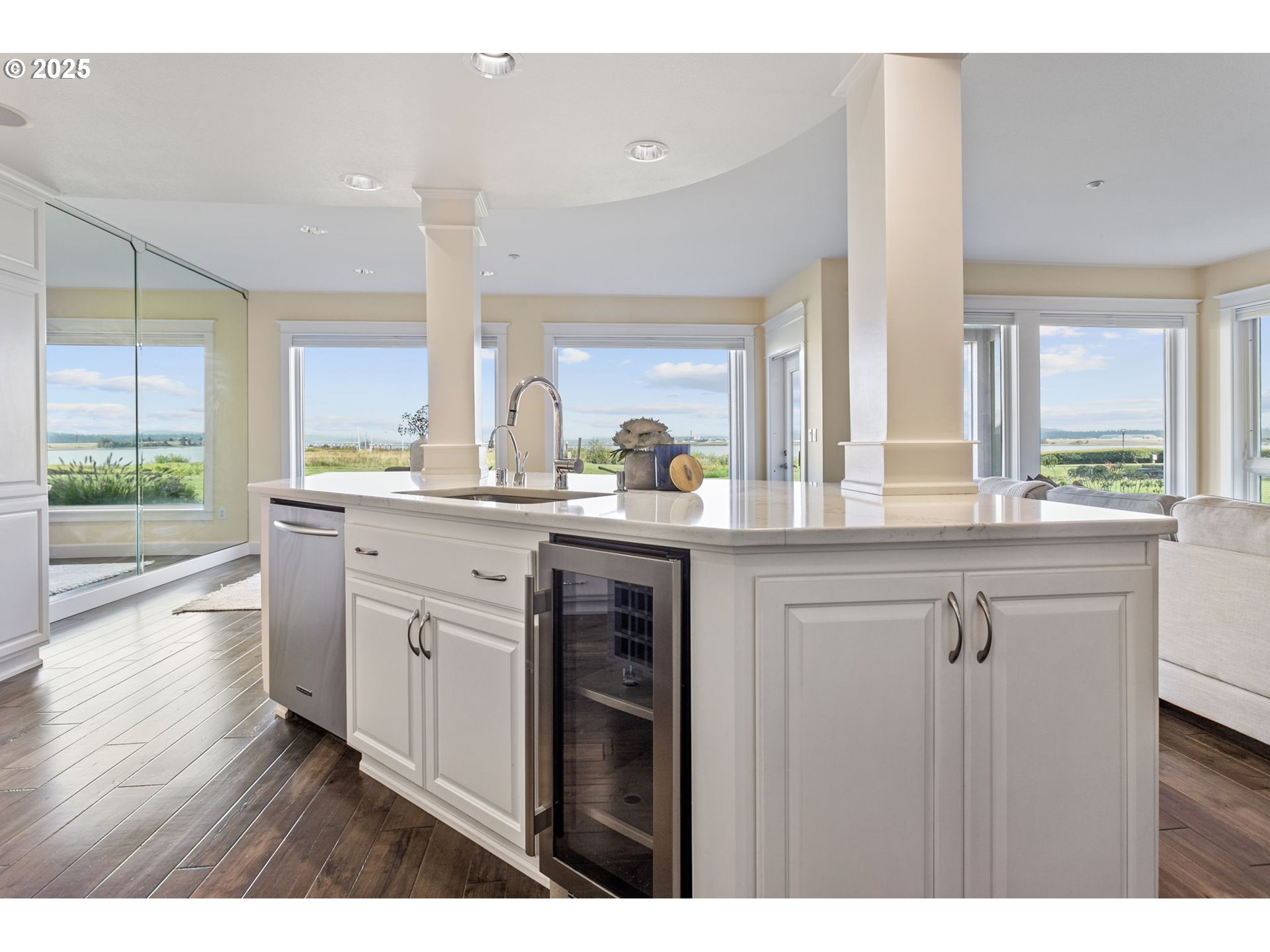 (503) 893-8874OPEN HOUSE SUNDAY 11/2 at 2-4pm: (she will meet you at gate). Experience premier riverfront living in this freshly updated 2,086 sq ft condo in the gated Tidewater Cove community. Enjoy breathtaking views of Mt. Hood, the Columbia River, city lights, and PDX—all from your own home.The interior has been completely repainted in Sherwin Williams “Alabaster”, creating a bright, modern, and timeless feel throughout. The open-concept layout features a gourmet kitchen with quartz countertops, stainless steel appliances, wine cooler, gas cooktop, and movable butcher block island. The dining area captures stunning river views, while the living room offers a gas fireplace, custom built-ins, hidden swivel TV feature, and engineered hardwood floors. Step out to the covered patio and soak in panoramic vistas of the Columbia River and Mt. Hood.The single-level design offers wide halls and flexible living/work options. The primary suite is a serene retreat with a walk-in shower, dual sinks, vanity, and spacious closet. The second bedroom includes built-ins and a desk, with a nearby full bath. A laundry room with sink and storage adds convenience.Enjoy resort-style amenities—heated pool, fitness center, sauna, pickleball, walking trails, park, dog run, and elegant community room—all within a secure, “lock-and-leave” setting. Includes two secured parking spaces and a 9x12 storage unit.