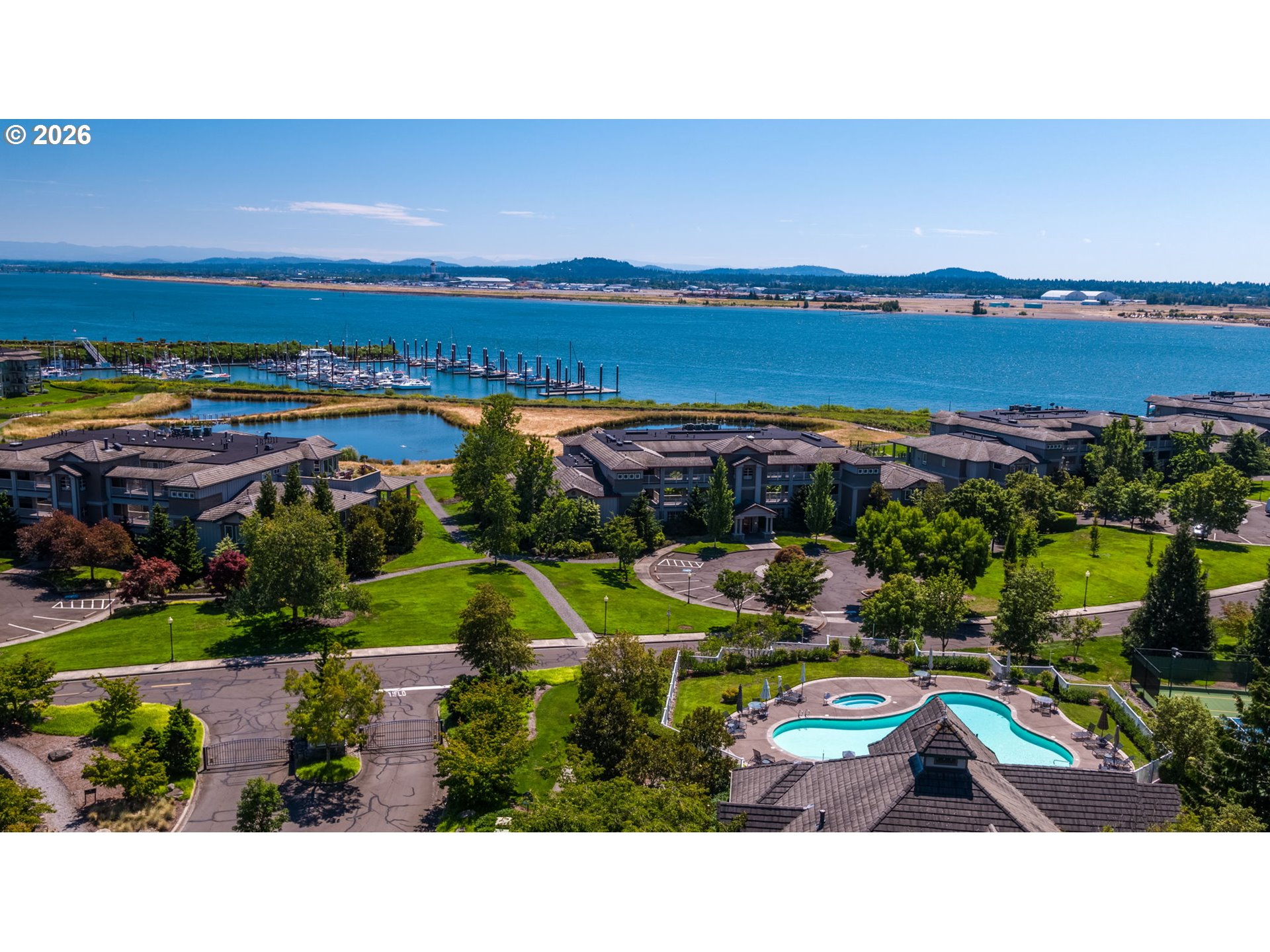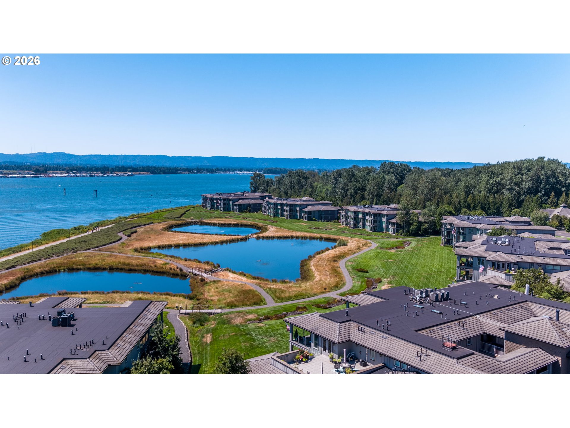 Magical park-like setting on The Columbia Riverfront. Live your best life at Tidewater Cove Condominiums. The strikingly maintained grounds offer private trails, 3 ponds, pool, spa, gym, tennis/pickleball courts, dog park for all to play and gather. This includes the well-appointed Clubhouse on the nearly 22-acre gated condominium community. Imagine long walks along the Columbia River Renaissance Trail after dining at the acclaimed The Cove restaurant, minutes from your doorstep, or perhaps after docking at the Tidewater Cove Marina. This stunning luxury condominium offers breath taking unobstructed views of sunrises, sunsets, cityscapes, mountains, marine life from the comfort of your great room and expansive covered deck that wraps around to the owner's suite. The living space was designed for effortless flow and boasts natural light from all the windows throughout. The views will be appreciated whether you are savoring the warmth of the custom fireplace or enjoying a more formal gathering at the dining area. The gourmet kitchen is an entertainer's dream featuring custom finishes: black walnut cabinets throughout, rich slabs of granite that complement the warmth of the wood, gourmet appliances, pantry and vast island where everyone wants to gather. There are three bedrooms: the owner's suite with large walk-in closet and beautiful designed bathroom, and two good-sized bedrooms that share a large bathroom plus walk-in closet. There is a sizable, custom designed mudroom conveniently located off the entry with an extra refrigerator, and attractive luxury vinyl flooring for easy maintenance. Below is the secure gated garage for the building, two deeded parking spots, one which is EV ready, and a very considerable secure, private storage space.