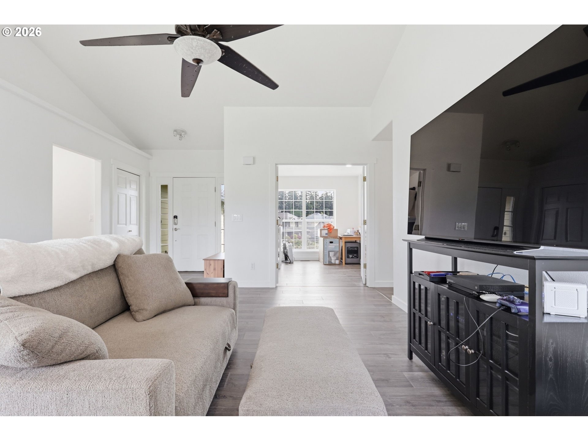 Enjoy easy, single-level living in a prime Camas location just minutes from top-rated schools, shopping, and dining in East Vancouver. Inside, vaulted ceilings and expansive windows fill the home with natural light, creating an open, airy feel that flows effortlessly from the living space into the kitchen and dining area. The kitchen is bright and fresh with crisp white cabinetry, generous counter space, and a functional layout that keeps everything within reach. The adjacent dining area is perfectly positioned to overlook the backyard. The primary suite offers a comfortable retreat with a spacious vanity, while two additional bedrooms provide flexibility for guests, a home office, or hobbies. A dedicated laundry room adds everyday convenience. Out back, a fully fenced yard and covered deck set the stage for summer evenings, weekend gatherings, or quiet mornings outside. Thoughtful updates add real value here, including fresh interior paint and new flooring completed in 2026, along with a newer furnace installed just six months ago and a hot water heater that is less than five years old. All appliances stay, including the washer and dryer, making this home truly move-in ready. Come see it for yourself and experience how comfortably this home lives. Schedule your showing today!