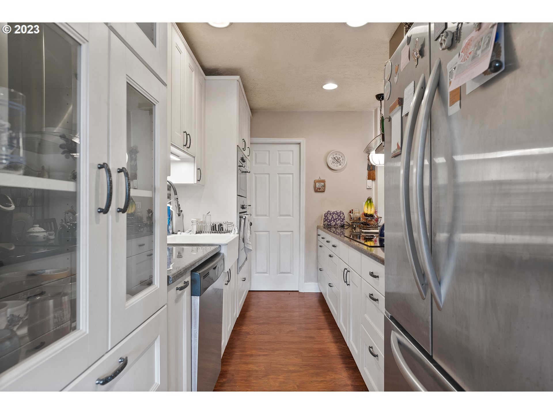 Stunningly remodeled top floor unit at Shorewood East Condominiums. New hardwood floors throughout, fully updated kitchen that opens to living space includes granite counters, tiled backsplash, induction cooktop, hooded vent, built-in oven and microwave, recessed lighting & pendant fixtures, pantry with built-in storage. Remodeled bathrooms include new sinks & faucets, countertops & backsplash, new toilets, fully tiled walk-in shower with upgraded shower-head. Covered balcony with views of the Columbia River. Great community, strong HOA with amenities such as sauna, pool, gym, billiards, rec room, etc. Deeded parking and storage included.