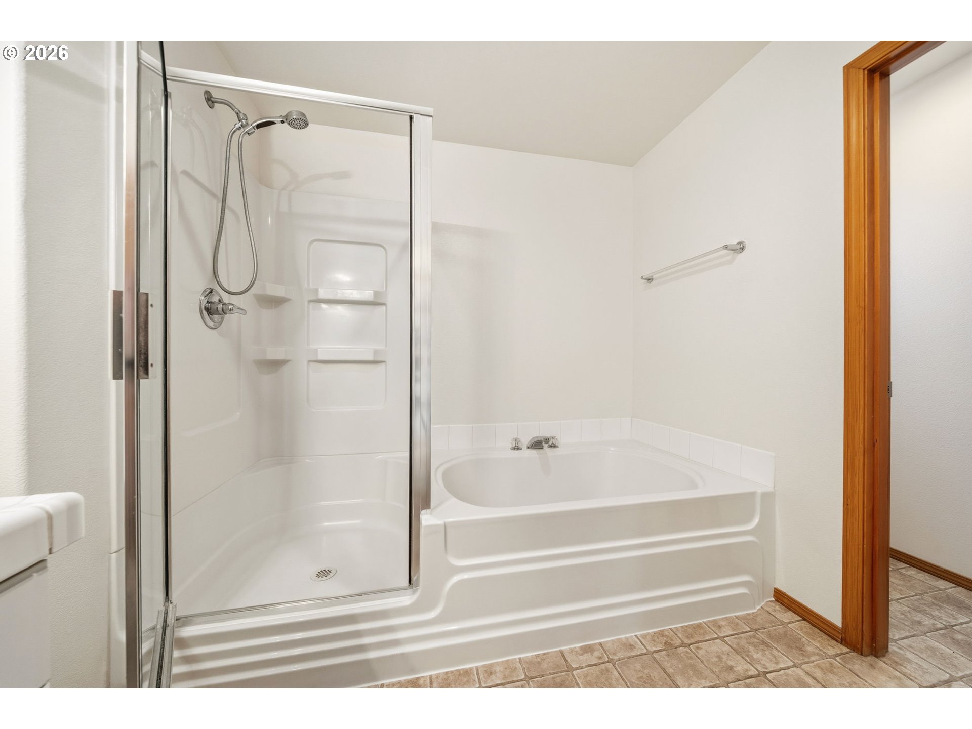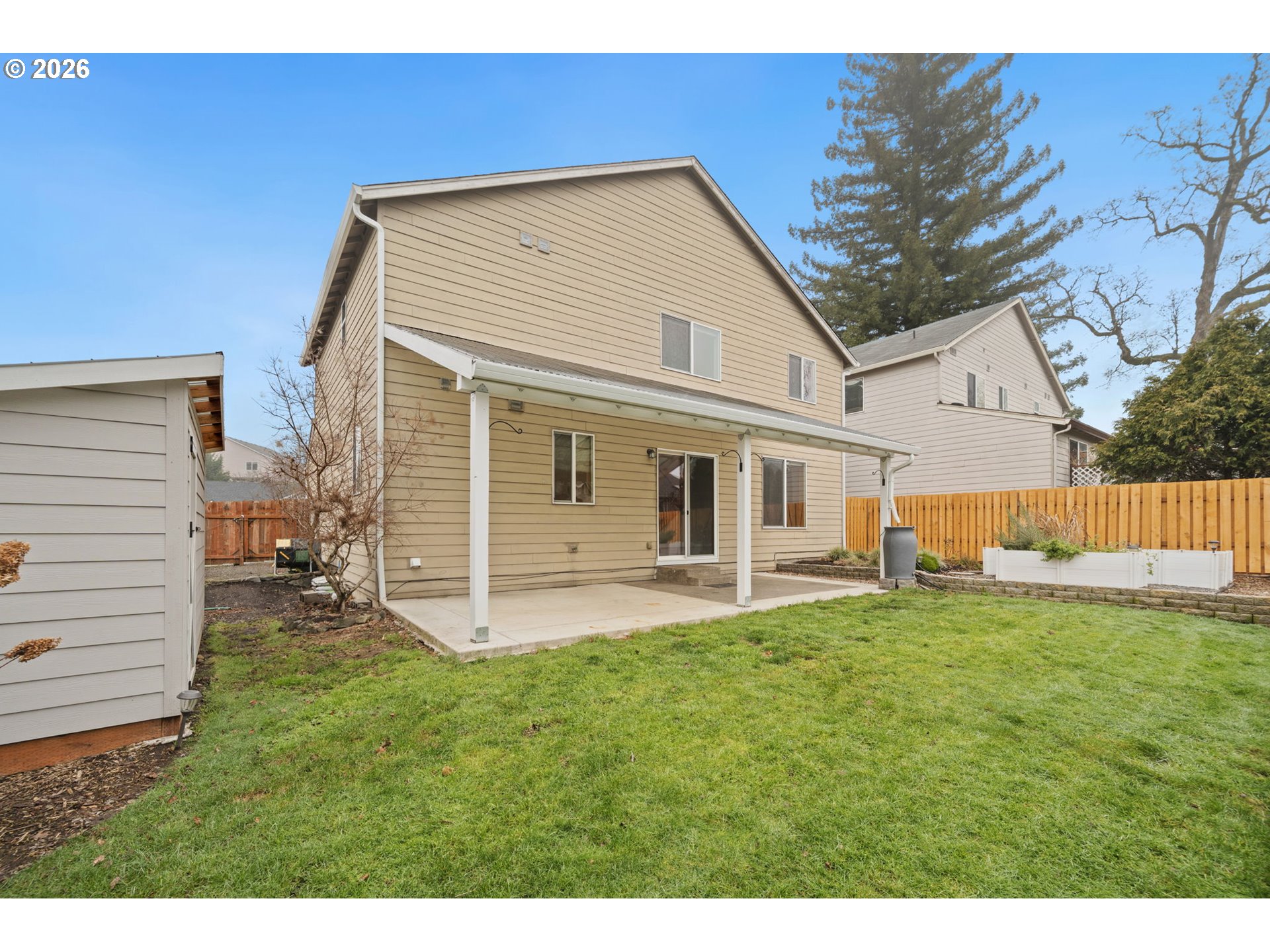 Turn-Key home offering 5 bedrooms total, including an office/den on the main level with closet, situated on a stunning lot with gated RV parking and a 7x14 tool shed (2022). New interior paint throughout, professionally cleaned carpets, and newly serviced gas heat and central A/C reflect pride of ownership and provide peace-of-mind. Sun-drenched living room offers a gas fireplace and dark hand-scraped style laminate flooring. The kitchen includes a tile island, brand-new microwave, nicely sized pantry, and all appliances staying. Added cabinetry with washer and dryer laundry room is located off an organizer's dream garage with lofted ceilings and extra racks, designed for efficiency and maximizing space. Rooms feel larger than expected, and the primary suite is no exception, featuring a double-door entry and an ensuite with double sinks, a distinctive soaking tub, and a separate shower. American top-down/bottom-up blinds throughout, new toilets, and roof and gutters cleaned with newly sealed roof vents. Outdoor spaces are designed for both function and enjoyment with a massive 28x14 covered patio with added concrete and clear corrugated covering, fenced lot, fresh bark dust, irrigation lines, French drain, new retaining wall, raised garden beds, herb plantings including lemongrass, blueberry bushes, and established privacy hedges. Delightfully move-in ready, available for a quick close, and waiting for its next chapter. Located in one of the few communities offering a true community-center lifestyle, residents enjoy access to a clubhouse with pool, hot tub, sauna, basketball court, game room, and park.