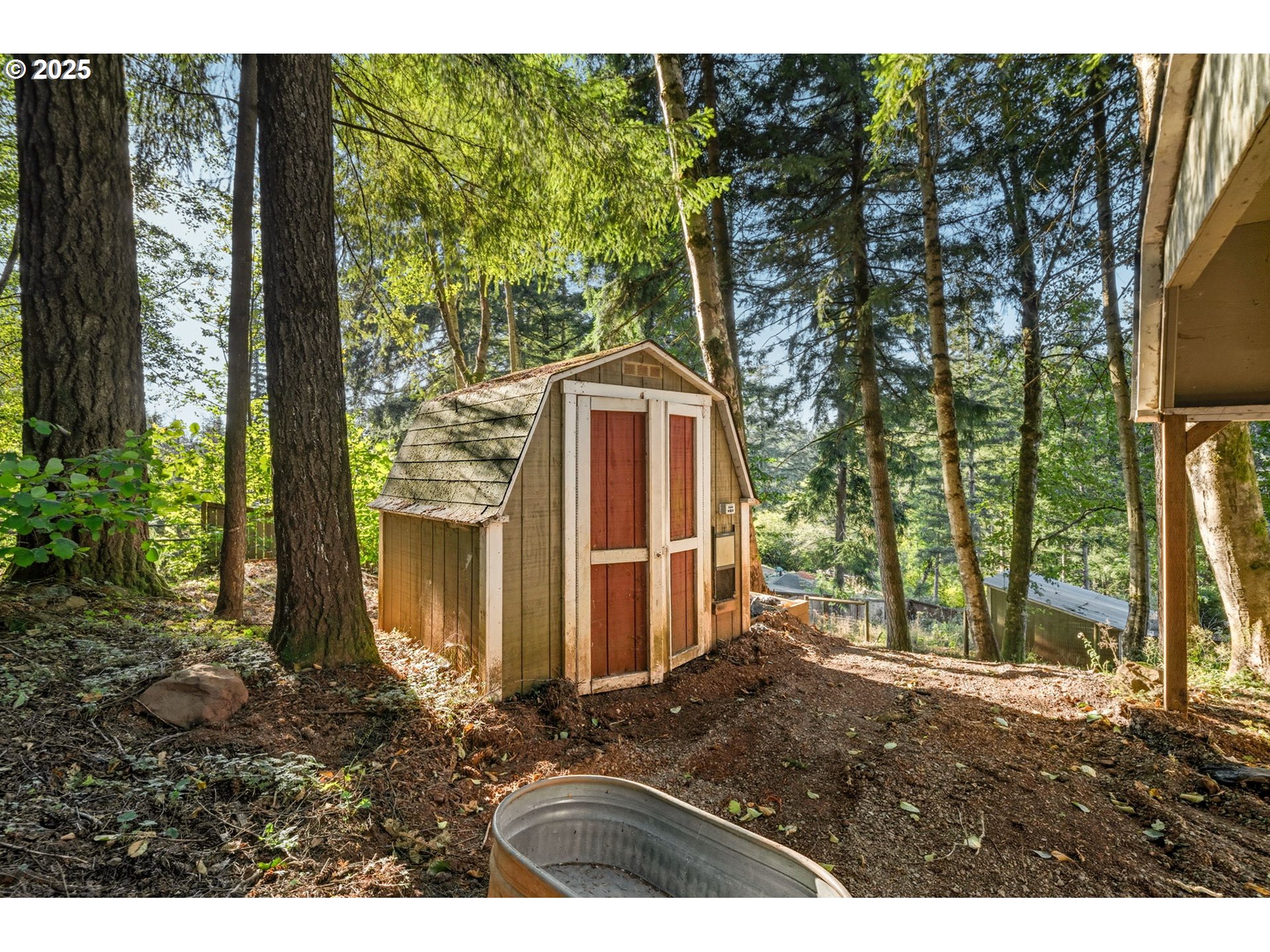 As you drive from the city to the country, your cares melt away - trees and beauty surround you, and the sound of nature and a creek greet you as soon as you pull up to this charming country home. Minutes from the stylish downtown Camas area for shopping and culture, Lacamas Lake for water sports & hiking, or golf courses and freeways, you are close to everything you need! With 2 barns, sheds, a shop, a chicken coop, and more, this is a perfect place to have animals or a garden and live off the land, park your toys, or both! The home itself has a fantastic covered patio with a pathway to a fire pit, surrounded by a rolling lawn and trees with a creek running through.The open kitchen flows into a family room and outside onto the patio, with an island and stylish cabinets. The rest of the main floor has an office, fun display areas, and a nook for a desk or a bar. This great floorplan has lots of storage and 4 spacious bedrooms upstairs with a lovely primary suite. All windows have views of greenery, and some have city lights.The property is divided into four main tiers: the top tier, designed for animals, includes a large barn (about 500 sq. ft.), a smaller barn (150–200 sq. ft.), a goat shed, a chicken coop, and a pole/hay barn.The main level features the house and a fire pit as the central gathering space. The third tier contains a wood storage shed and an earth path running from the front yard to the backyard, with a 12–15 ft. section showing some erosion where it’s best to stay close to the rock wall. And the bottom section, the lowest part of the property, includes a large metal shed (about 350 sq. ft.), a forested area, and a dirt path connecting up to the third tier and back to the main level.