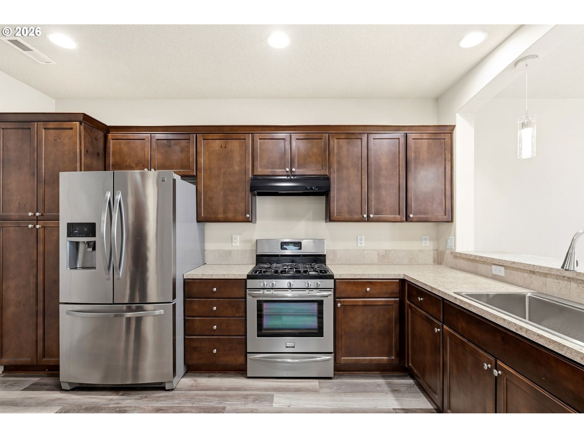 Impeccably cared-for 3-bedroom, 2.5-bath home offering low-maintenance living in a convenient location. Recent updates include brand new waterproof LVP flooring throughout, fresh interior paint, updated lighting, and replaced sinks and toilets. Additional features include newer central air conditioning unit and washer and dryer. Upstairs, a versatile loft area with a skylight provides flexible space for a home office, reading area, or additional living use. The kitchen includes a new single-basin sink, gas range, refrigerator, and dishwasher. Outdoor features include a concrete patio, covered patio area, and low-maintenance decking. The property also includes a full two-car garage. Conveniently located near major roadways, shopping, and everyday services. Move-in ready!