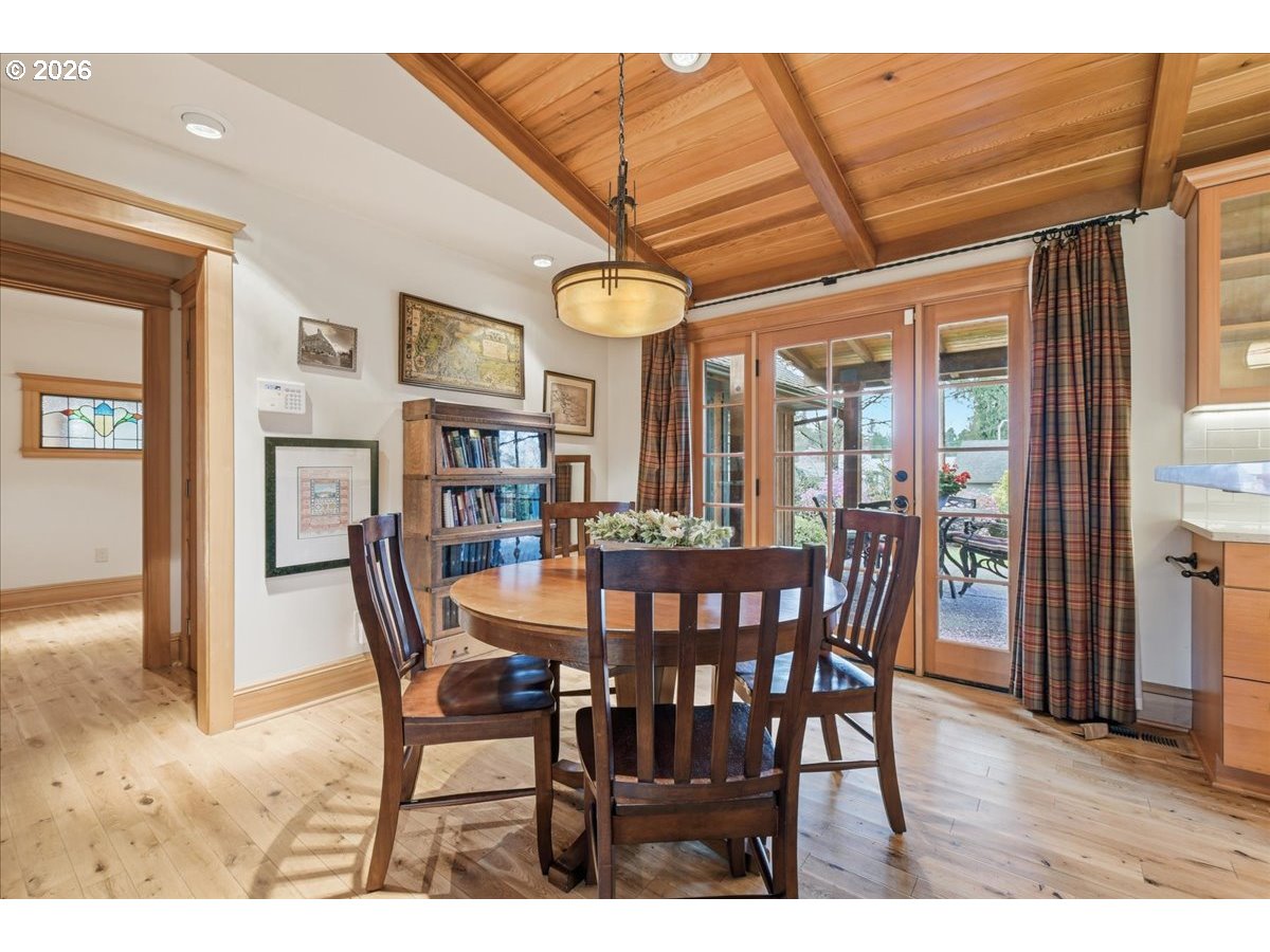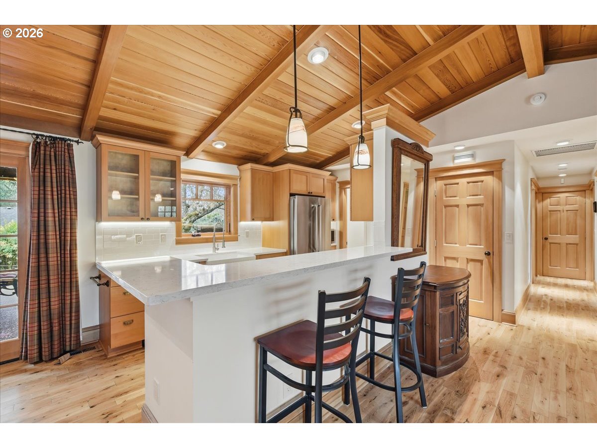Beautiful Northwest Craftsman-style home in the desirable Northcrest neighborhood, located in The Heights area of Vancouver, offering timeless character and a warm, inviting feel. Rich wood siding, exposed beams, and a covered front entry create standout curb appeal. Inside, vaulted tongue-and-groove ceilings, hardwood floors, and detailed millwork showcase the craftsmanship throughout. The living room centers around a stunning stone fireplace and flows into the dining area and updated kitchen featuring quartz counters, farmhouse sink, and custom cabinetry.The spacious primary suite offers vaulted ceilings and a peaceful retreat, while additional rooms provide flexibility for guests, office, or hobbies. Bathrooms have been tastefully updated, and a dedicated laundry room adds convenience.Enjoy year-round outdoor living under the covered patio, surrounded by mature landscaping and a large, usable backyard. Detached garden shed provides extra storage or workspace. The Northcrest subdivision features a neighborhood park located at the end of the street. Centrally located with easy access to shopping, restaurants, hospital, I-5, I-205, and PDX Airport.