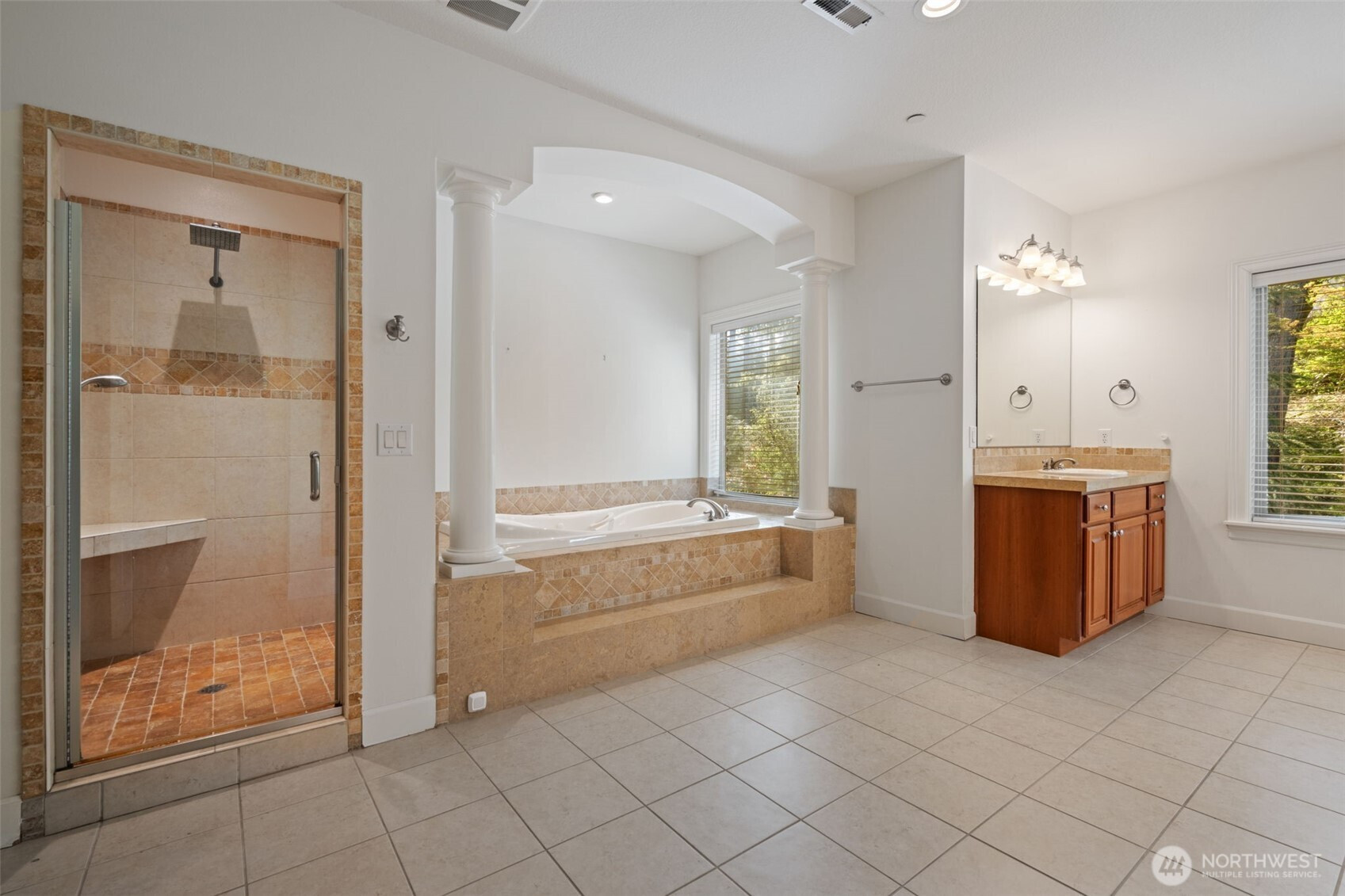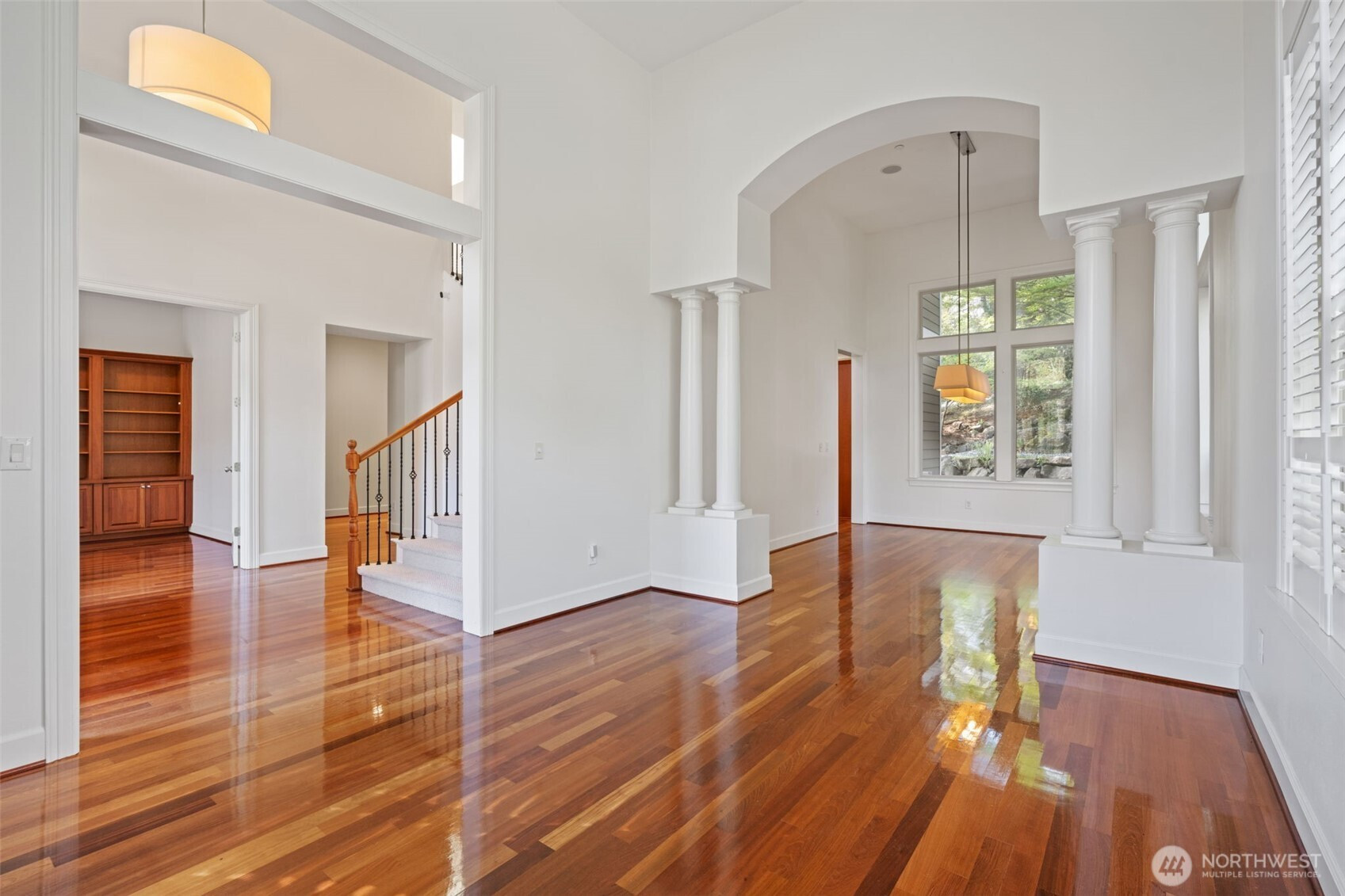 Experience elevated living in this architecturally rich home in sought-after Lacamas, where lifestyle meets design. Surrounded by access to boating, scenic trails, and golf, this residence offers a rare blend of luxury, privacy, and everyday comfort.A grand entry with a double staircase sets the tone, leading into light-filled interiors defined by soaring cathedral ceilings, expansive floor-to-ceiling windows, and stunning Brazilian cherry hardwood floors. The thoughtfully designed layout includes a spacious great room with fireplace and custom built-ins, a professional den with rich millwork, and a versatile bonus room ideal for media, fitness, or play.The chef’s kitchen is built for both function and entertaining, featuring a slab granite island, convection double ovens, custom cherry cabinetry, walk-in pantry, and integrated wine storage.Retreat to the luxurious primary suite with its own fireplace, dual walk-in closets, and spa-inspired bath with dual vanities.Outdoors, the lush, private backyard creates a true sanctuary—complete with a striking water feature, mature landscaping, expansive patio, and a serene, park-like setting that feels miles from it all.