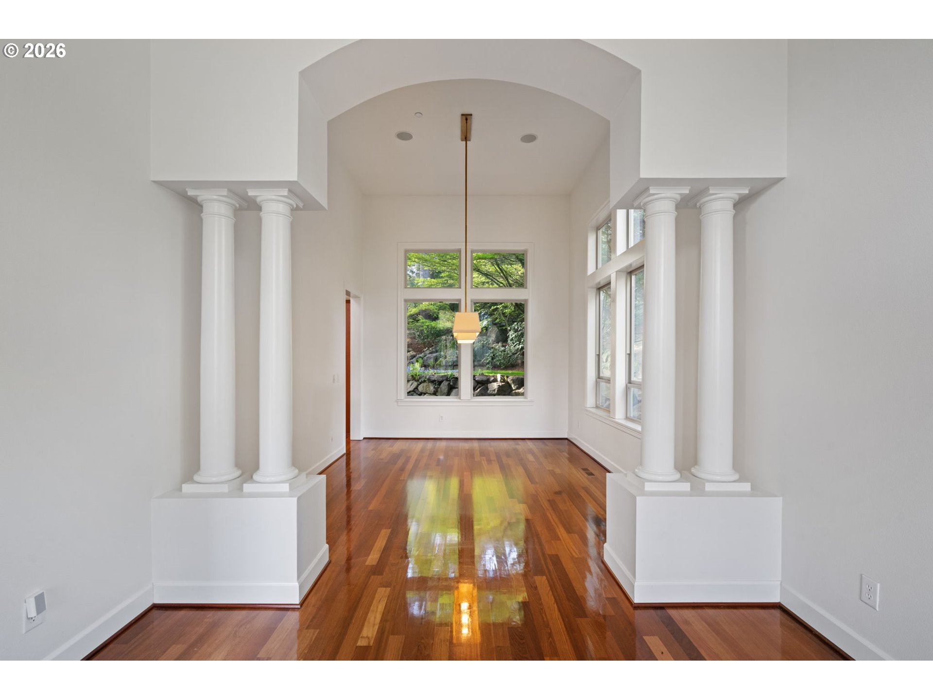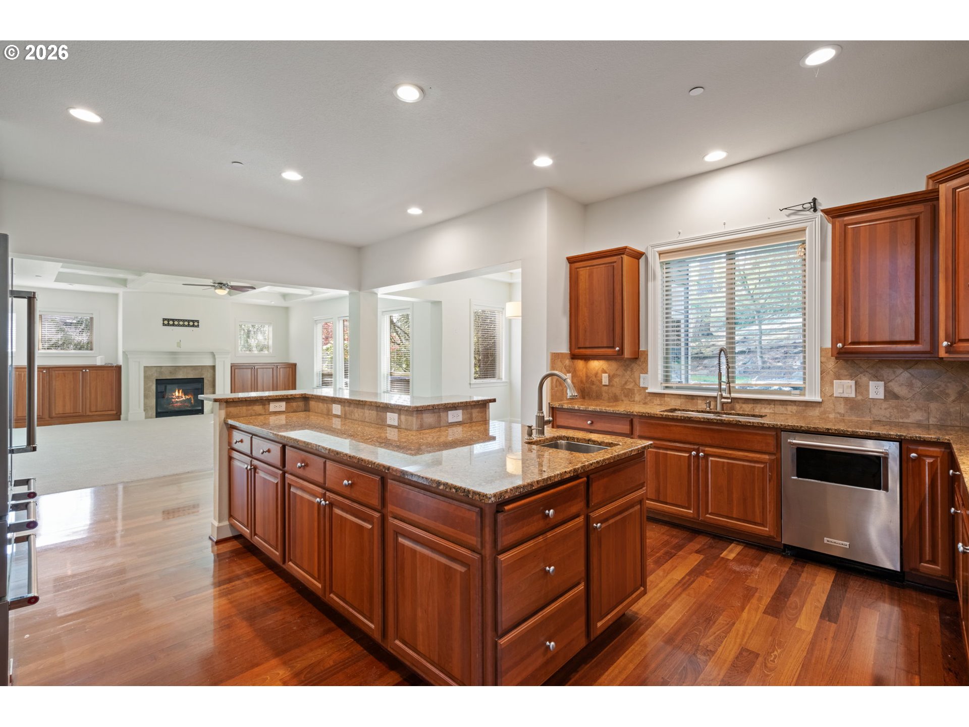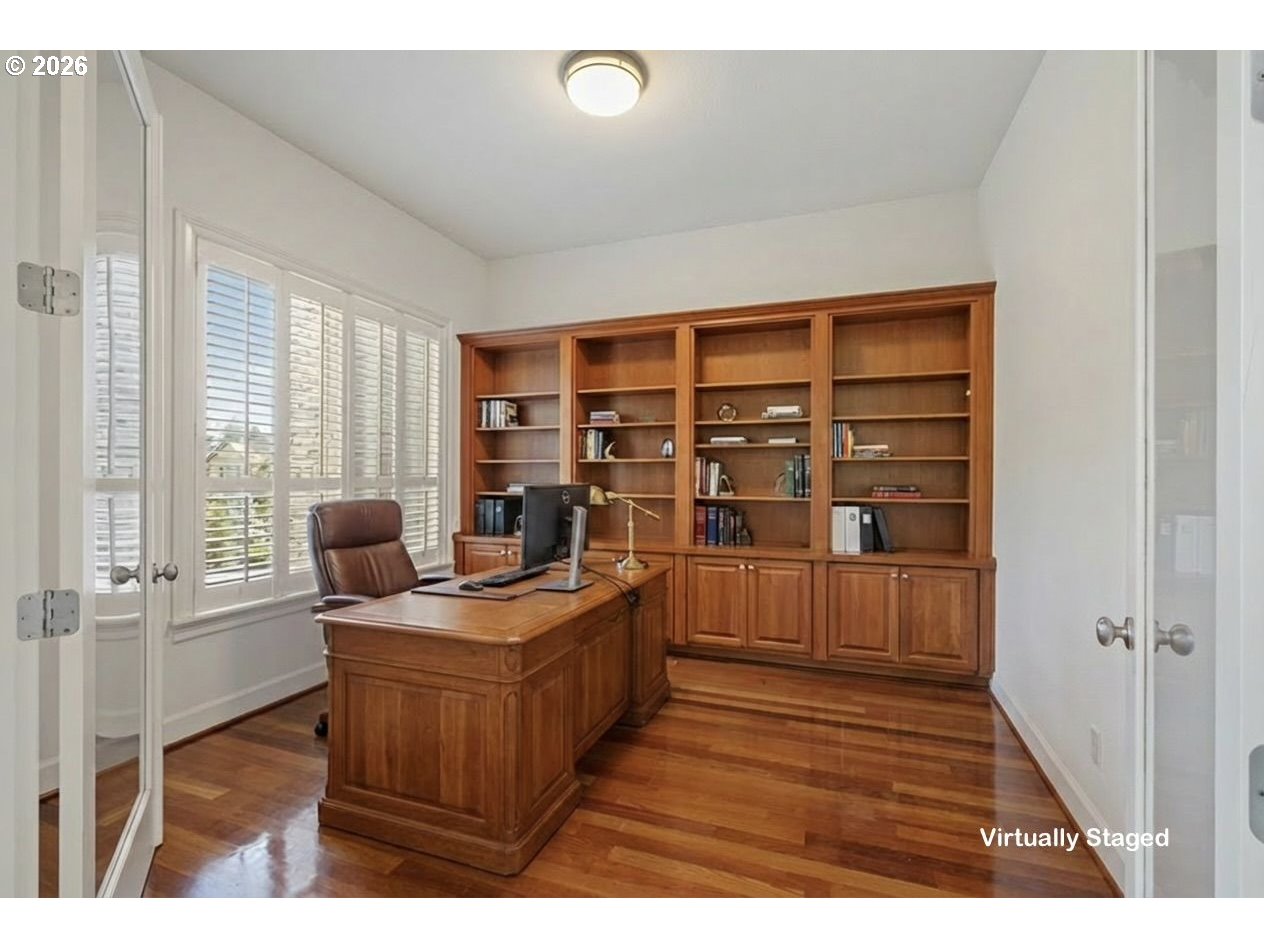 Experience elevated living in this architecturally rich executive home in sought-after Lacamas, where lifestyle meets design. Surrounded by access to boating, scenic trails, and golf, this residence offers a rare blend of luxury, privacy, and everyday comfort.A grand entry with a double staircase sets the tone, leading into light-filled interiors defined by soaring cathedral ceilings, expansive floor-to-ceiling windows, and stunning Brazilian cherry hardwood floors. The thoughtfully designed layout includes a spacious great room with fireplace and custom built-ins, a professional den with rich millwork, and a versatile bonus room ideal for media, fitness, or play.The chef’s kitchen is built for both function and entertaining, featuring a slab granite island, convection double ovens, custom cherry cabinetry, walk-in pantry, and integrated wine storage.Retreat to the luxurious primary suite with its own fireplace, dual walk-in closets, and spa-inspired bath with dual vanities.Outdoors, the lush, private backyard creates a true sanctuary—complete with a striking water feature, mature landscaping, expansive patio, and a serene, park-like setting that feels miles from it all.