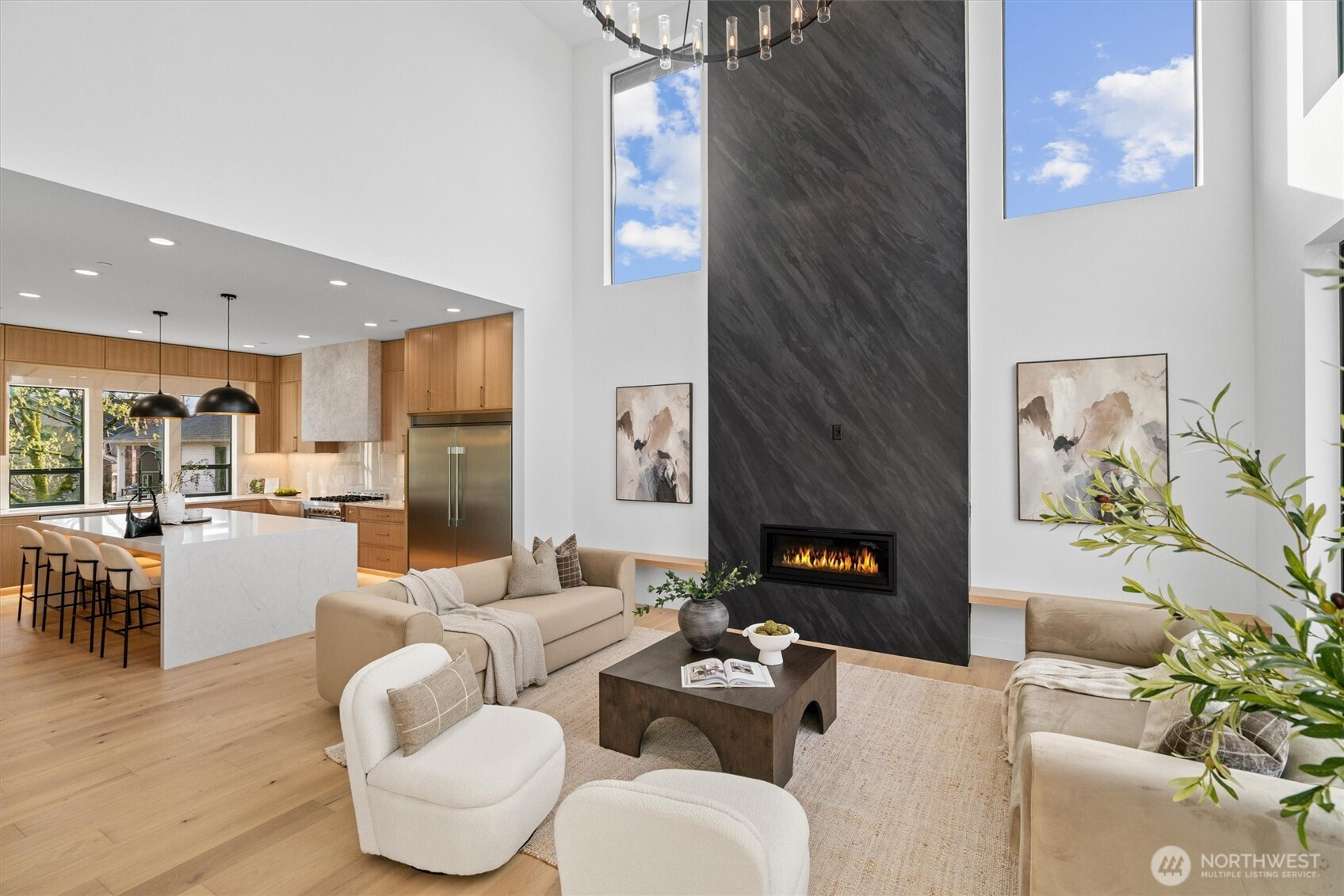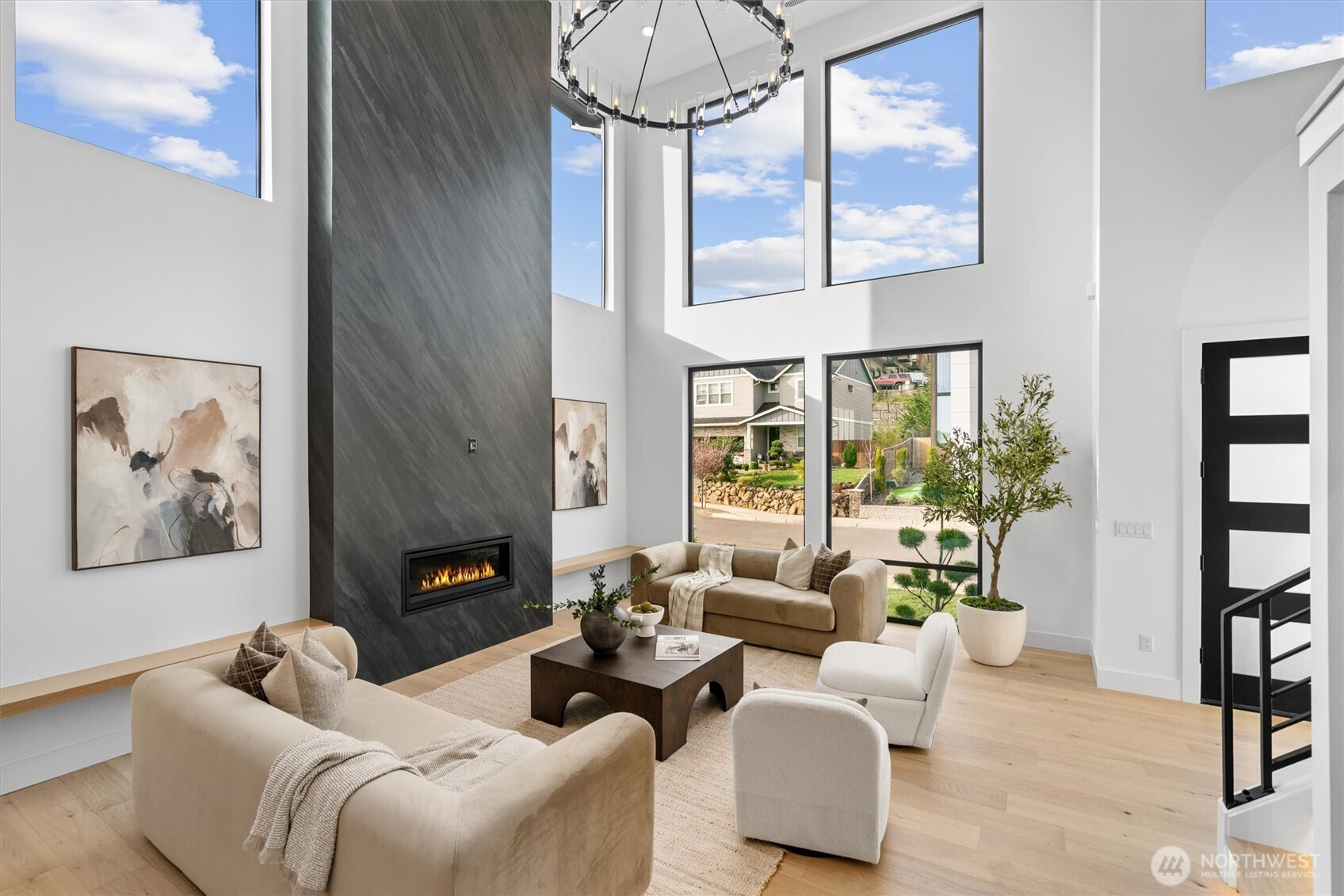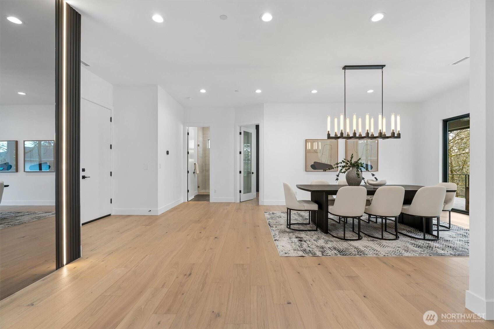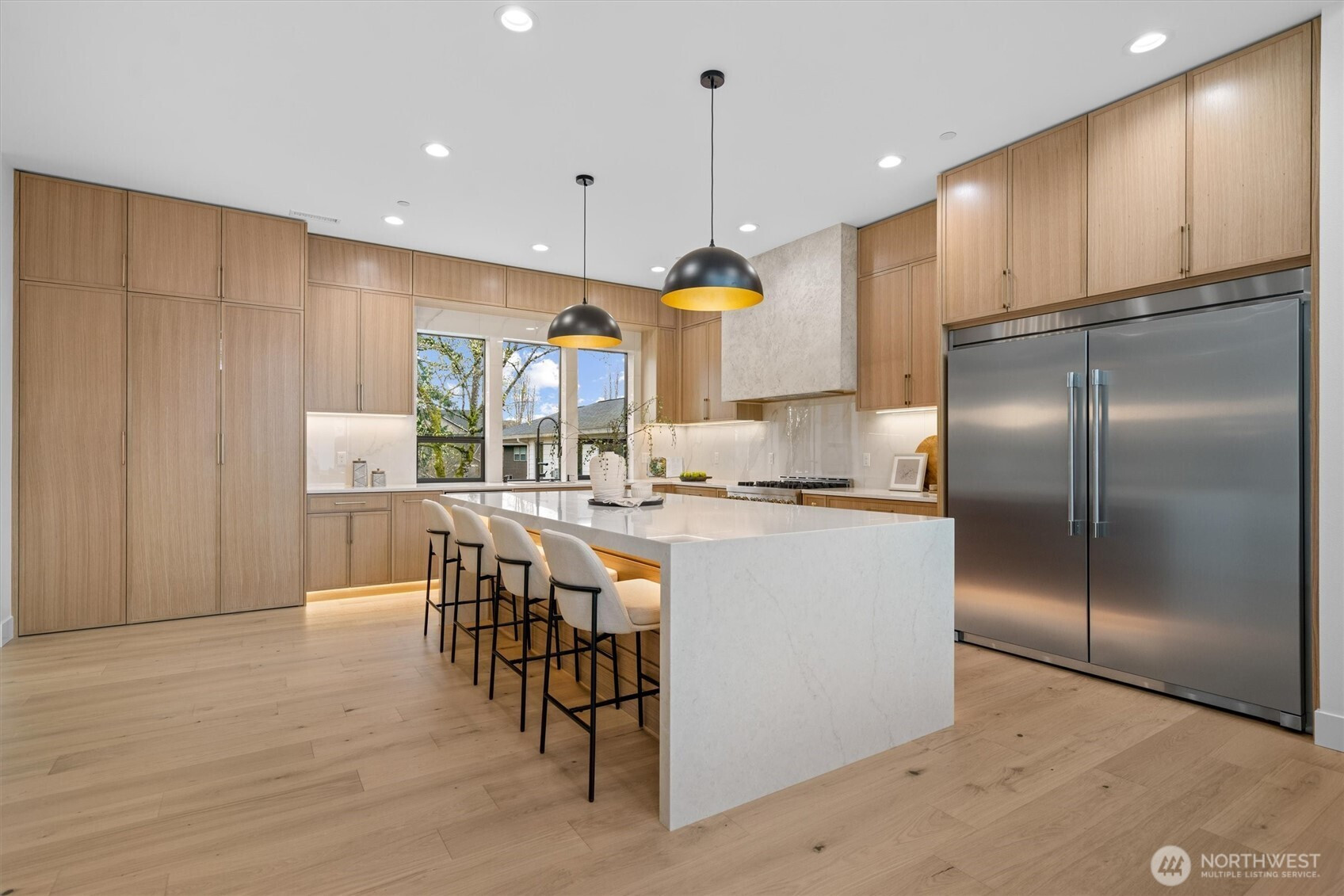 Custom modern luxury meets rare natural surroundings on one of the last remaining greenbelt lots in Spyglass Hill, located in the Camas School District. This stunning new construction offers 5 bedrooms and 5 bathrooms, including a versatile main-floor primary suite or office. The open-concept main level is designed for effortless living and entertaining, featuring a spacious living area, a beautifully appointed kitchen with a hidden pantry, and an open dining space that flows seamlessly to the deck overlooking peaceful outdoor green space. Downstairs, you’ll find a second spacious living area, bonus room, and private sauna. Upstairs offers 3 bedrooms, including a primary suite and guest suite, both with attached baths. Nearly every bedroom includes its own en suite, with expansive closet space in each of the homes closets. Enjoy seamless indoor-outdoor living with two decks, a large private yard, and a serene creek setting with seasonal peekaboo views of the Columbia River. A truly rare opportunity.