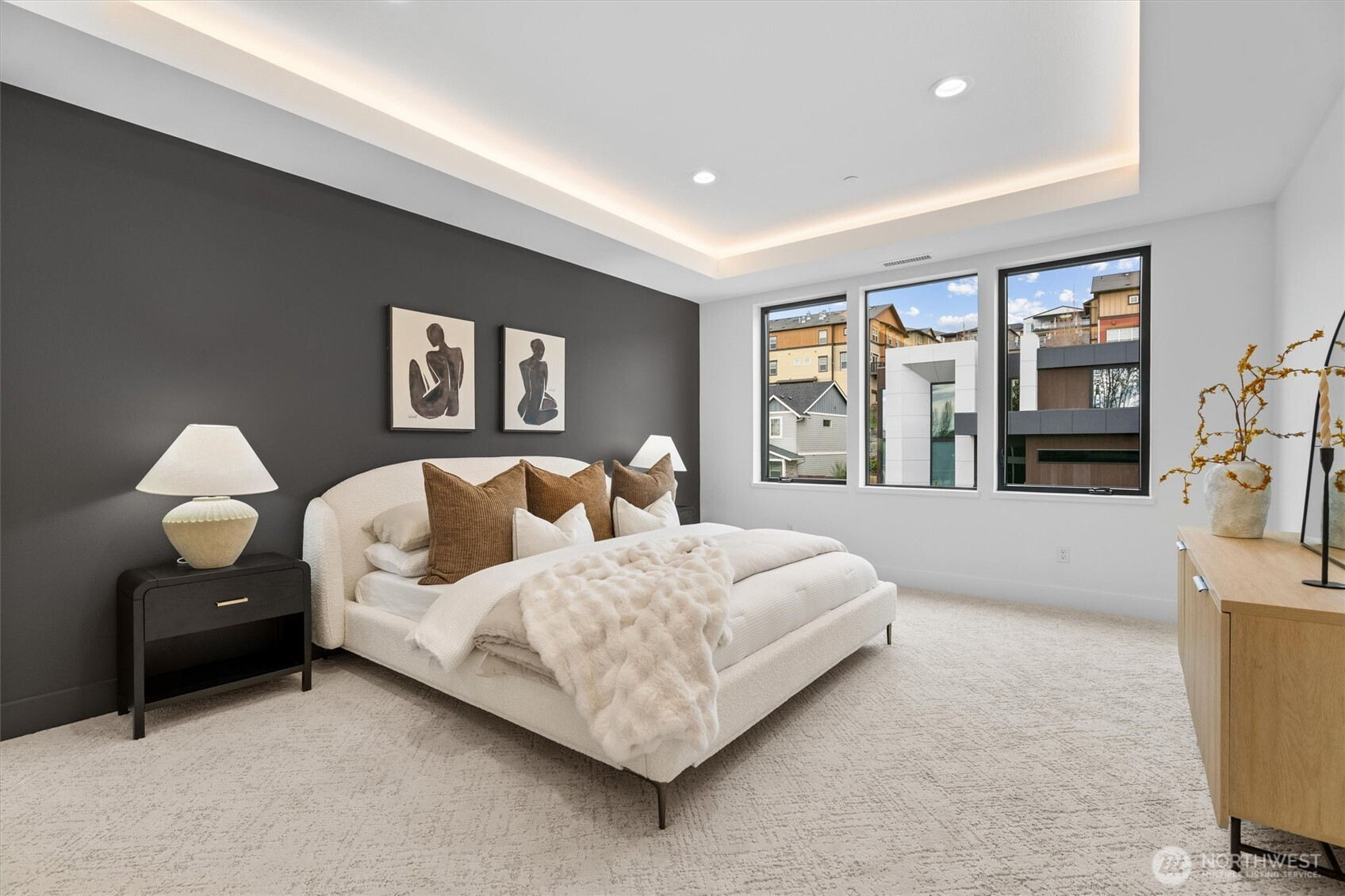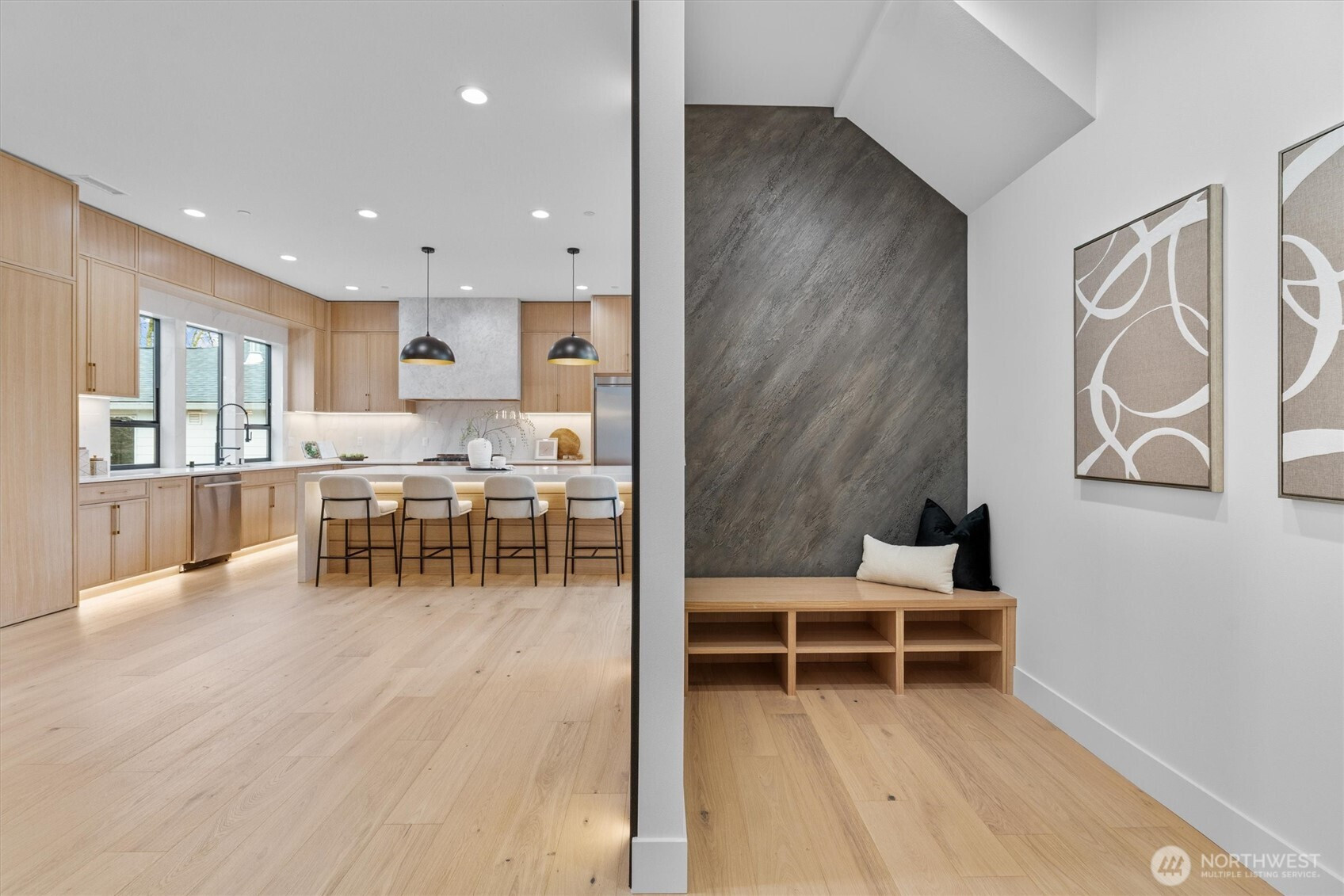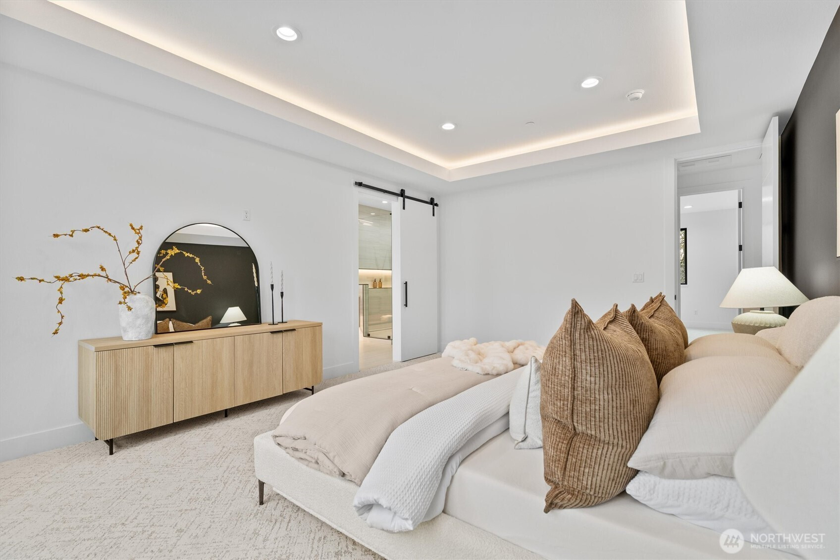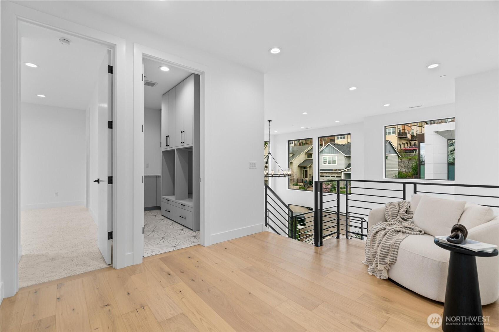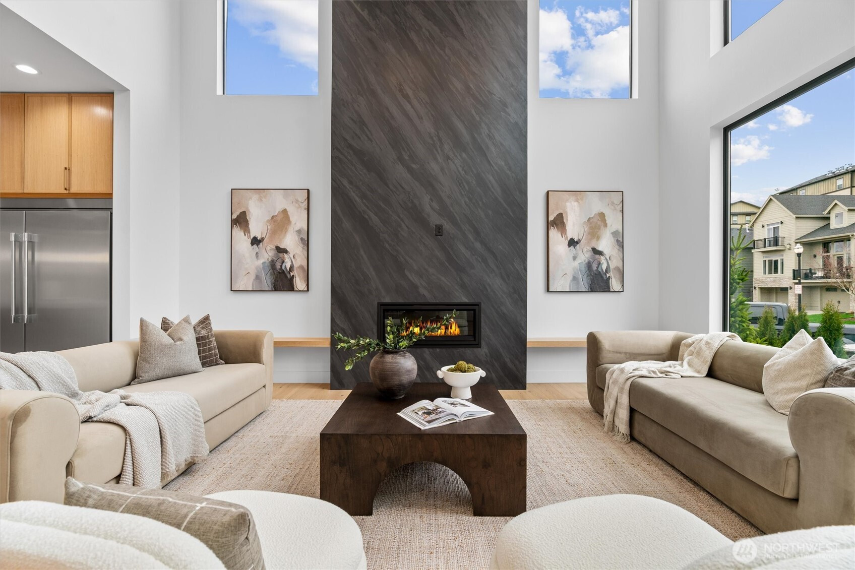Custom modern luxury meets rare natural surroundings on one of the last remaining greenbelt lots in Spyglass Hill, located in the Camas School District. This stunning new construction offers 5 bedrooms and 5 bathrooms, including a versatile main-floor primary suite or office. The open-concept main level is designed for effortless living and entertaining, featuring a spacious living area, a beautifully appointed kitchen with a hidden pantry, and an open dining space that flows seamlessly to the deck overlooking peaceful outdoor green space. Downstairs, you’ll find a second spacious living area, bonus room, and private sauna. Upstairs offers 3 bedrooms, including a primary suite and guest suite, both with attached baths. Nearly every bedroom includes its own en suite, with expansive closet space in each of the homes closets. Enjoy seamless indoor-outdoor living with two decks, a large private yard, and a serene creek setting with seasonal peekaboo views of the Columbia River. A truly rare opportunity.