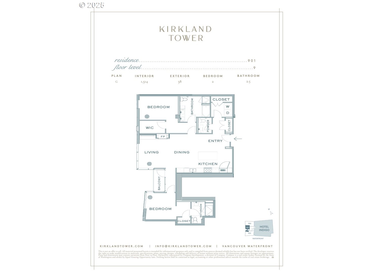 This is your chance to Own the Only two bedroom condo to come available at the Waterfront in the past 2 years! One of only two of this floor plan - which sold out first in the initial sales! Pictures don't do this home justice! Layout is great and there's an office nook in the guest bedroom!Enjoy the resort Lifestyle watching the boats go by and sunsets from your immaculate condo. Plus the home has no property taxes until 2031! Located just below the Penthouses. Become a collector of one of the ONLY 40 "full service" luxury residences you can own at the exciting Vancouver Waterfront. This home has it all - LOCATION, Ease of Ownership, LIFESTYLE and EXCLUSIVITY. This 2 bedroom 3 bath condo is a spacious home in the sky and is finished with the Penthouse finishes! Parking space is ready for EV charging station.Enjoy the elevated lifestyle while being serviced by the attached Hotel Indigo at your beck and call. Immerse yourself in the ultimate location rich with restaurants, wineries, and multi-use trail on the Columbia River Waterfront. Unique features include: Homes have their own independent HVAC unit & range hoods are all vented to the outside (no smelling your neighbors cooking nor share their air). Turn-key Luxury Furnishings negotiable! Wide Plank Hardwood Floors European Engineered floors, DXV Bidet, Cambria Quartz Countertops, Miele range and refrigerator, incorporated microwave, Rooftop Sky Lounge, Fire Pit, Fitness Center, Grill, Concierge and fully secured building and assigned secured underground parking.