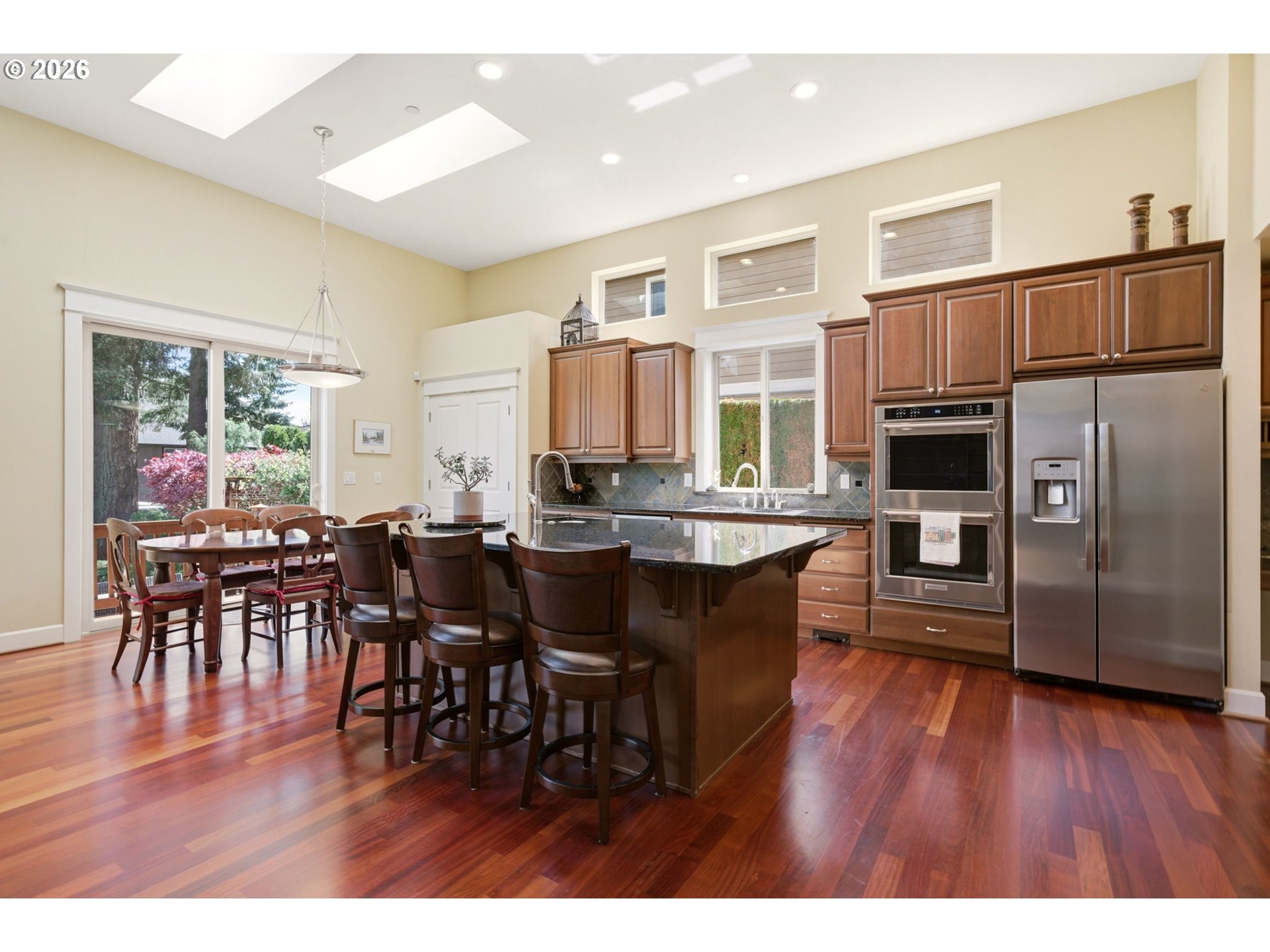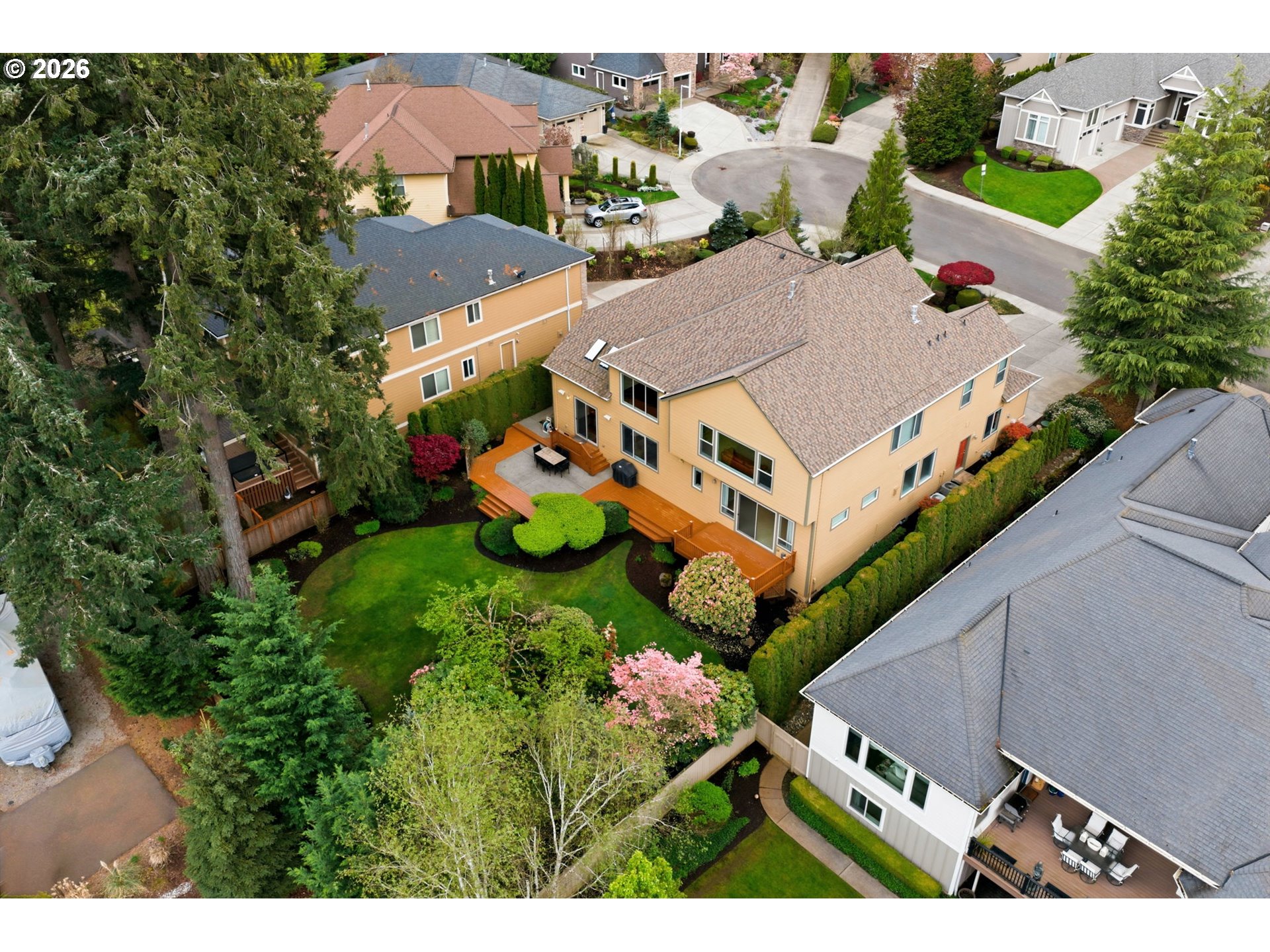 (503) 893-8874This elegant Camas residence represents a masterful blend of traditional craftsmanship and modern luxury. Situated on a tranquil cul-de-sac, the home immediately impresses with its grand architectural presence and meticulously maintained grounds. The interior journey begins in an expansive foyer, leading to formal living and dining rooms, with rich cherry-toned hardwood floors throughout. an abundance of natural light from soaring windows and strategically placed skylights. The heart of the home is a chef-inspired kitchen, featuring a massive central island with a second prep sink, gas cooktop, sleek granite countertops, and premium stainless built in double ovens, microwave and dishwasher. Custom dark wood cabinetry provides ample storage, while the adjacent breakfast nook offers a cozy spot for morning coffee overlooking the lush greenery. The great room serves as a sophisticated, yet cozy, retreat, centered around a handsome stone fireplace and built-in shelving, perfect for displaying curated collections. For formal occasions, the dining room exudes elegance with its classic wainscoting and large windows. The primary suite is a sanctuary of comfort, boasting tray ceilings and a spa-like ensuite bathroom equipped with a soaking tub and a walk-in glass shower. The second bedroom features an ensuite bathroom, and the third and fourth bedrooms share a full bath. Flex space abounds with a loft, fifth bedroom and office upstairs, perfect for work, play, guest space, and more! Outside, the property transitions into a private oasis. A spacious deck provides the ideal platform for outdoor entertaining, leadings down to a manicured lawn bordered by mature trees that ensure a high degree of privacy. The neighborhood amenities include close proximity to Camas Meadows Golf Course, Lacamas Lake, and the Lacamas Lake Heritage Trail. This home is a true sanctuary, offering a sophisticated lifestyle in a premier Pacific Northwest setting.