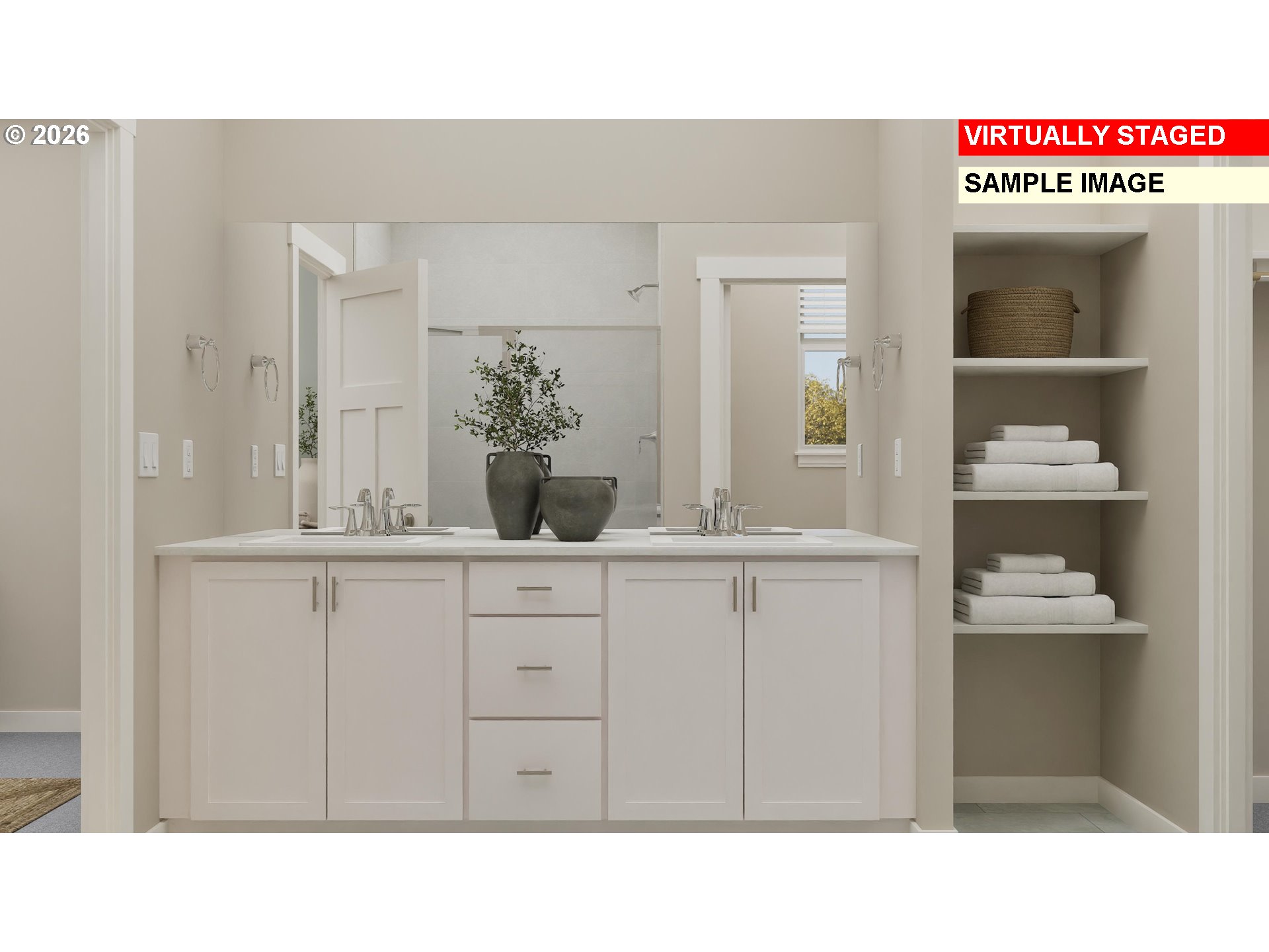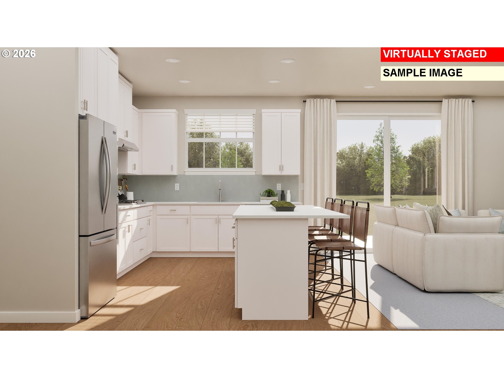 The single-story Alpine plan offers a spacious, low-maintenance layout designed for modern living. Upon entry, two bedrooms and a full bathroom lead to an inviting open-concept design that combines the kitchen, living, and dining areas. At the back of the home, the luxurious primary suite provides a private retreat with a full bathroom featuring a double vanity and a walk-in closet. Interior highlights include quartz countertops, shaker-style cabinets, a vertical tile backsplash in the kitchen, LVP (luxury vinyl plank) flooring in the kitchen and entryway, LVT (luxury vinyl tile) flooring in the bathrooms, and wooden shelving in closets and the pantry. Beyond the home, it's a short distance to the pavilion, playground & trails! You’ll love being just minutes from downtown Ridgefield, where sweeping views of the Ridgefield National Wildlife Refuge create a stunning natural backdrop. Downtown’s charming, tree-lined streets invite you to explore unique boutiques, cozy restaurants, local wineries, nearby golf courses, and the area’s outdoor recreation complex—offering something for everyone to enjoy. Experience modern comfort, smart design, and flexible living in a community that truly has it all. Photos, interior & exterior, are an artists conception, features & finishes will vary. Homesite #122.