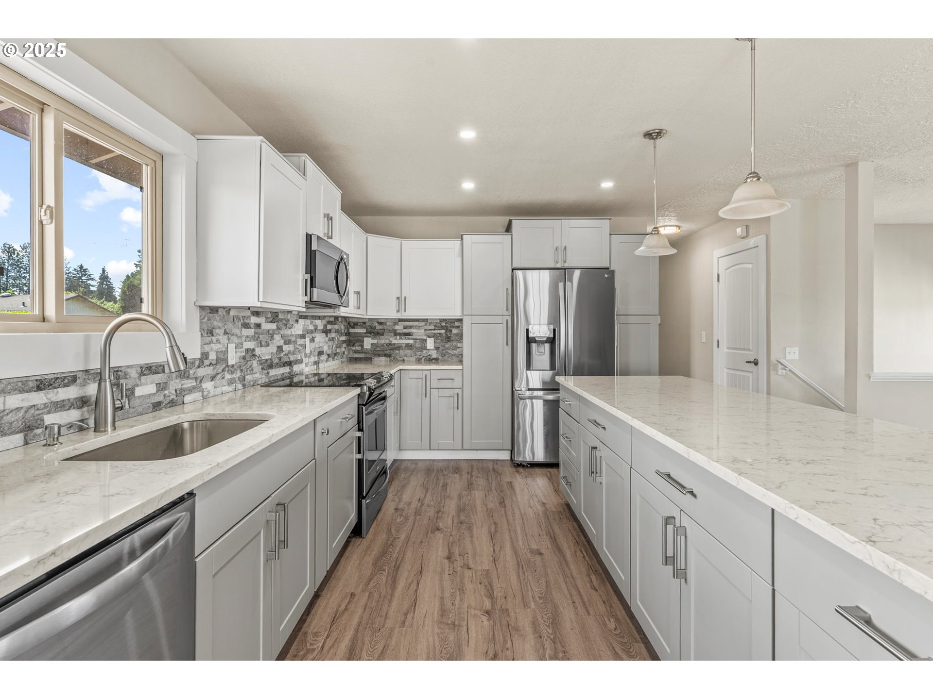 Welcome to your beautifully updated home in the desirable Upper NW Lincoln neighborhood in Vancouver! This 4-bedroom, 3-bathroom home offers 2,010 square feet of thoughtfully designed living space, perfect for multi-generational living, work-from-home flexibility, or simply spreading out and enjoying life. Step into the upper level and be greeted by an airy open-concept living room, showcasing newer LVP flooring, fresh interior paint, and abundant natural light. The kitchen is a showstopper, featuring newer cabinets, luxurious quartz countertops, Large island/eating area with tons of storage and sleek new appliances—ideal for everyday cooking and entertaining alike. The lower level offers a semi-separate living area with its own entrance, making it an excellent space for extended guests, a rental opportunity, or a private home office setup. This home has been carefully modernized with a newer electric heat pump, water heater, new vinyl windows, fixtures and fresh exterior paint—ensuring comfort and peace of mind for years to come. One of the standout features of this property is the impressive 1,300-square-foot detached shop in the backyard. Whether you’re a car enthusiast, hobbyist, or need serious storage, this space offers endless potential. The side and rear driveways also provide possible parking for an RV or boat, depending on size. The yard has established vegetation for outstanding curb appeal and deck off the dining area slider with access to back yard. Enjoy the charm of an established neighborhood with the convenience of a fully updated home—this is a rare opportunity in one of Vancouver’s most sought-after areas. Come take a look and let this property speak for itself.