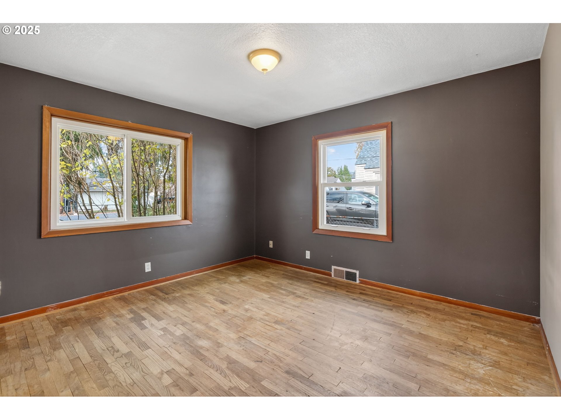 Mid Century Modern Home with coved ceilings and original hardwood floors. This home is much bigger than it appears from the outside. It has 2762 sq ft inside because of the FULL, usable, mostly finished basement! 1381 sq feet on each level! The 2+ bedrooms listed downstairs are NOT conforming. (Buyer will need to install window wells with larger windows to safely use as conforming bedrooms.) Home had new roof, gutters and furnace in 2018 and bathroom remodel in 2023. Quality vinyl windows. Large corner lot. This solid home needs some cosmetic work and is priced to sell quickly!