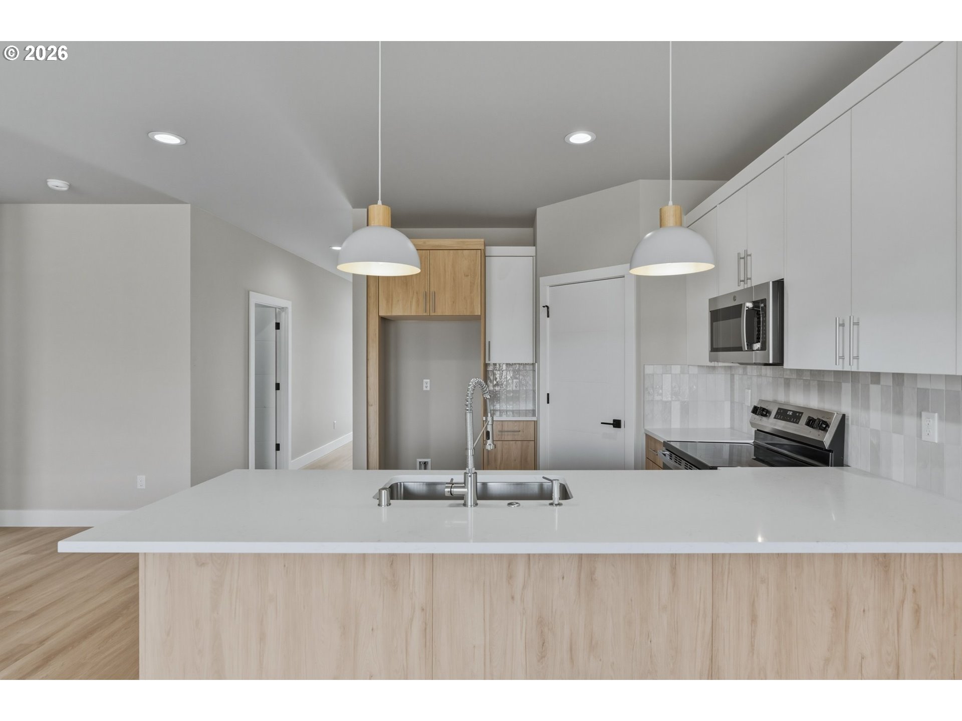 BuiltinRange, Dishwasher, Island, Microwave, Pantry, Quartz, StainlessSteelAppliance, Tile