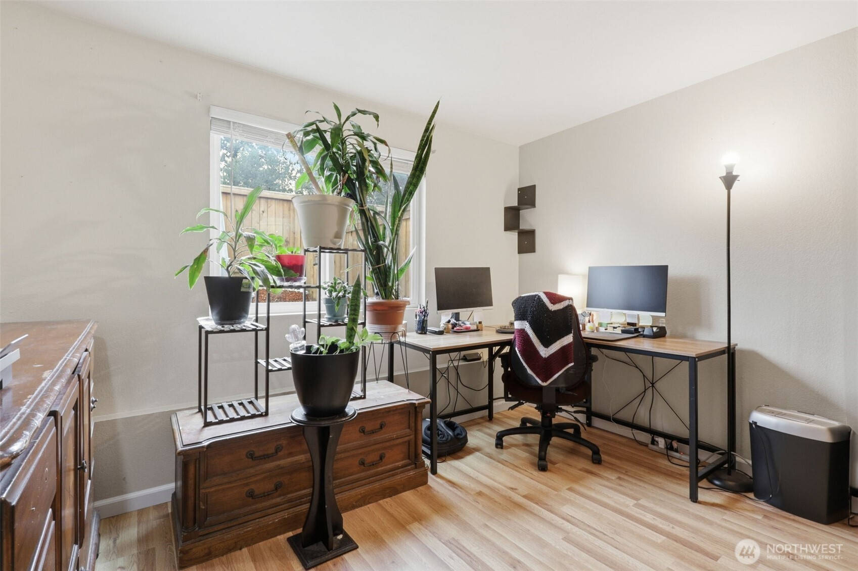 Ground-level, single-story living in Evergreen Ridge, this 2-bed, 2-bath condo offers a functional layout and low-maintenance lifestyle in a location that keeps you close to everything. Inside, the living area is warm and inviting with a cozy wood-burning fireplace, while recently updated flooring adds a fresh, clean feel throughout the space. The kitchen flows easily into the main living area, creating a comfortable setup for everyday living. Both bedrooms are well-sized, including a primary suite with its own bath, offering a practical and flexible layout. Step outside to a fully fenced backyard with a patio, a rare feature for condo living, and a great space for relaxing, entertaining, or letting pets enjoy the outdoors. With in-unit laundry, a detached garage, and easy ground-floor access, this home is a great fit for first-time buyers, downsizers, or investors looking for a solid opportunity in an established community close to shopping, dining, and commuter routes.