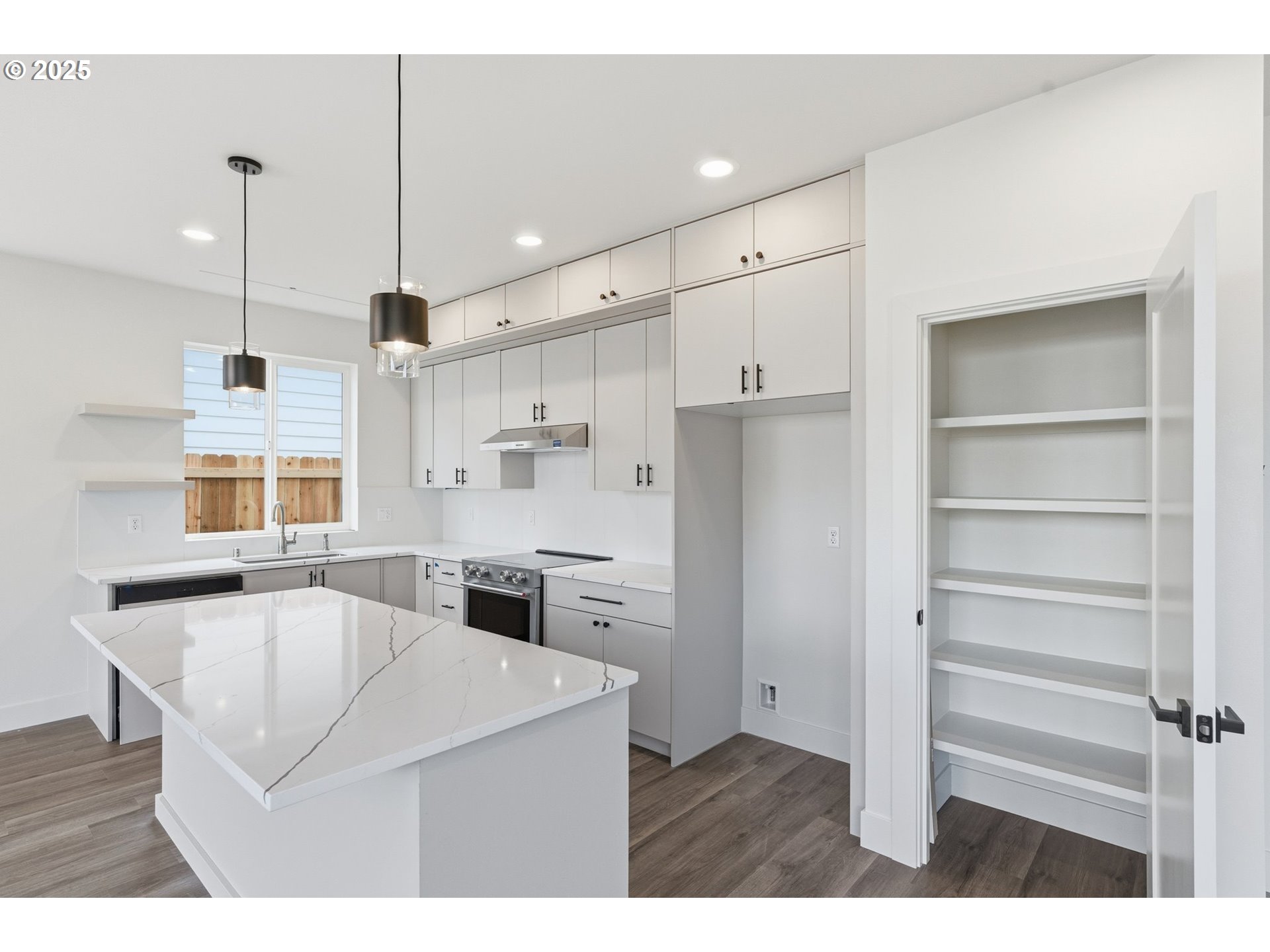 BuiltinRange, Dishwasher, Island, Microwave, Pantry, Quartz, StainlessSteelAppliance, Tile