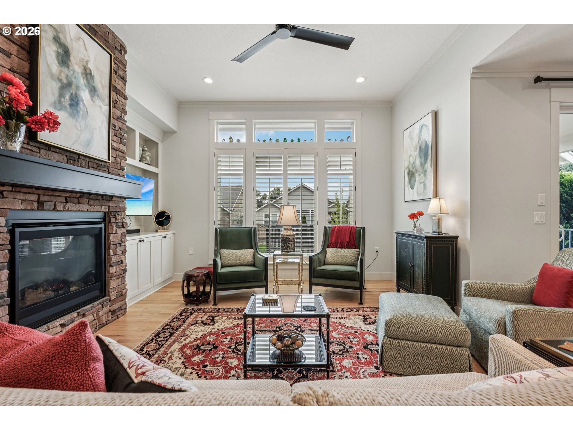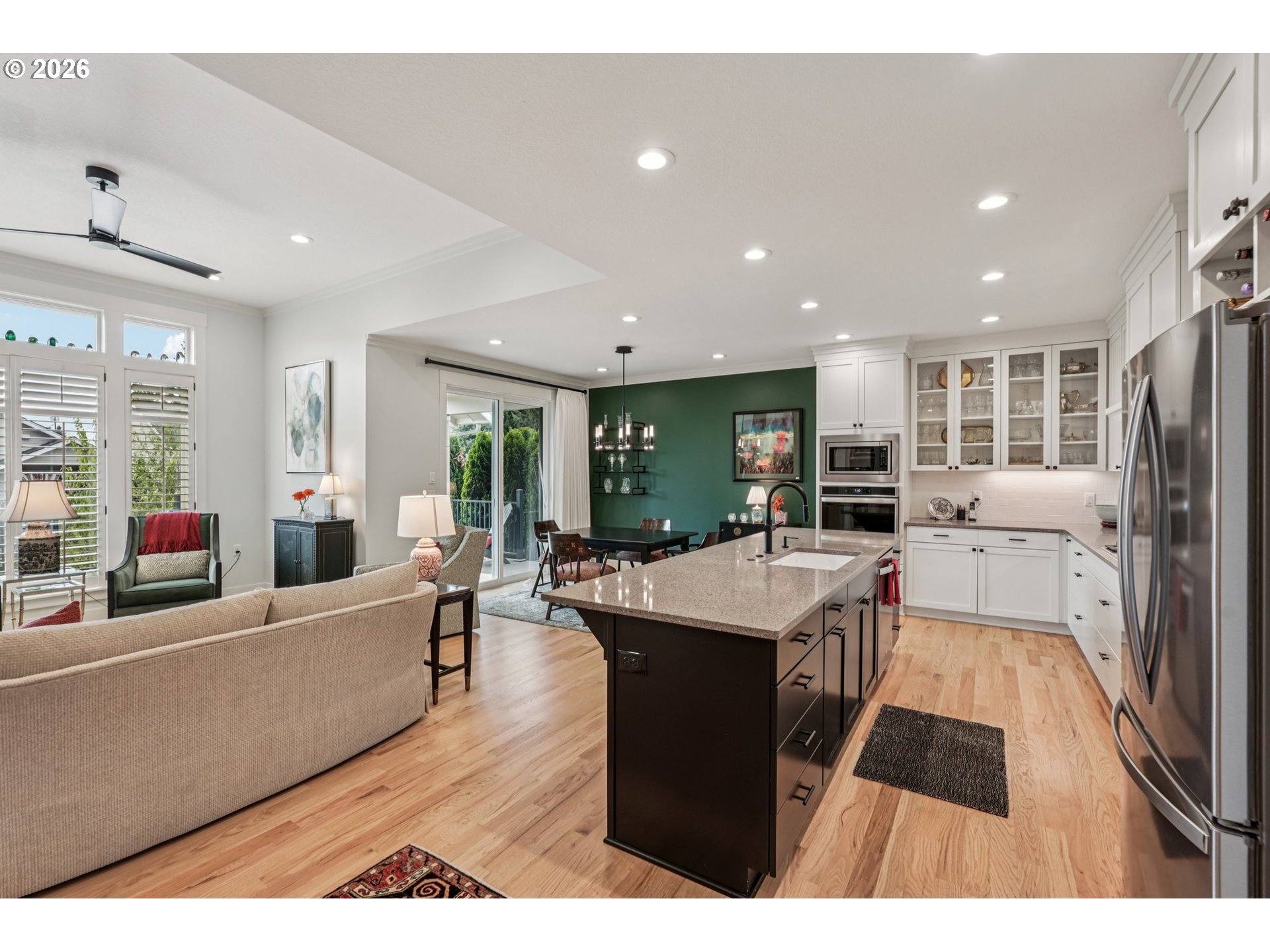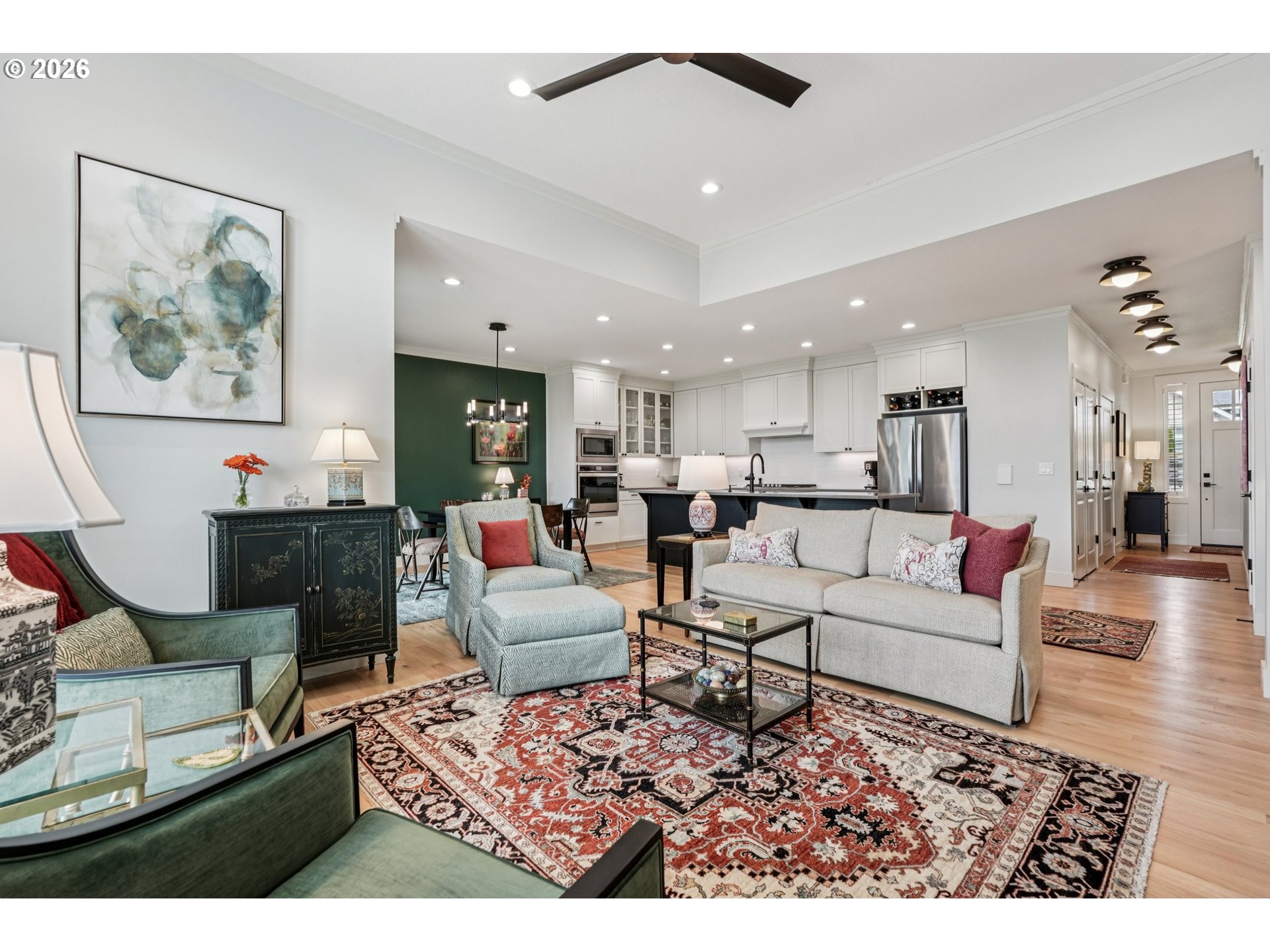 This impeccably maintained single-level home is truly stunning, showcasing exceptional pride of ownership and $100,000 in thoughtful upgrades completed within the past year. Custom built by Quail Homes. Every detail has been carefully curated, creating a seamless blend of elegance, comfort, and functionality. The well-designed layout offers effortless living, highlighted by beautiful solid oak floors and a spacious, light-filled kitchen featuring a large quartz island, gas cooktop, under mount lighting and generous storage. All appliances including the washer and dryer convey with the home. Brand new, fully remodeled bathrooms elevate the home with fresh modern finishes. Outside you will enjoy TWO covered living spaces, enhanced by an awning over the back living room window and surrounded by walkways, pavers, and a new irrigation system. The home backs to a peaceful greenspace, offering privacy and a serene setting. Additional features include a tankless water heater, whole-house water filtration system, and a highly functional garage complete with a utility sink and overhead storage rack. Ideally located close to everything you could need, this home offers both convenience and tranquility. There’s simply too much to list—be sure to ask for the full Features List!