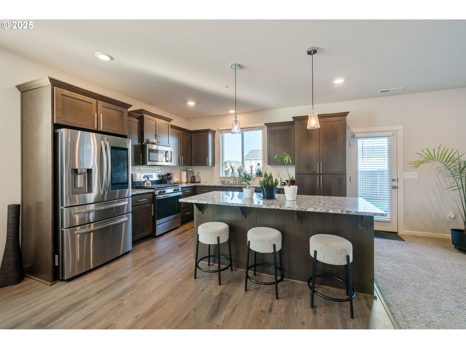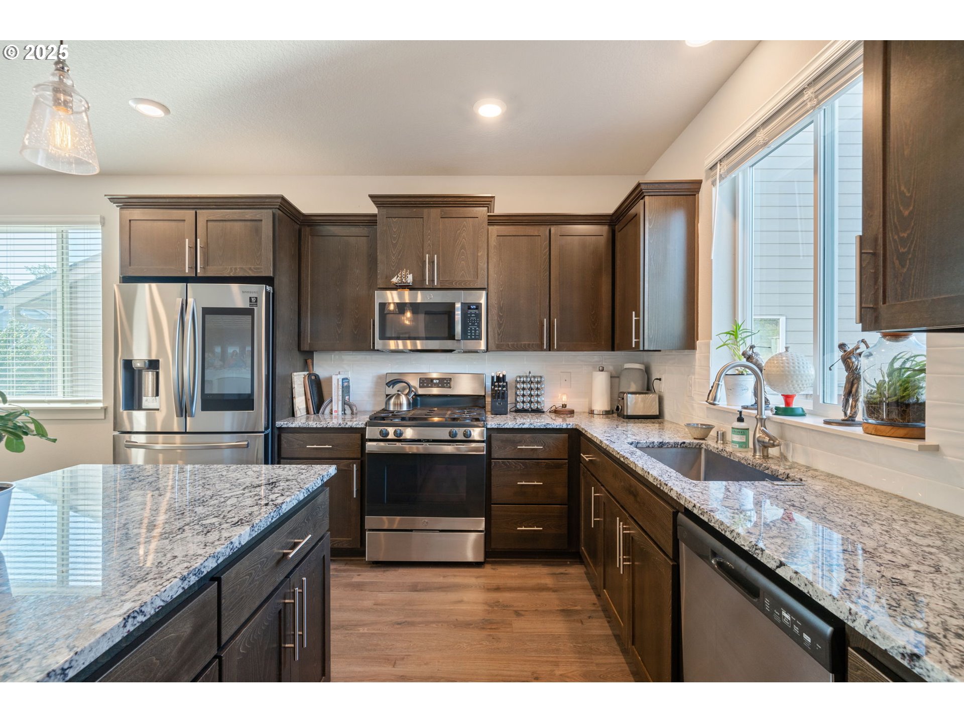 BACK ON MARKET & NO FAULT OF SELLER! Like-new home in the highly sought-after Green Mountain neighborhood of Camas! This light-filled, open-concept home features a stunning kitchen with a large granite island, stainless steel gas appliances, walk-in pantry, and modern finishes throughout. The main level boasts durable laminate flooring, a cozy gas fireplace, and a flexible entry space. Upstairs offers a spacious Owner’s Suite with walk-in closet and tiled shower, plus two additional bedrooms and a full bath.Enjoy smart home features including a smart lock and doorbell, tankless water heater, and high-efficiency heat pump with A/C. The fully fenced yard includes a patio and sprinkler system. Green Mountain amenities include a community center with pool and hot tub, park, playground, courts, trails, and more. Conveniently located near top-rated schools, shopping, dining, and Camas Meadows Golf Course!