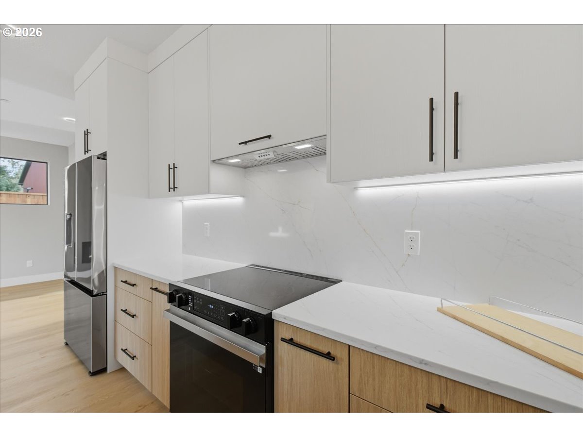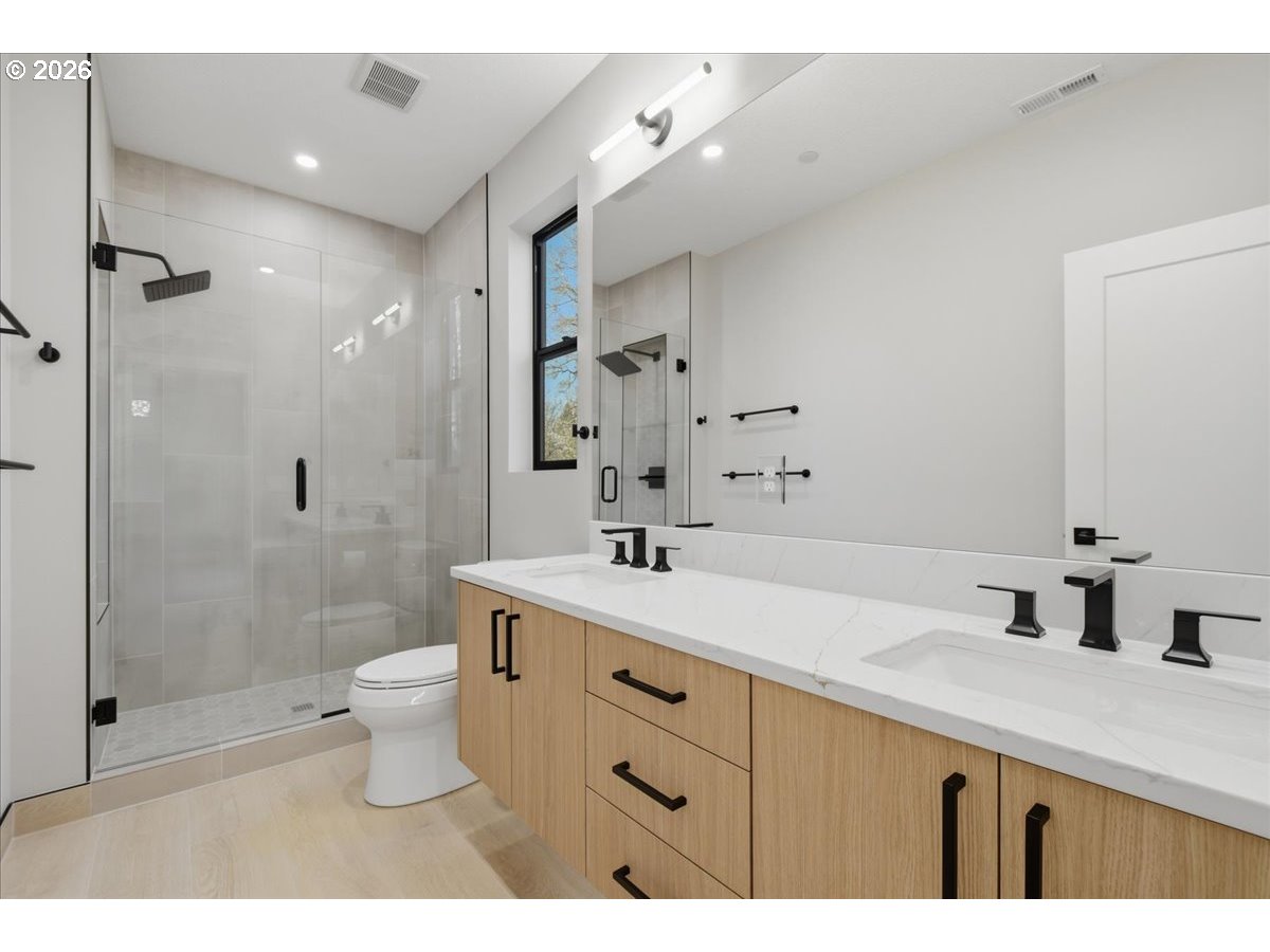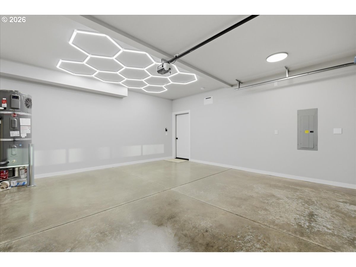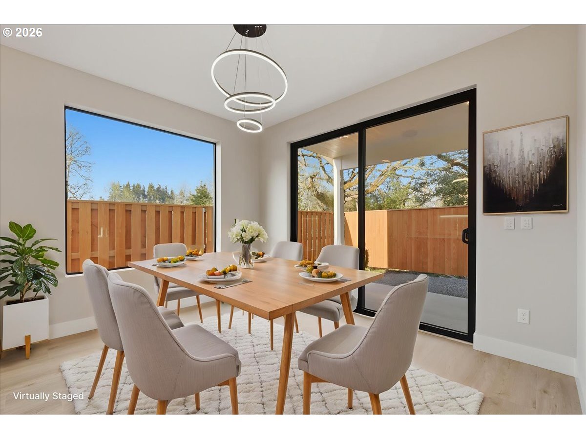 This beautifully crafted new construction home showcases contemporary custom design with 9-foot ceilings throughout and an abundance of natural light, all tucked away in a private setting. The main level features durable luxury vinyl plank flooring, unique designer lighting, and a spacious great room concept highlighted by expansive picture windows and a sleek contemporary fireplace with ambient backlighting. The kitchen impresses with custom soft-close cabinetry, gorgeous quartz countertops, a pantry, and stainless-steel appliances, while a sliding door opens to a covered patio and a fully fenced, low-maintenance backyard with turf—perfect for year-round enjoyment. Upstairs, the inviting and spacious primary en suite is vaulted and filled with natural light, offering tile floors, a mud-set shower, quartz counters, and double sinks. Two additional vaulted bedrooms feature built-in closet systems and generous sizing, complemented by a stylish hall bath with luxury vinyl floors, quartz counters, and a vanity tower. A well-appointed laundry room includes luxury vinyl flooring, a utility sink with quartz counters and custom shelving. The finished two car garage boasts stylish lighting and baseboard. This home offers a rare level of quality and craftsmanship at this price point, all conveniently located near parks, restaurants, shopping, and easy access to Vancouver’s premier waterfront. Call about our rate buy down incentive!