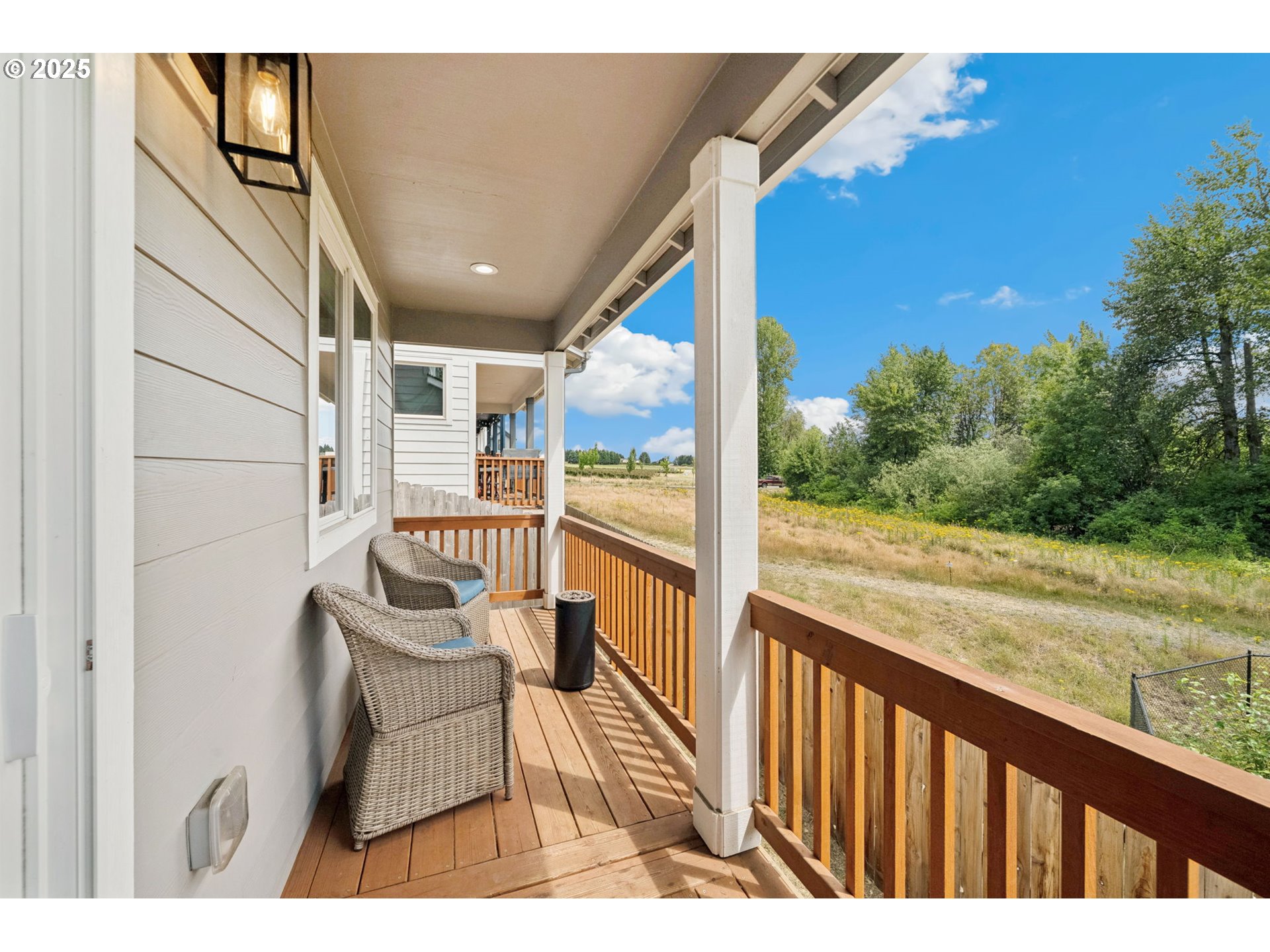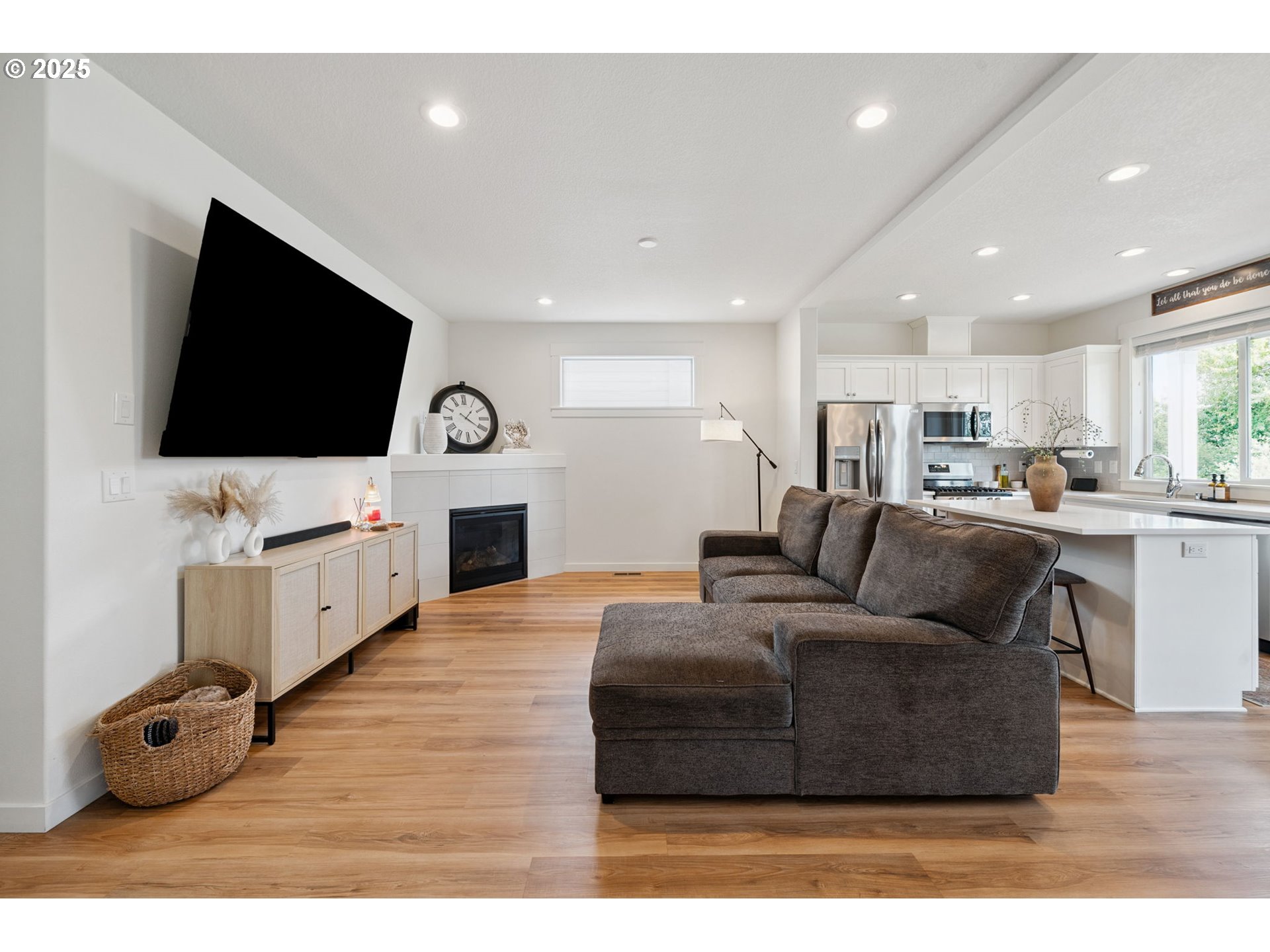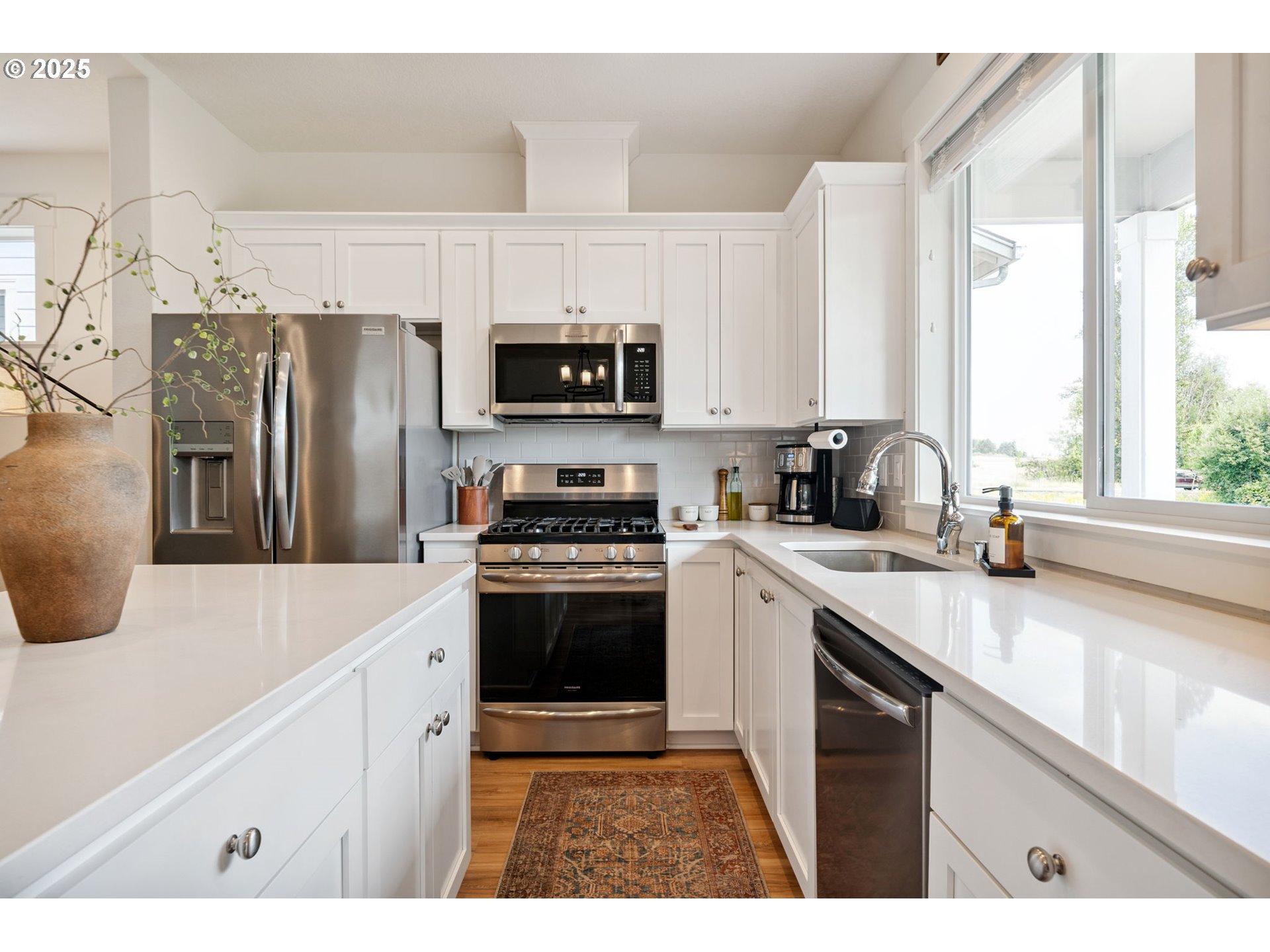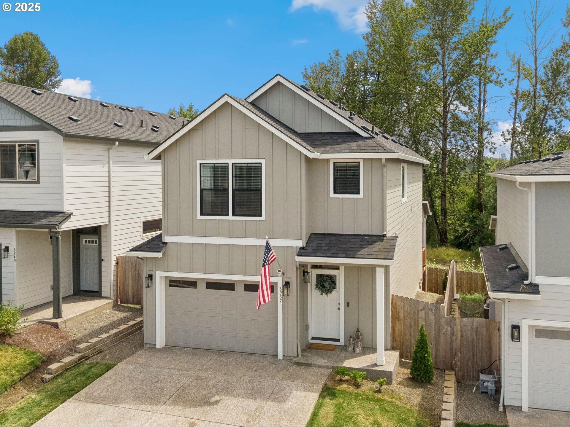 Welcome to this wonderful home community surrounded by open green space, a neighborhood park, and serene walking trails. Located near Costco, In-N-Out, coffee shops, and a variety of restaurants, this home offers both comfort and convenience. The home features a stylish kitchen with quartz countertops, painted cabinetry, and stainless steel gas appliances. Enjoy the spacious open-concept great room, complete with a gas fireplace and elegant tile surround. Durable and stylish luxury vinyl plank flooring extends throughout the main level. The generous primary suite includes a walk-in closet and a spa-inspired bathroom with dual sinks and a custom tiled shower. Additional highlights include fully wrapped interior windows, brushed nickel hardware, and upscale modern lighting throughout. Step out onto the covered back deck and take in the tranquil views of the adjacent habitat conservation area.