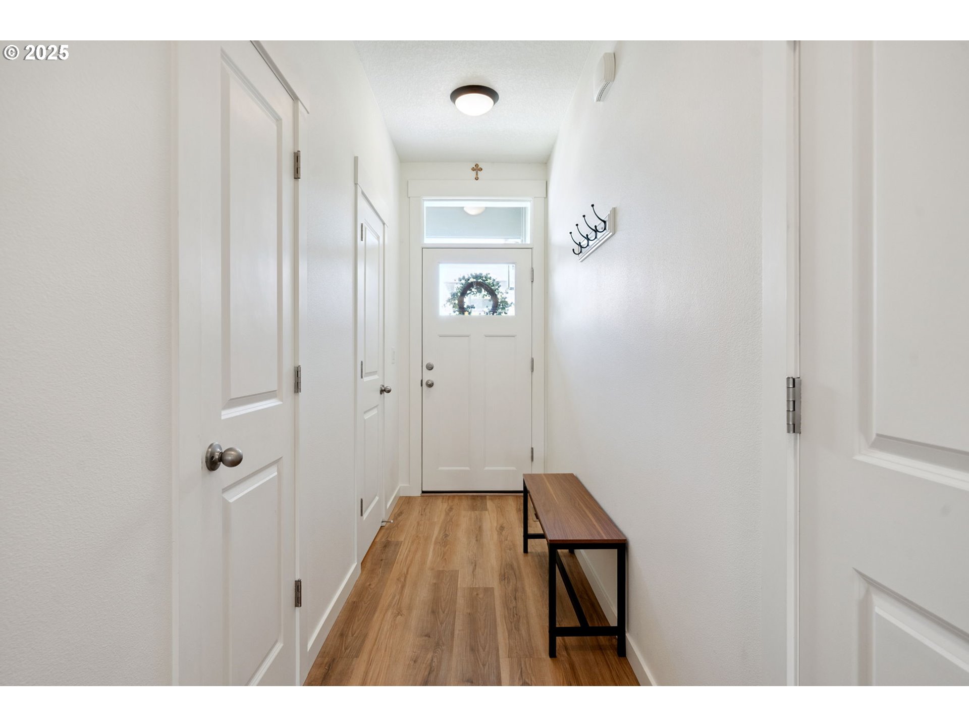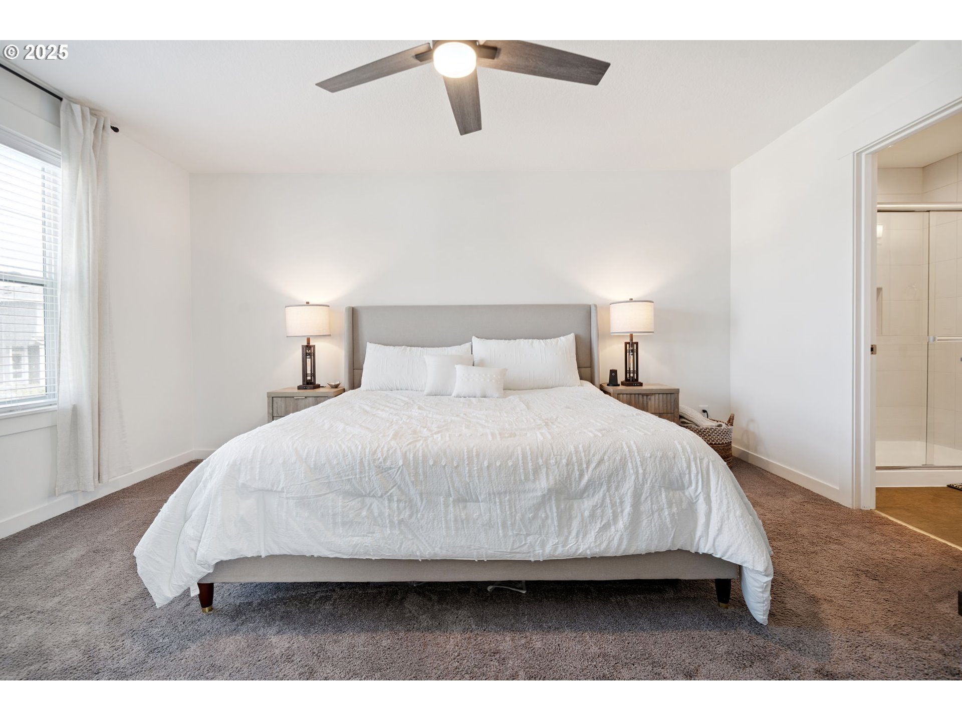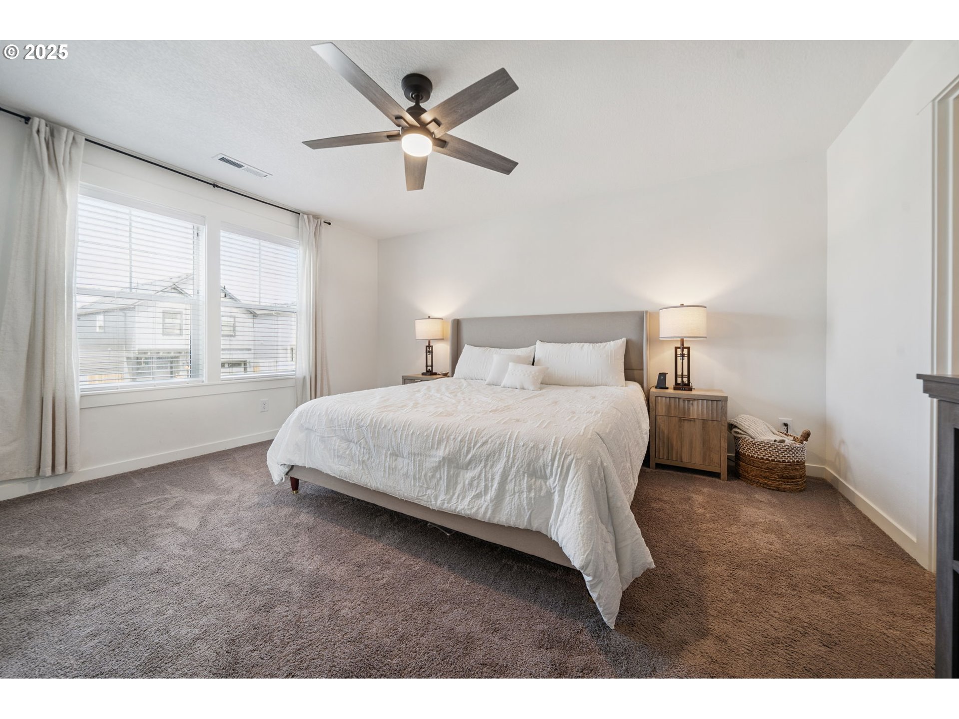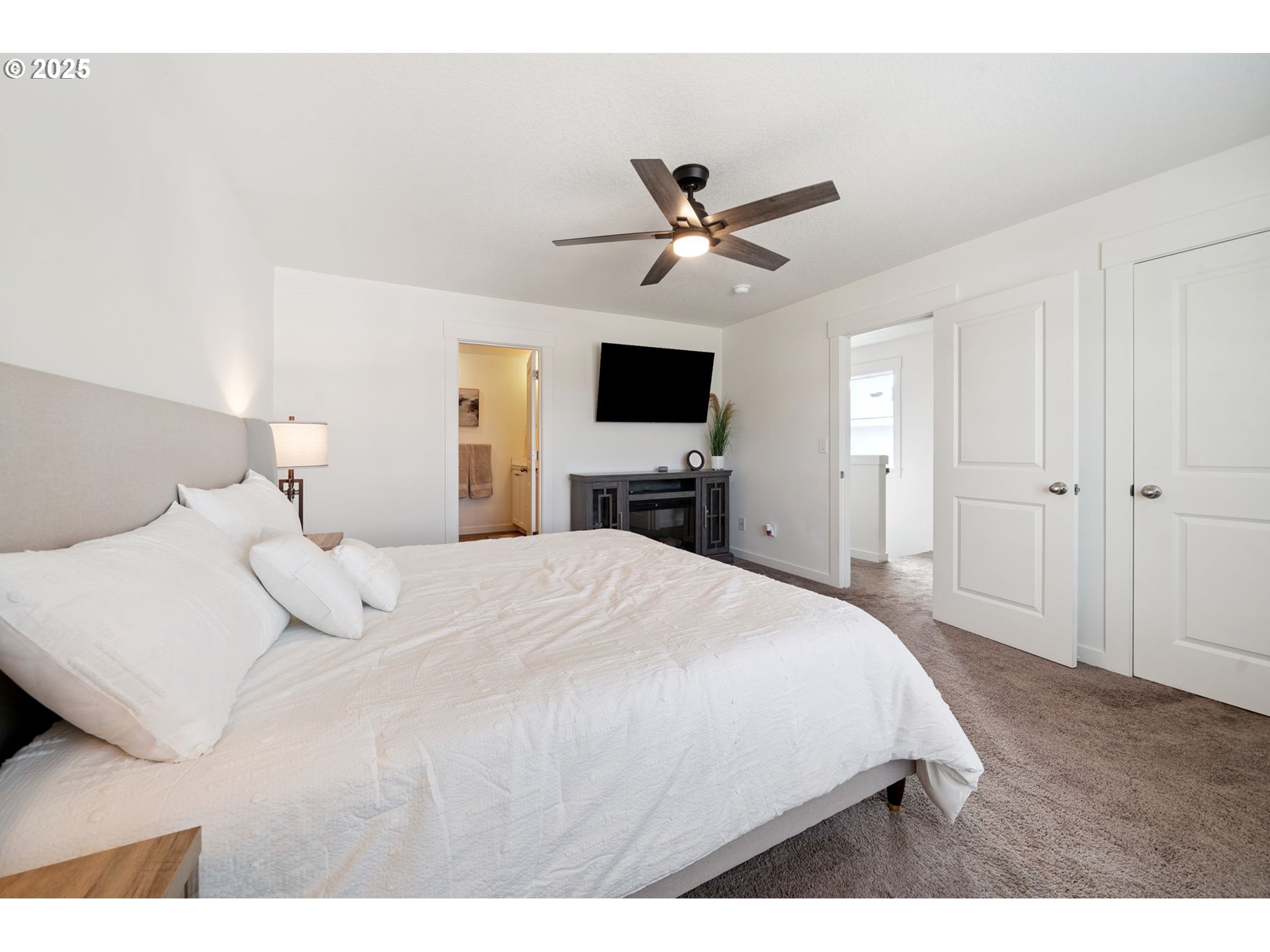 Welcome to this wonderful home community surrounded by open green space, a neighborhood park, and serene walking trails. Located near Costco, In-N-Out, coffee shops, and a variety of restaurants, this home offers both comfort and convenience. The home features a stylish kitchen with quartz countertops, painted cabinetry, and stainless steel gas appliances. Enjoy the spacious open-concept great room, complete with a gas fireplace and elegant tile surround. Durable and stylish luxury vinyl plank flooring extends throughout the main level. The generous primary suite includes a walk-in closet and a spa-inspired bathroom with dual sinks and a custom tiled shower. Additional highlights include fully wrapped interior windows, brushed nickel hardware, and upscale modern lighting throughout. Step out onto the covered back deck and take in the tranquil views of the adjacent habitat conservation area.