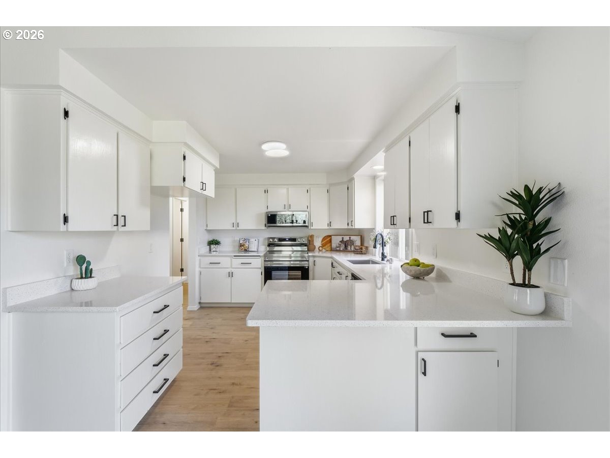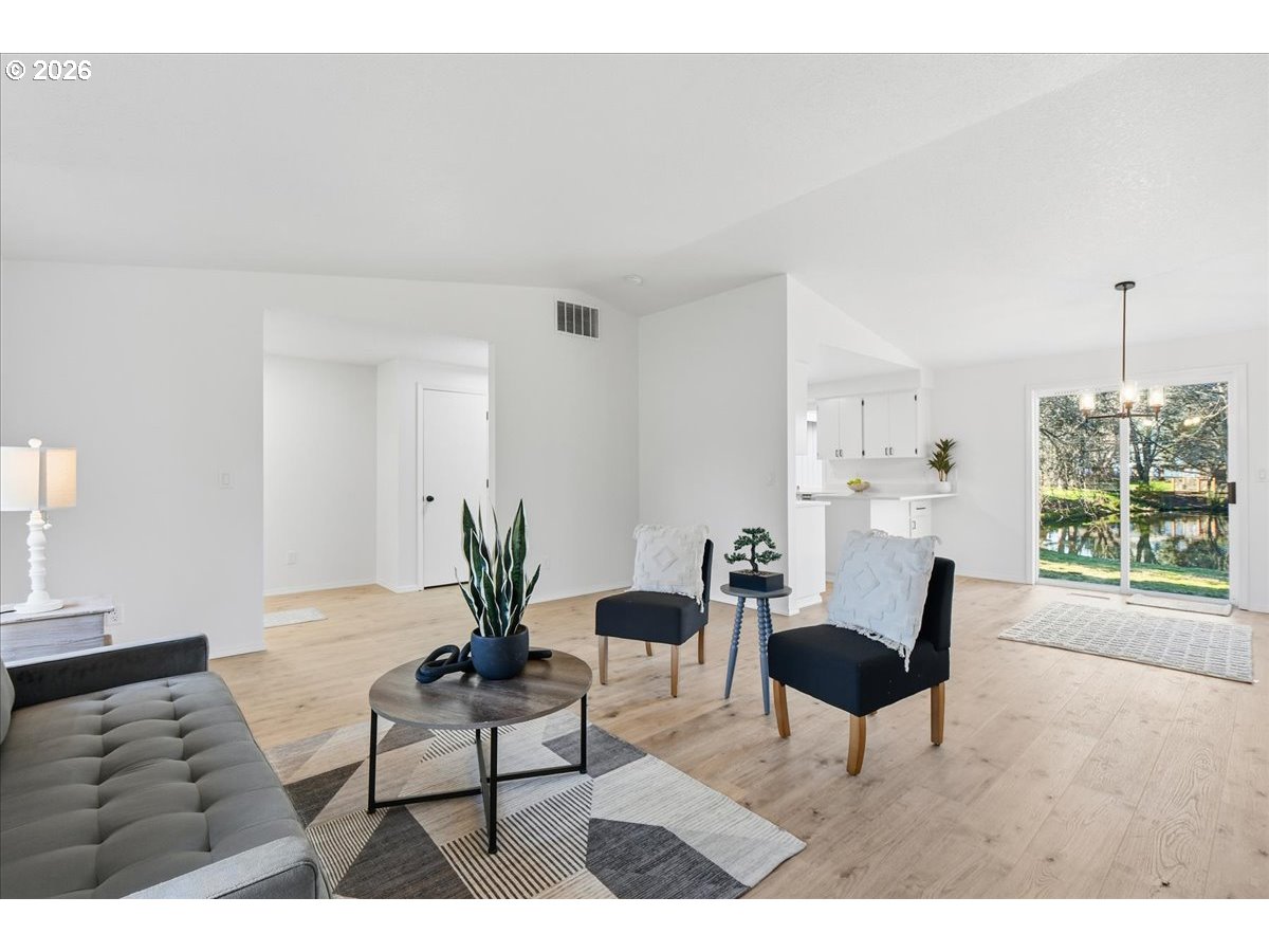 "On Siver Pond" Beautifully remodeled single story in sought after westside location.Quiet private setting with exceptional water views! Open, bright and light featuring vaulted great-room with cozy fireplace. Open dining room. Remodeled kitchen with lots of counter space, NEW stainless appliances, NEW quartz counters. Luxury vinyl plank flooring. Primary suite overlooks pond and has NEW carpet, Walk-in closet. Fresh paint in and out. Spacious two car garage. private pond access in tranquil backyard for entertaining and peaceful enjoyment. Conveniently located new shopping, schools, and freeway access. Don't miss this rare Gem!