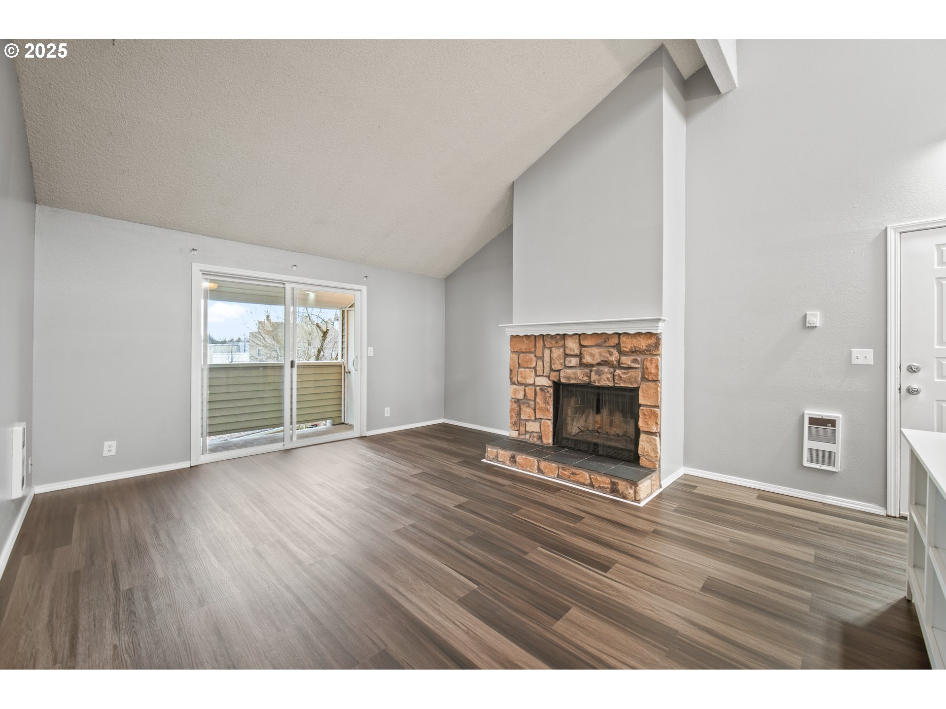 Step into this chic, modern condo, offering an ideal blend of style and comfort. FHA financing spot approval available for FHA approved buyers. “Rate Buy Down Available with Preferred Lender” Featuring an open floor plan, this one-bedroom, one-bath home boasts soaring vaulted ceilings that provide an airy, spacious feel throughout. The spacious living area is highlighted by a cozy wood-burning fireplace, perfect for relaxing during cooler months.Enjoy your morning coffee or evening glass of wine on your private balcony, where you can unwind in a serene, peaceful setting. This condo is not only stunning but also conveniently located, just minutes from the vibrant waterfront, shopping, fine dining, and entertainment. Plus, you're only a short drive away from Portland International Airport (PDX), making travel a breeze. Don’t miss out on this perfect combination of modern living and prime location!