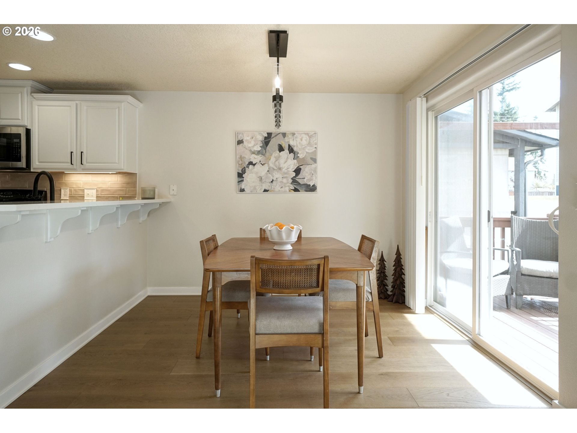 This beautifully refreshed home combines modern finishes with a convenient location just minutes from Vancouver Mall, dining, and commuter routes. The main floor features new engineered hardwood flooring, fresh interior paint, and a remodeled bathroom with tasteful updates including quartz counter top. The kitchen has been stylishly refreshed with quartz countertops, white painted cabinets, and custom tile—creating a bright, inviting space for cooking and gathering.Upstairs, enjoy brand-new carpet and spacious bedrooms offering comfort and privacy. Master bedroom enjoys a private bathroom with tub. Step outside to a private deck, perfect for relaxing or BBQing. With thoughtful upgrades throughout, this home is move-in ready and full of modern appeal.