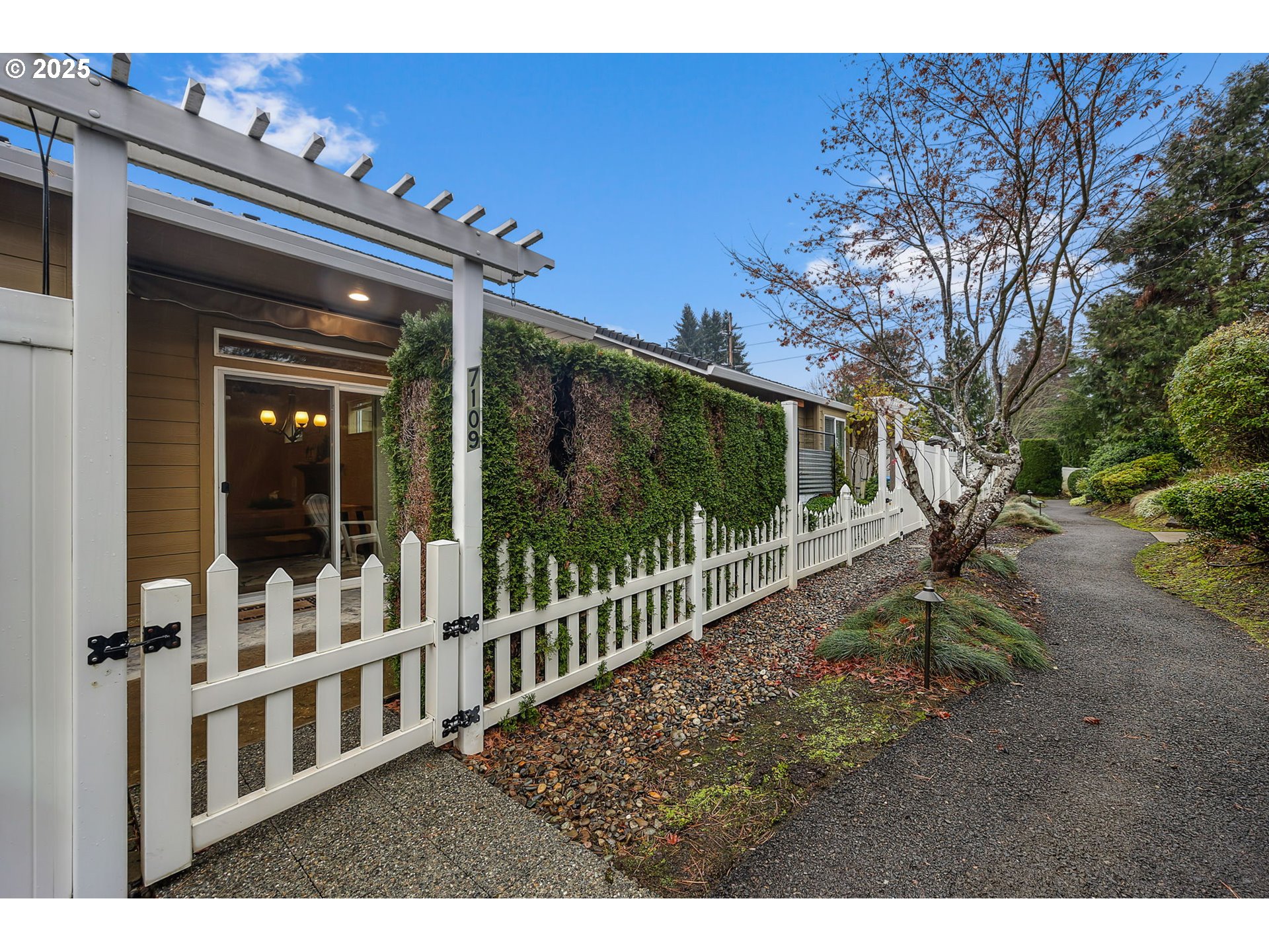 Beautiful single level home in coveted Courtyard Gardens! This immaculate 2 bedroom/2 bathroom home is just what you have been looking for! Extra features abound including vaulted ceilings, laminate floors throughout, carpeted bedrooms. Enjoy Beautiful built-ins, granite kitchen counters, pantry, gas range and cozy gas fireplace! Wonderful laundry room with built-in cabinets and sink. Office or craft space room with custom cabinets and work counter. Enjoy a private patio with sun setter awning, a little grass and garden bed! Exterior was just painted. Private community trail, gazebo and water features. Low quarterly dues include yard and exterior maintenance, and easy living lifestyle!