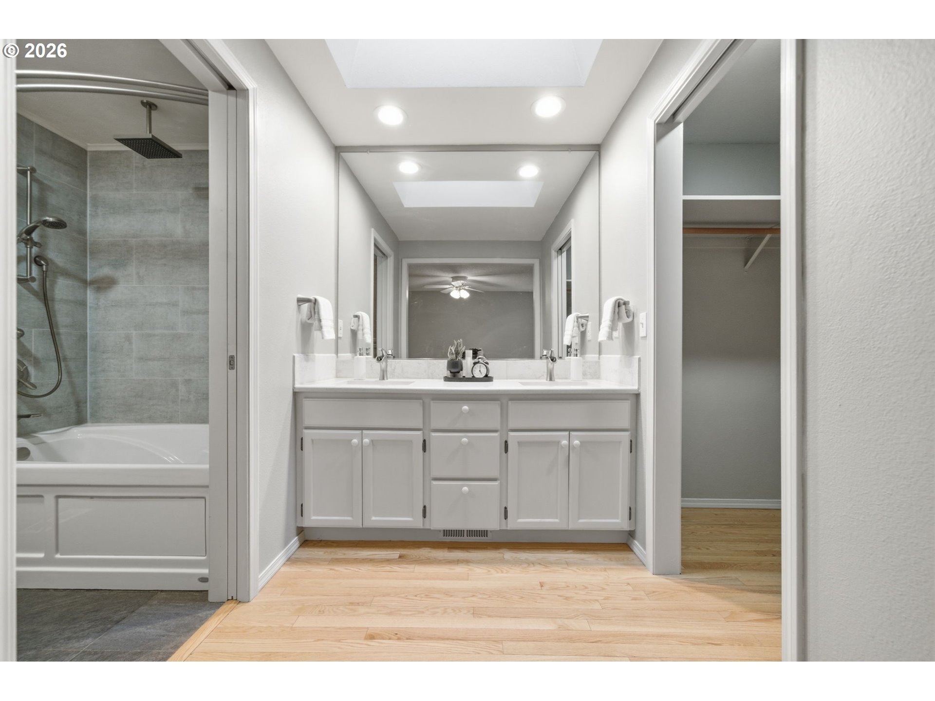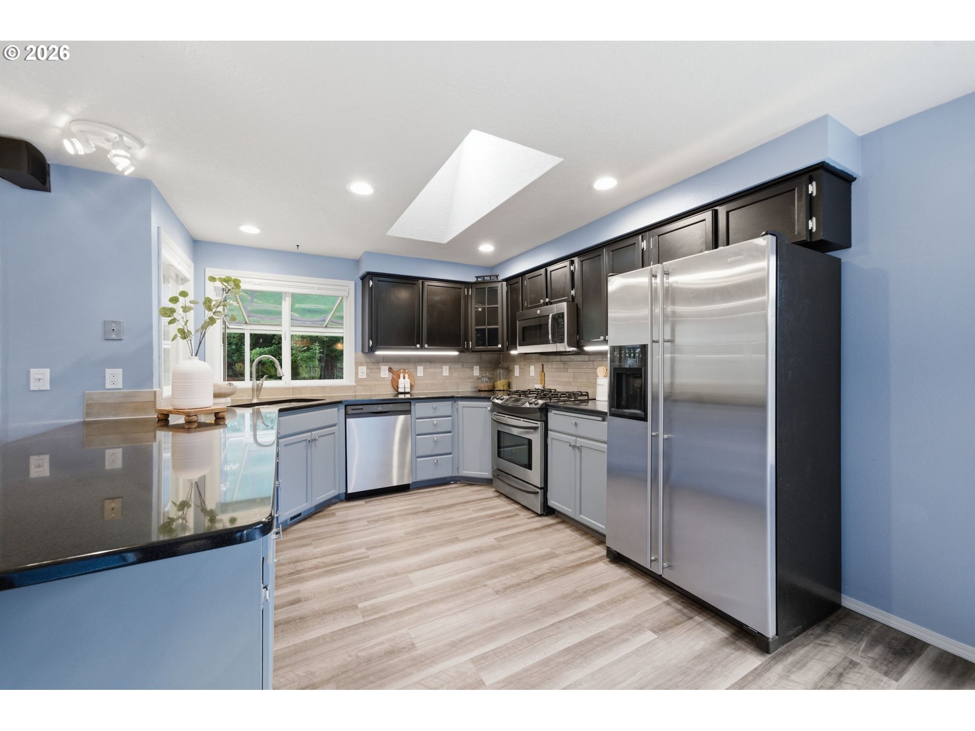 Beautifully updated one-level home on a private 0.52-acre lot in Vancouver offering space, comfort, and thoughtful upgrades throughout. Hardwood floors, Milgard windows, skylights, ceiling fans, and central air conditioning create a bright and welcoming interior filled with natural light. The upgraded kitchen is both functional and stylish, featuring stainless steel appliances, a gas range, pantry, eat bar, and a skylight that brings in beautiful daylight while you cook and gather. Just off the main living area, the expansive sunroom adds incredible versatility—perfect for year-round entertaining, hobbies, or simply relaxing while overlooking the peaceful backyard and enjoying the privacy this property provides. The spacious primary suite includes its own ceiling fan, walk-in closet, and a private bath with quartz counters and a tile walk-in shower. Major updates include a 5-year-old roof and a 2-year-old high-efficiency Honeywell furnace for comfort and efficiency. The home is equipped with a Vivint security system featuring seven motion-activated cameras. Outside, you’ll find a storage shed, room to build a shop, and a 50-amp plug in the garage ready for EV charging. Situated on septic, this move-in ready property blends modern updates, flexible living space, and generous outdoor potential in a convenient Vancouver location.