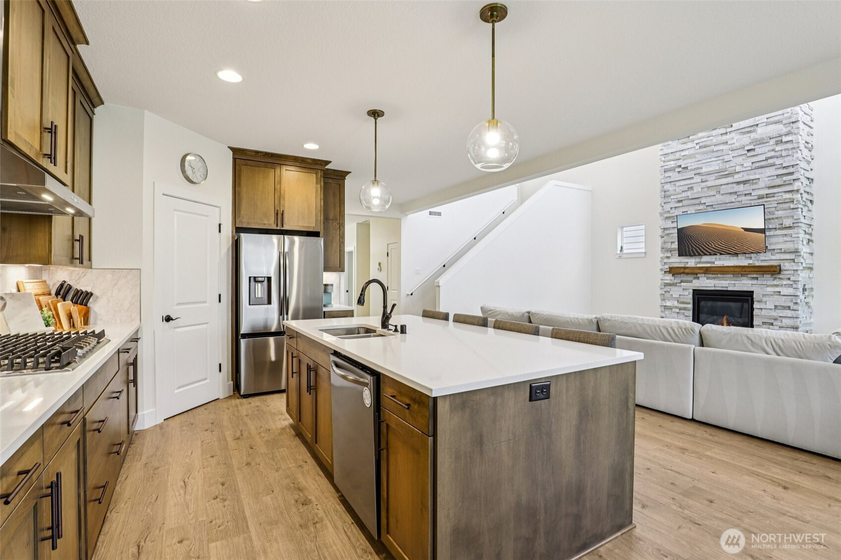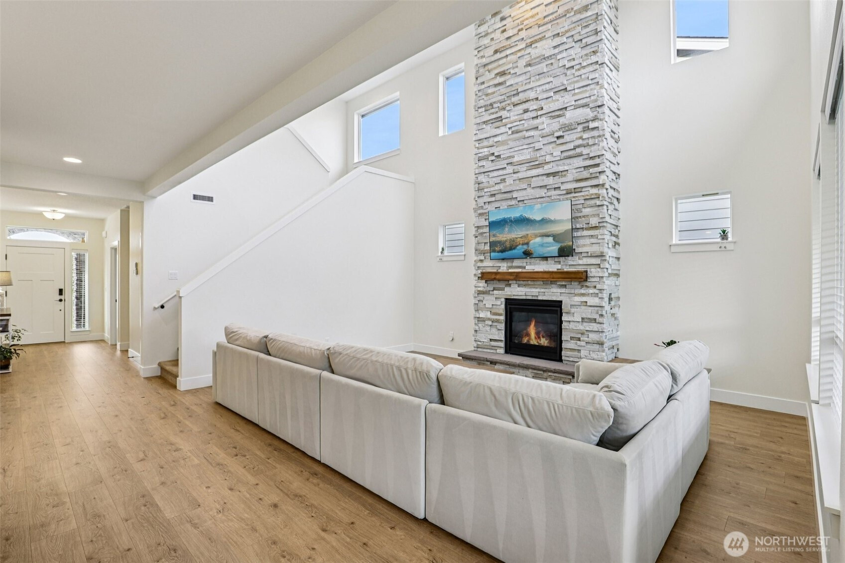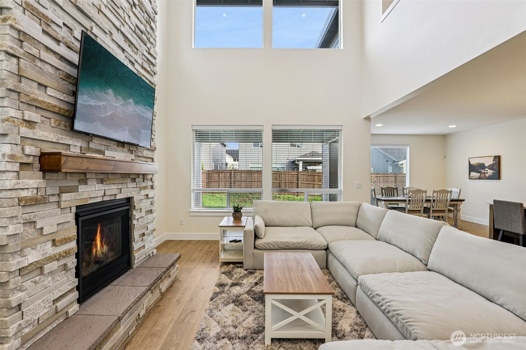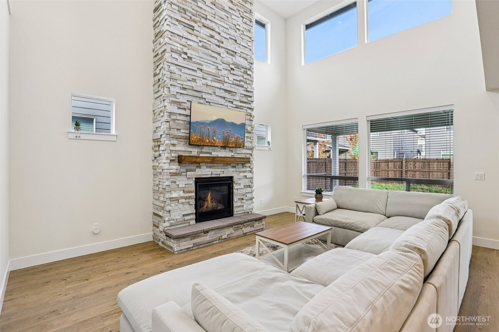 Welcome to Cedar Heights, with Cedars Trails at Salmon Creek across the street. This immaculate, lightly lived-in 4-bedroom, 3-bath home offers both style and comfort, with a main-level bedroom. The great room shines with soaring two-story ceilings, a dramatic wall of windows, and a floor-to-ceiling stacked stone fireplace.The kitchen features oversized quartz counters, warm wood-grain cabinetry, built-in ovens, and walk-in pantry. Upstairs, the primary suite with its generous proportions, ensuite with soaking tub, and walk-in tiled shower. Two additional bedrooms, a full bath, and a large dedicated laundry room complete the upper level. Outdoors, enjoy a covered patio and private yard for play or relaxing! Builder Warranty still in place!