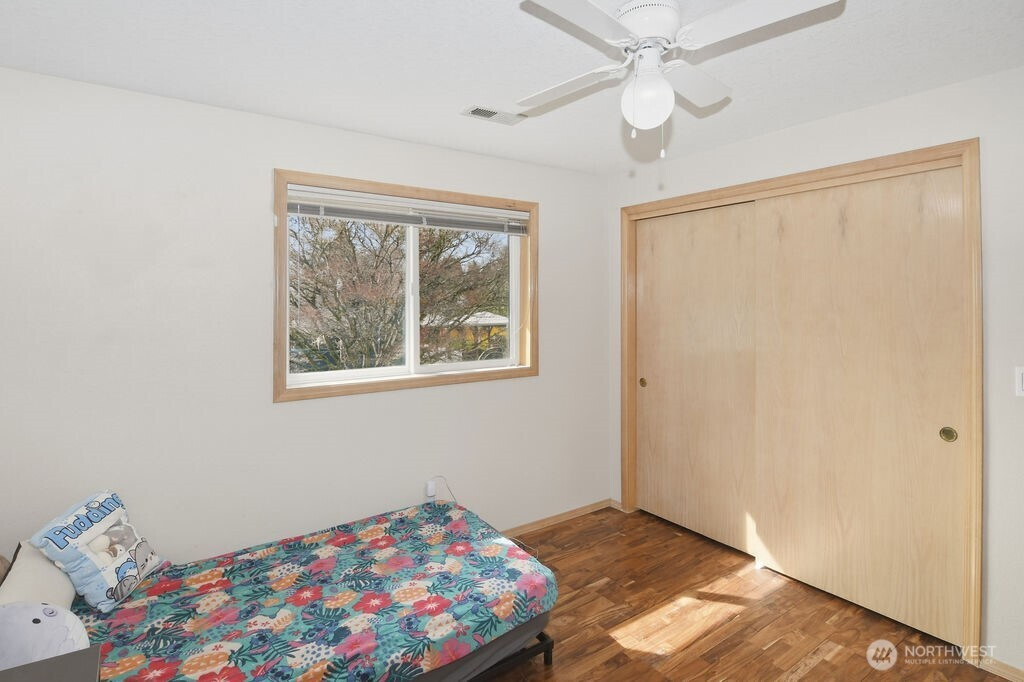 Welcome to this spacious 4 bedroom, 2.5 bathroom home situated on nearly half an acre in a quiet cul-de-sac by Vancouver Lake and Downtown. Offering the perfect combination of space, privacy, and convenience in a highly sought-after neighborhood ideal for relaxing and sitting on your large covered front porch while enjoying the peaceful surroundings. This generously sized home is designed for comfortable living and entertaining, featuring stunning hand-scraped acacia wood floors, Samsung Chef Collection stainless steel appliances, oversized walk-in pantry, a cozy gas fireplace, central vacuum system, and air conditioning for year-round comfort. (new heat pump in 2019) The primary bedroom features an attached bath with a walk-in closet, walk-in shower, double sinks, and jetted tub. The generous layout provides ample room for gatherings, while the oversized garage offers storage and workspace. Outdoors, enjoy a large private yard that has been thoughtfully maintained without the use of poisons or pesticides, fenced backyard with a covered patio. Fenced garden, RV parking, and plenty of room for recreational vehicles and toys. Security lighting. New roof, siding, and flooring in 2017. Additional highlights include energy-efficient solar panels, (reduced electric bill) indoor sprinkler system for added peace of mind, easy I-5 access for commuters, and no HOA. This rare property delivers sustainability, functionality, and an unbeatable location all in one exceptional home.