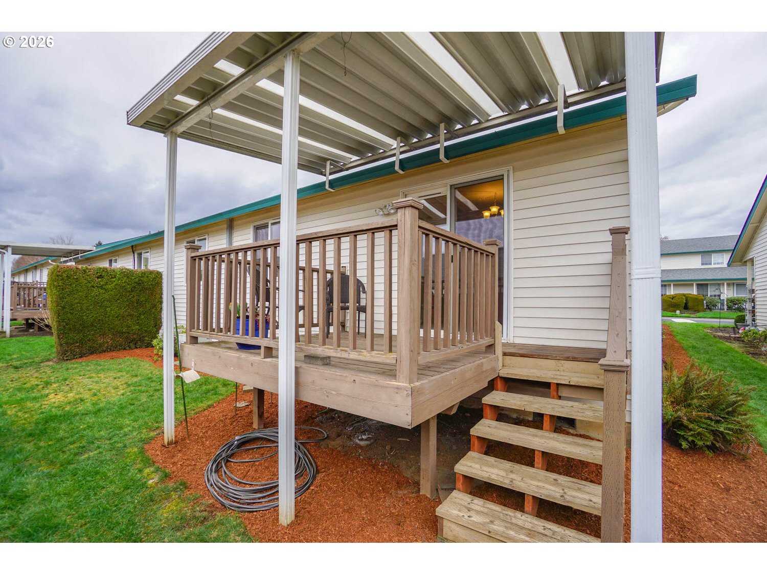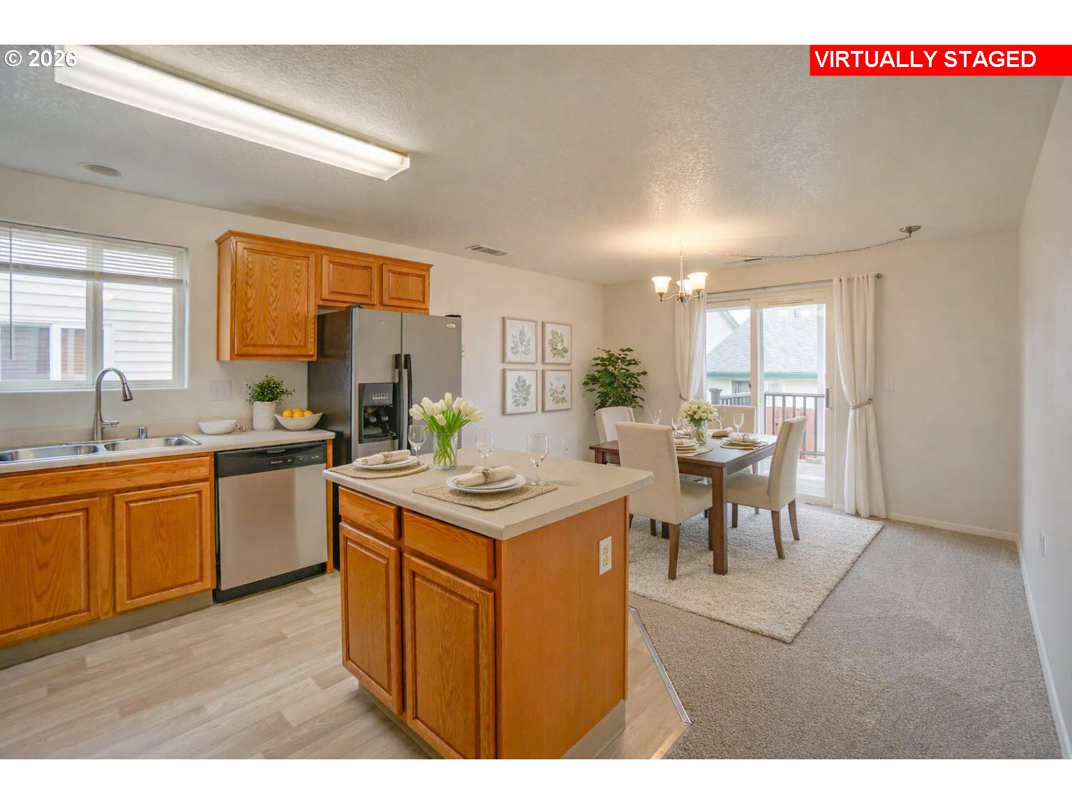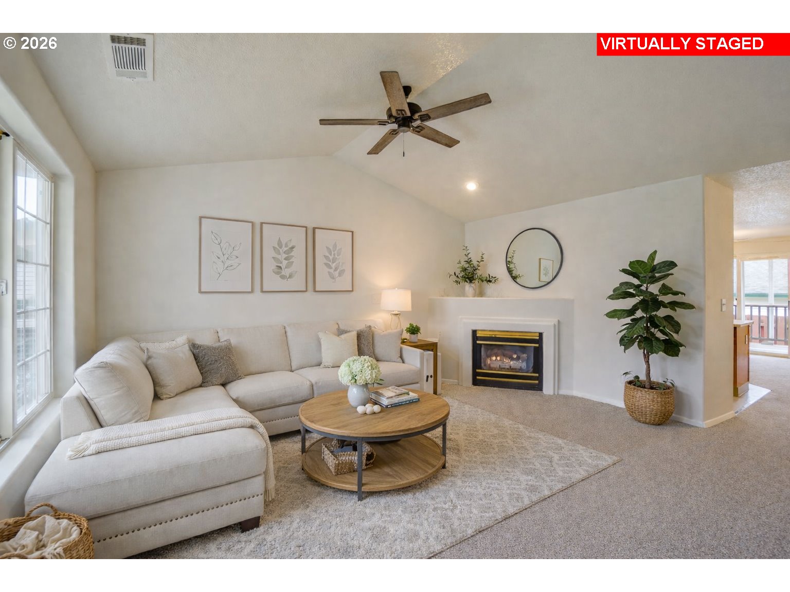 Fantastic opportunity in the popular Ryerson Square Condos! VA assumable loan at a low 2.197% interest rate - approximately $100,000 remaining balance for qualified buyers (subject to lender approval). This freshly updated one-level 2 bedroom, 2 bath condo offers a functional and open layout with vaulted ceilings, abundant natural light, and a cozy gas fireplace. Enjoy a covered deck for year-round outdoor living—perfect for morning coffee, container gardening, or relaxing in the evening. The primary suite boasts a walk-in closet and an ensuite bathroom. Oversized attached 2-car garage, with units connecting at the garage for added privacy. Fresh updates include new interior paint, new carpet and flooring, new stainless dishwasher, new kitchen sink and faucet and more! Conveniently located near freeways, bus lines, Vancouver Mall, schools, parks, shopping, and dining. This home is perfect for those seeking comfort, community and convenience. Don’t miss your opportunity!