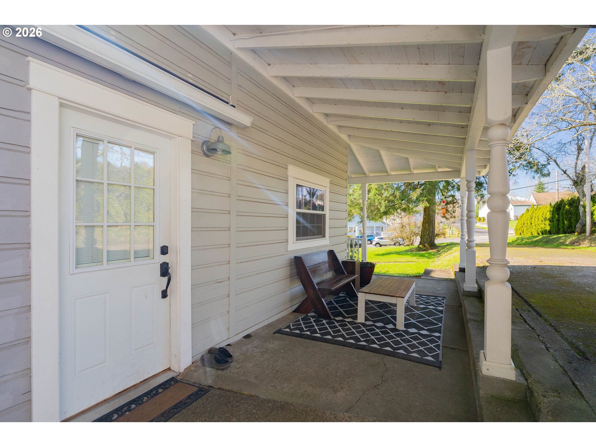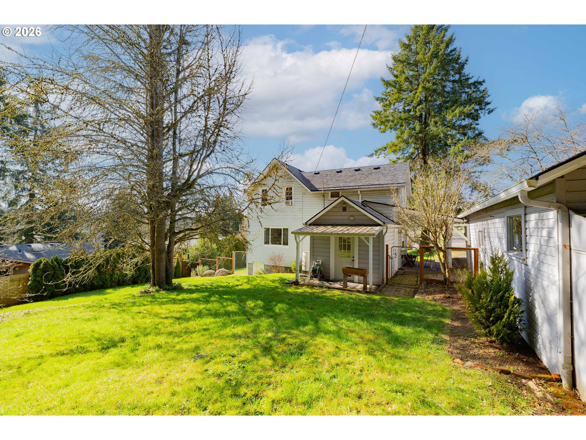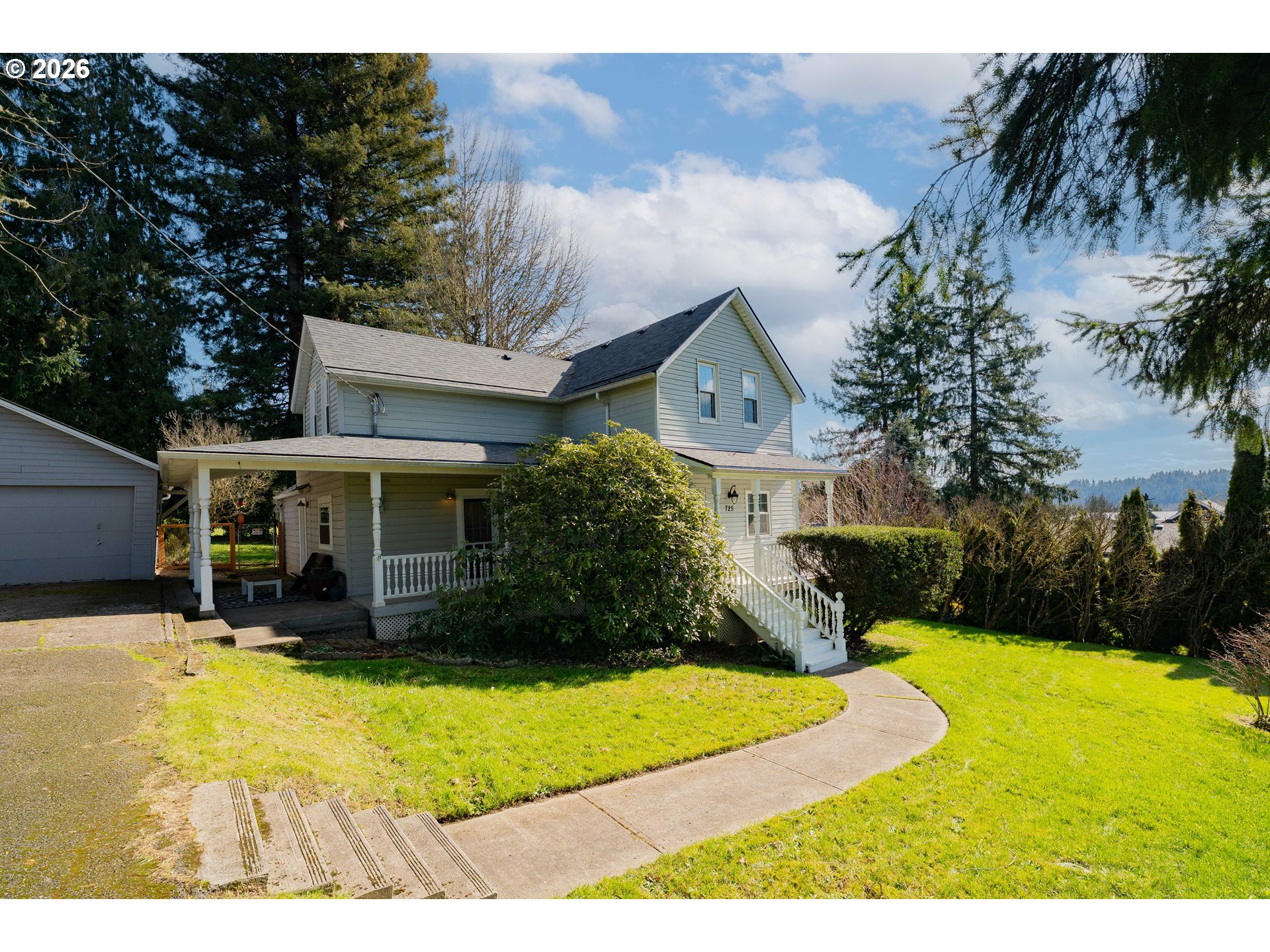 Vintage charm meets everyday livability in this delightful 1908 farmhouse set on a sprawling .39-acre lot in the heart of La Center. This 3-bedroom, 2-bath home blends character and thoughtful updates, offering a warm, welcoming atmosphere throughout. With a new roof in 2025 for added peace of mind, this special property delivers space, character, and small-town convenience all in one.The bright, open living room features a cozy window seat and flows beautifully across gorgeous newer maple flooring, complemented by custom blinds that add both style and function. The stylishly updated bathrooms honor the home’s history while adding modern comfort, including a main-level bath with a classic clawfoot soaking tub. The refreshed kitchen is open and functional with new vinyl flooring, solid surface counters, full tile backsplash, stainless appliances, eating bar, and a walk-in pantry, while a utility/mud room with sink enhances everyday ease. Wraparound porches invite you to relax and enjoy the setting, and the huge, fully fenced yard offers grapes, blueberries, and more along with abundant space for gardening, hobbies, recreation, or gathering. The unfinished basement provides excellent storage and root cellar potential, and the detached 4-car garage/shop adds exceptional flexibility for a workspace, projects or additional storage. Open House Saturday, March 7 from 12–2pm - we’d love to welcome you!