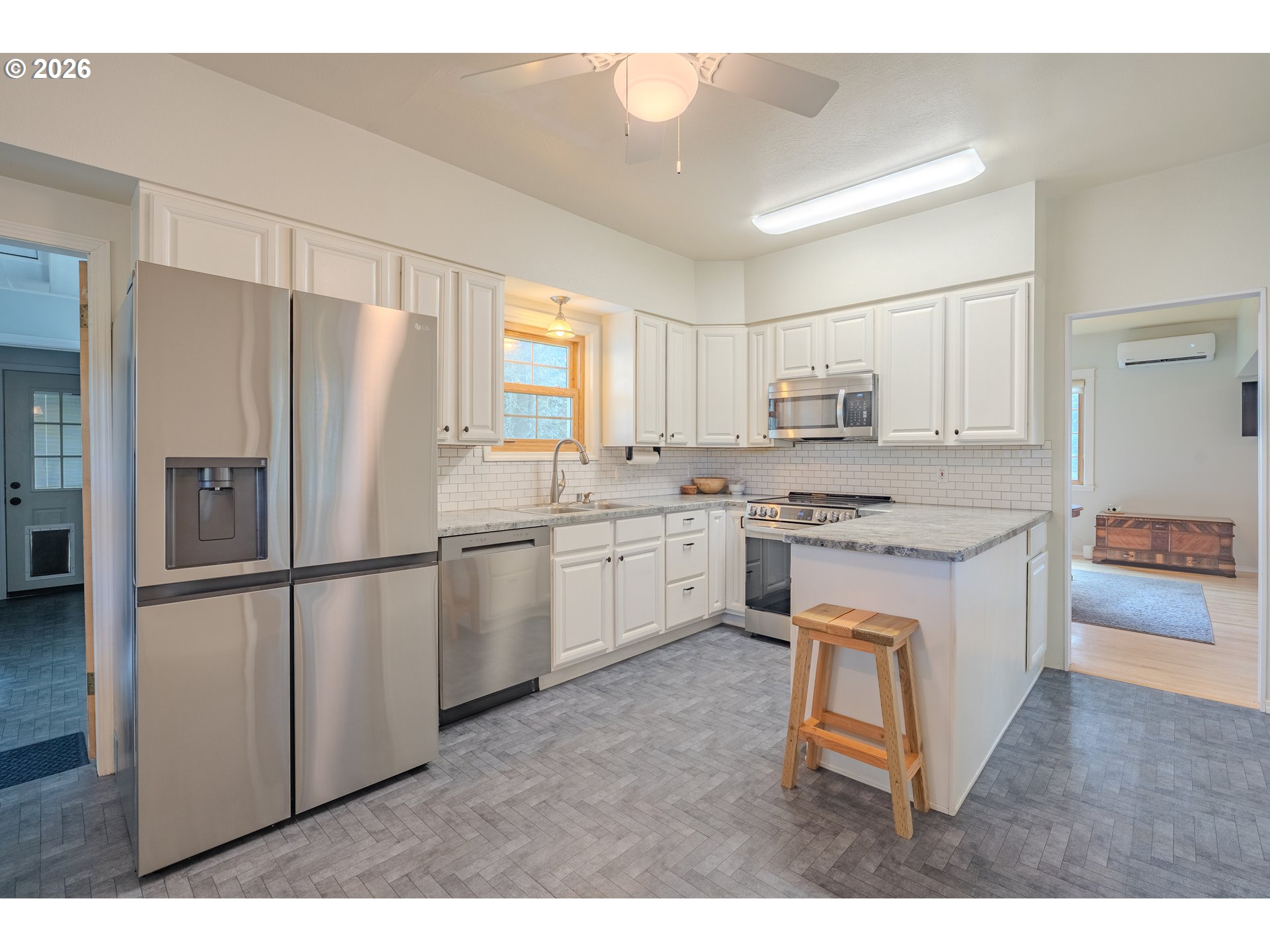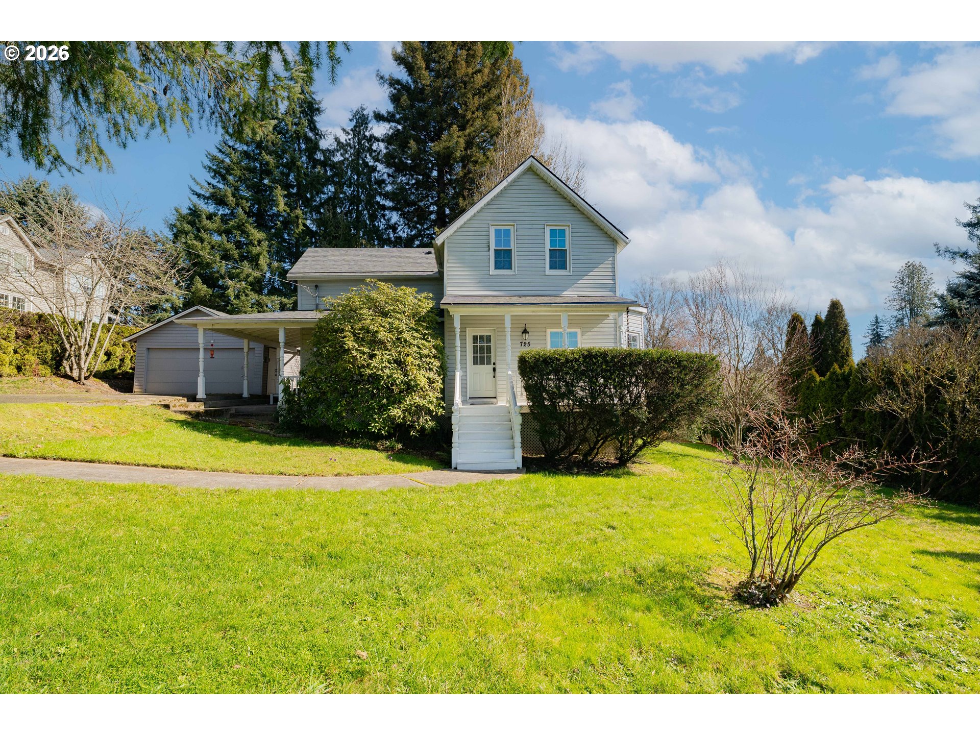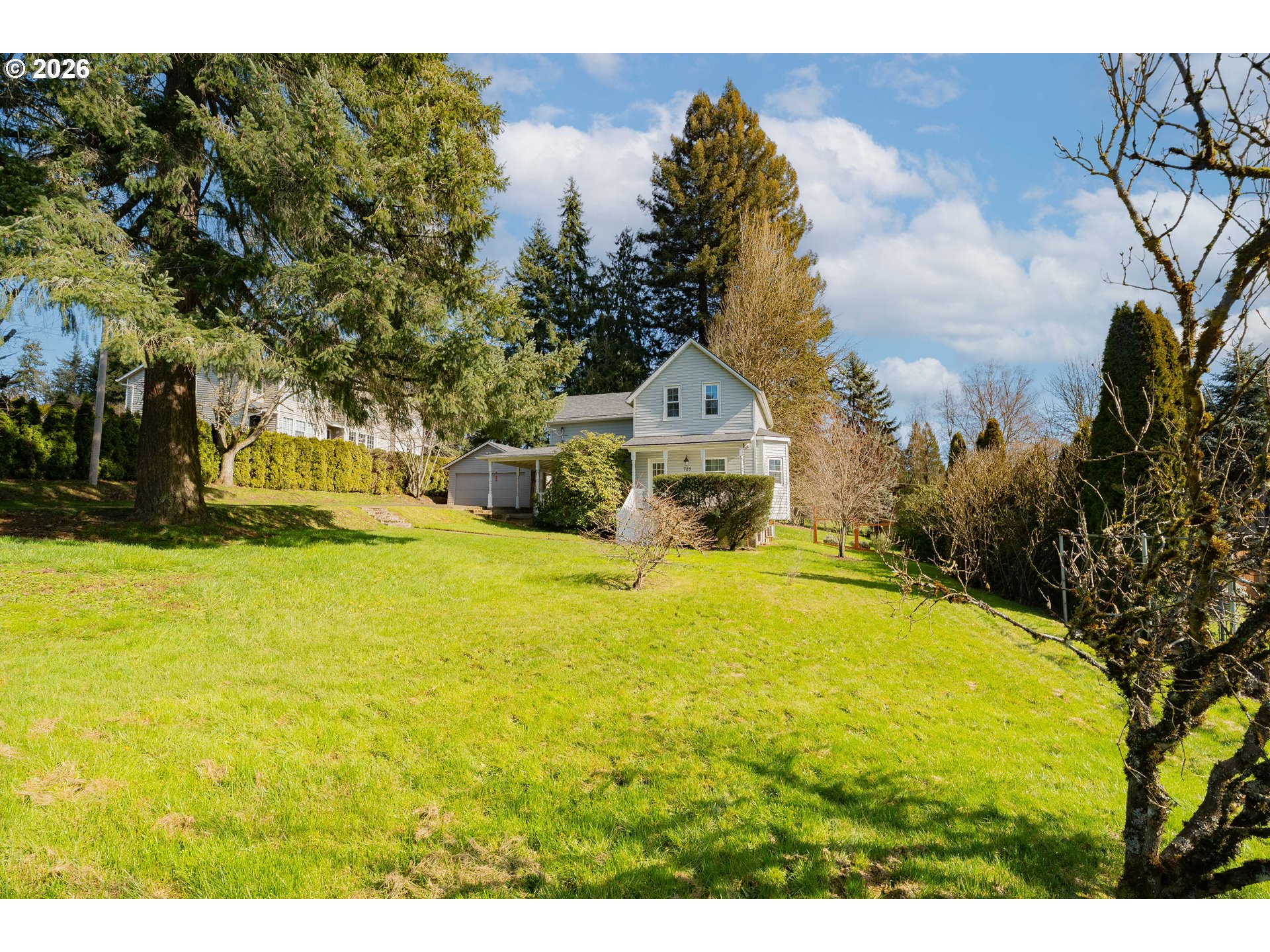 Vintage charm meets everyday livability in this delightful 1908 farmhouse set on a sprawling .39-acre lot in the heart of La Center. This 3-bedroom, 2-bath home blends character and thoughtful updates, offering a warm, welcoming atmosphere throughout. With a new roof in 2025 for added peace of mind, this special property delivers space, character, and small-town convenience all in one.The bright, open living room features a cozy window seat and flows beautifully across gorgeous newer maple flooring, complemented by custom blinds that add both style and function. The stylishly updated bathrooms honor the home’s history while adding modern comfort, including a main-level bath with a classic clawfoot soaking tub. The refreshed kitchen is open and functional with new vinyl flooring, solid surface counters, full tile backsplash, stainless appliances, eating bar, and a walk-in pantry, while a utility/mud room with sink enhances everyday ease. Wraparound porches invite you to relax and enjoy the setting, and the huge, fully fenced yard offers grapes, blueberries, and more along with abundant space for gardening, hobbies, recreation, or gathering. The unfinished basement provides excellent storage and root cellar potential, and the detached 4-car garage/shop adds exceptional flexibility for a workspace, projects or additional storage. Open House Saturday, March 7 from 12–2pm - we’d love to welcome you!