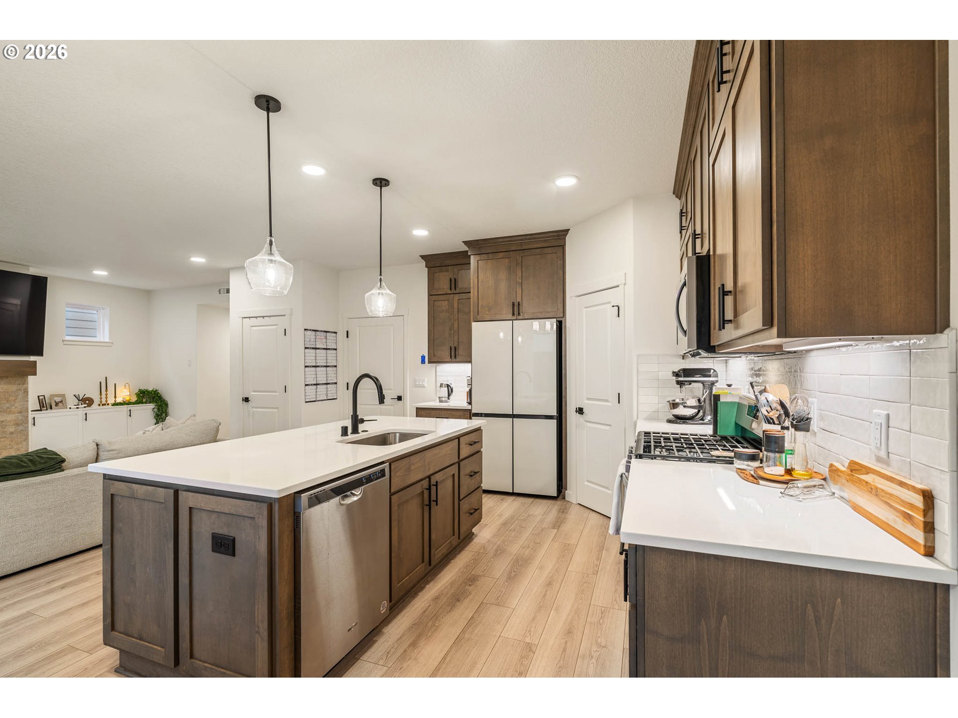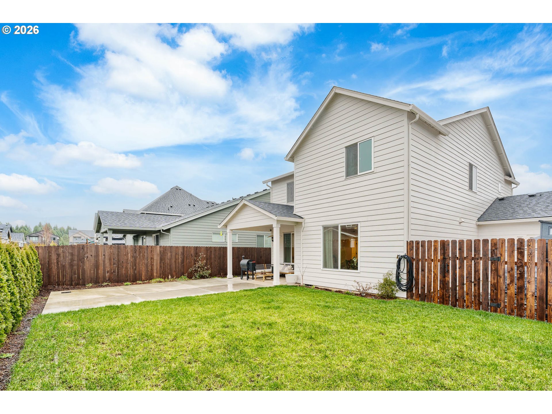 Modern comfort meets year-round outdoor living in this beautifully maintained 2022 Craftsman featuring an open layout, stylish finishes, and an oversized patio designed for entertaining, grilling, and everyday relaxation. With 4 bedrooms, 2.5 baths, and 2,010 sq ft, the open-concept main level creates an easy flow between the gourmet kitchen, dining area, and inviting great room with gas fireplace—ideal for daily living and hosting gatherings.The kitchen features quartz countertops, stainless steel appliances, gas cooking, and generous prep space designed for connection and convenience. Upstairs, the spacious primary suite includes a walk-in closet and tiled walk-in shower, while three additional bedrooms provide flexibility for guests, a home office, or hobby space.Enjoy year-round comfort with central air conditioning and thoughtful design throughout. The fully fenced backyard extends the living space outdoors, highlighted by an oversized patio with a covered section—perfect for outdoor dining, weekend BBQs, and relaxing evenings in any season.Built in 2022, this move-in-ready home offers modern construction, comfortable everyday living, and an easy transition for buyers ready to enjoy the space from day one.